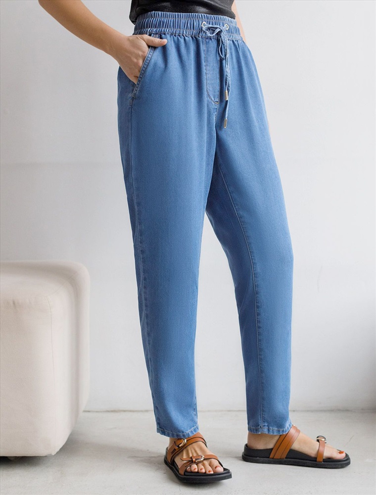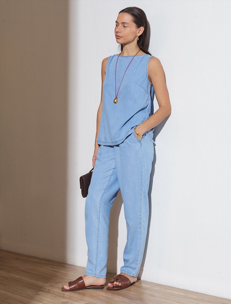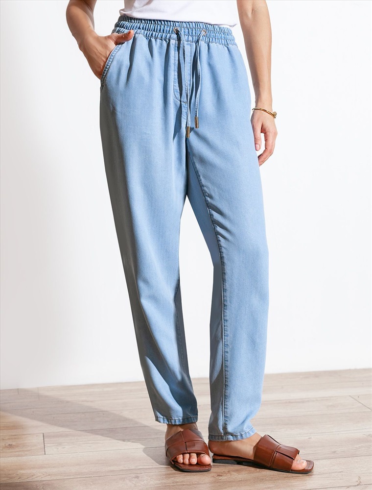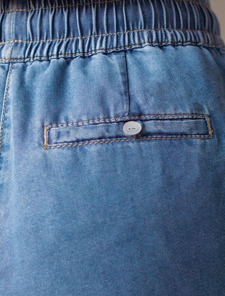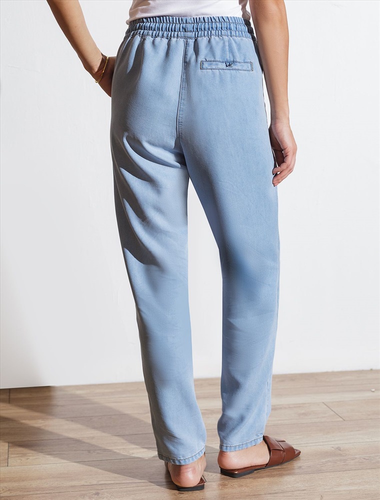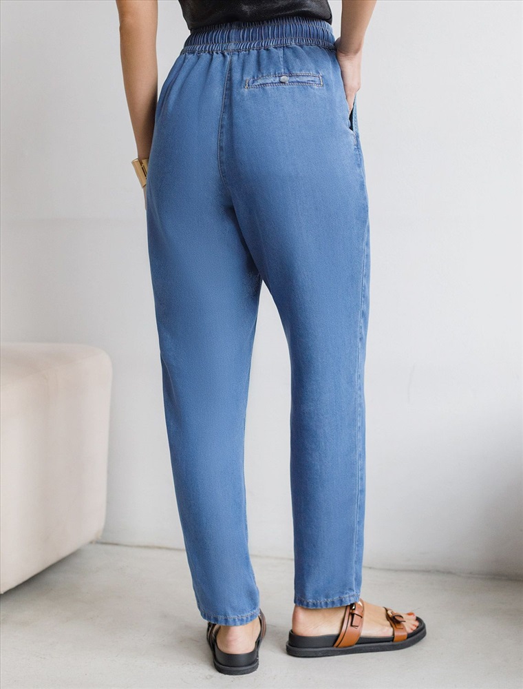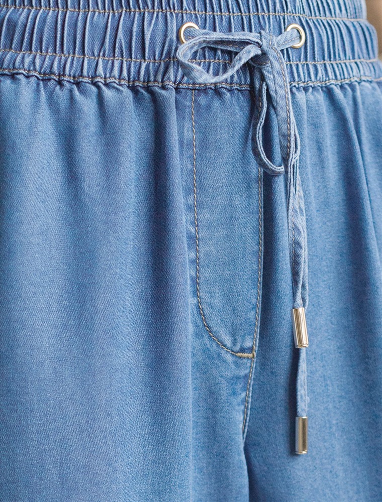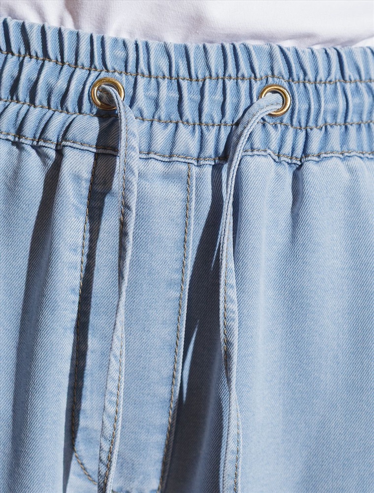 Брюки бананы с поясом на резинке из джинсового лиоцелла 6 фото