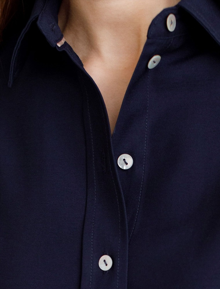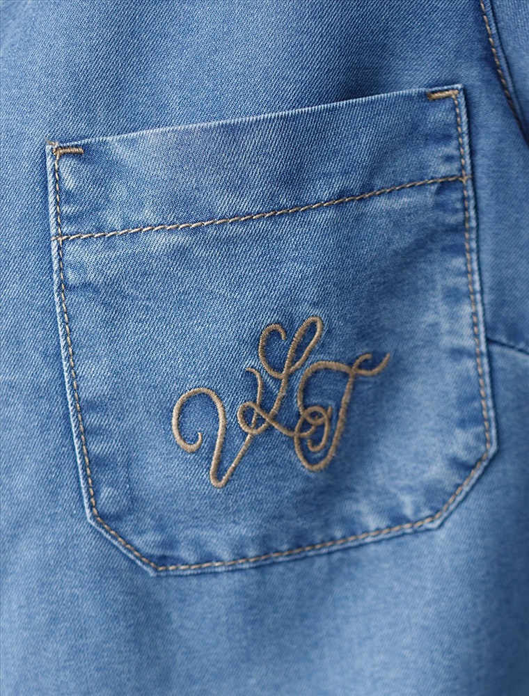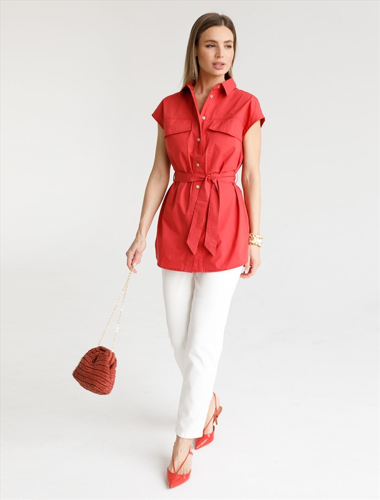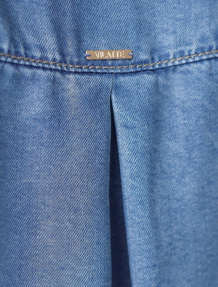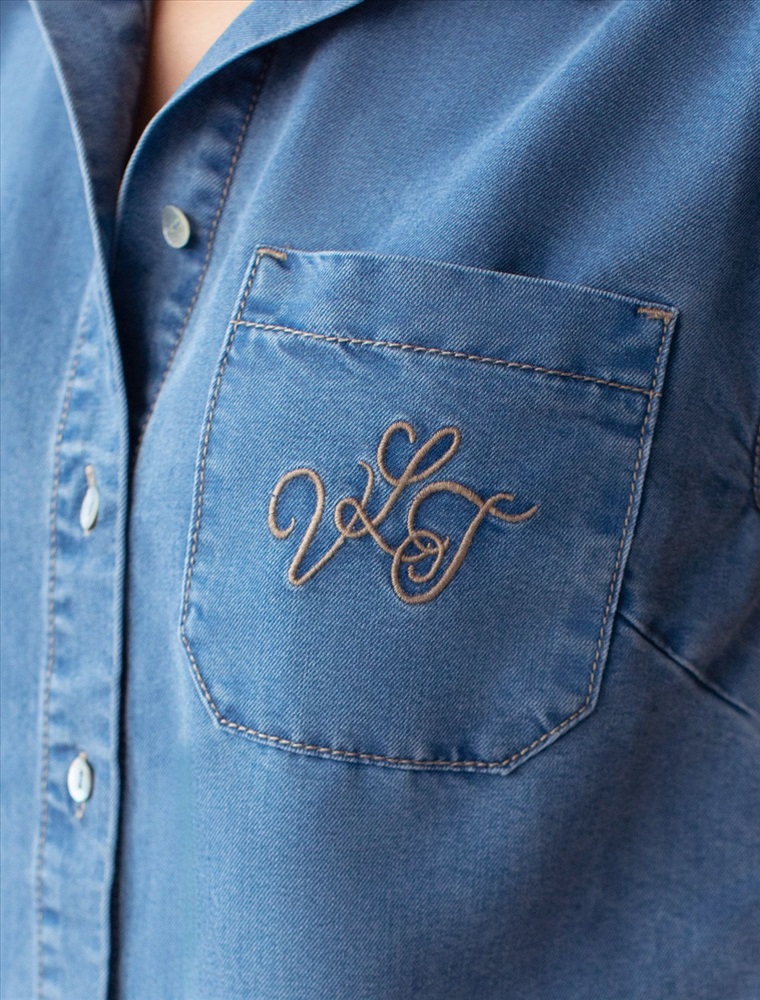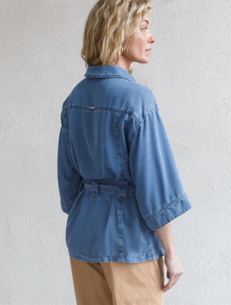 Удлиненная блузка с поясом и карманами из джинсового лиоцелла 9 фото