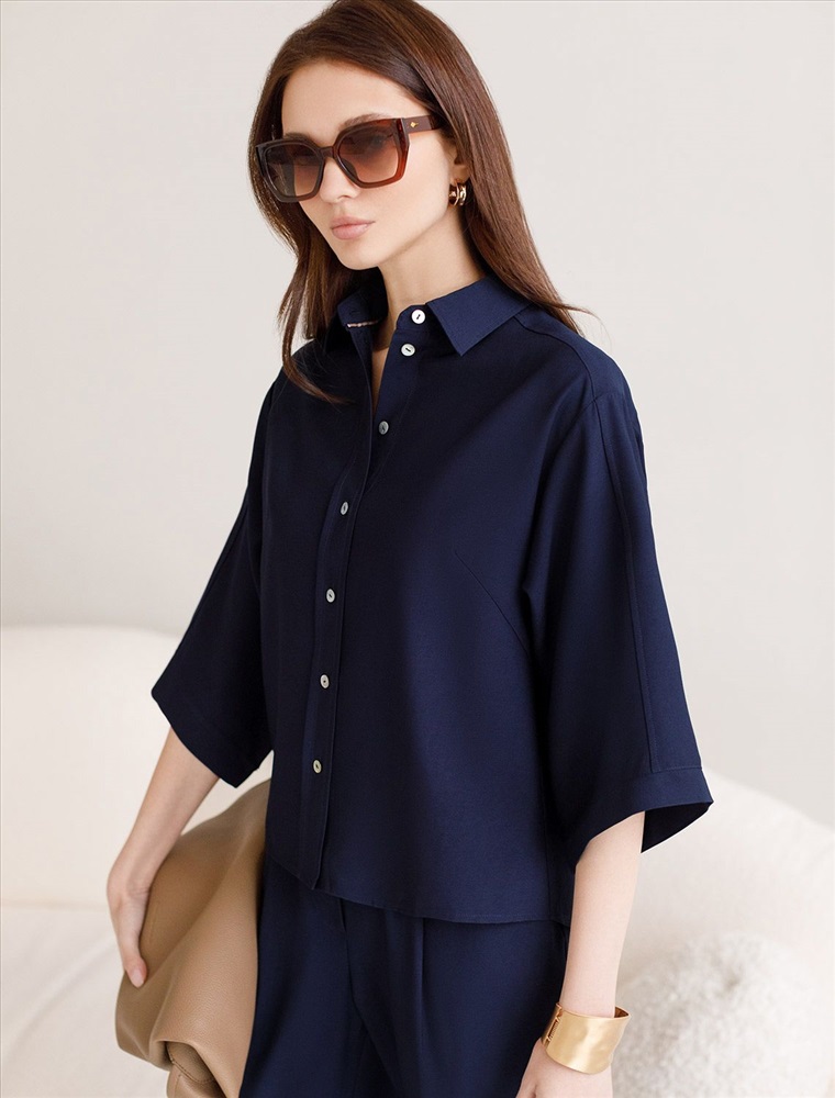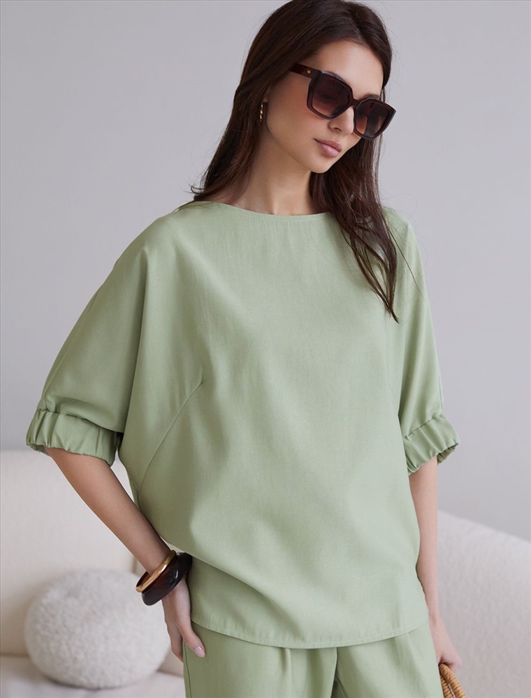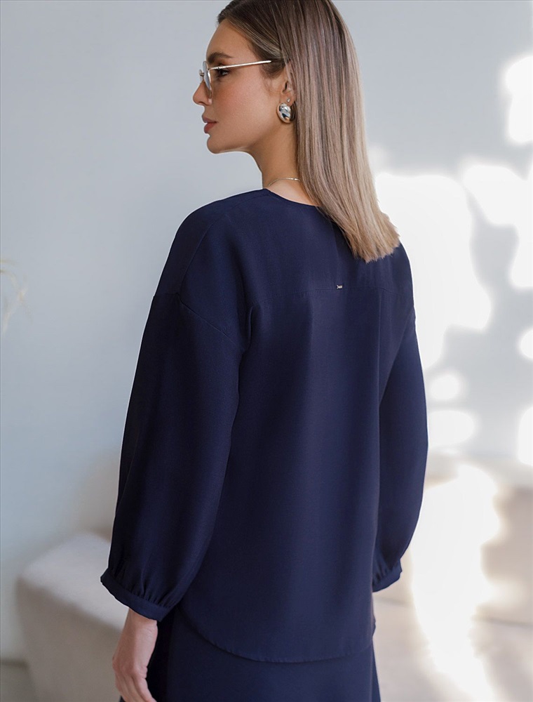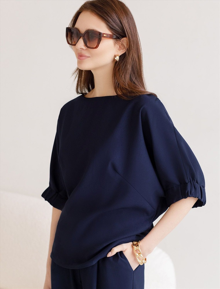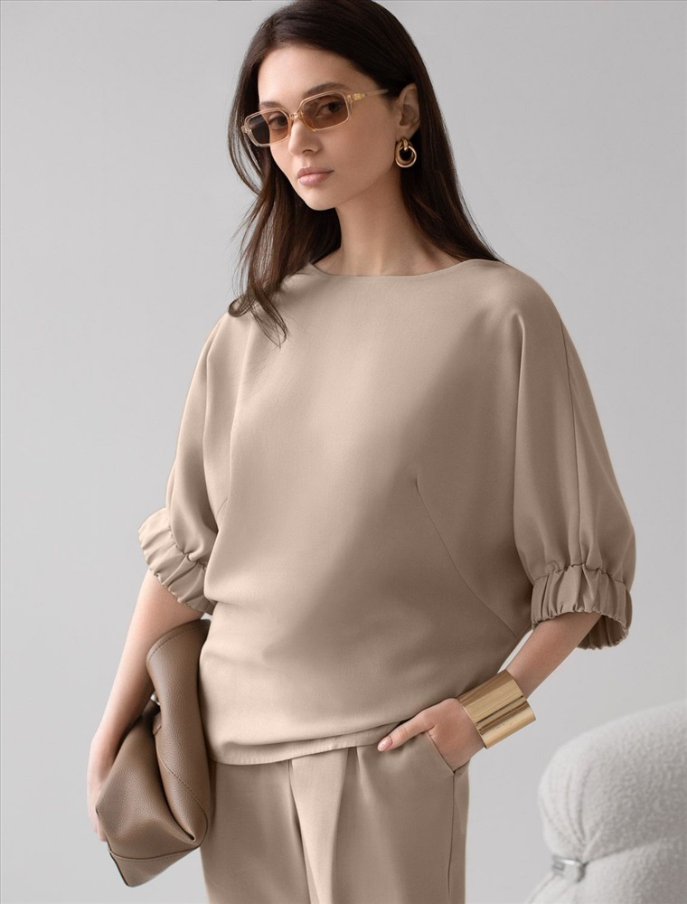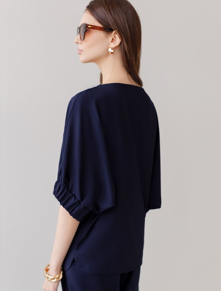 Блузка с широкими рукавами 3/4 из плотного лиоцелла 7 фото