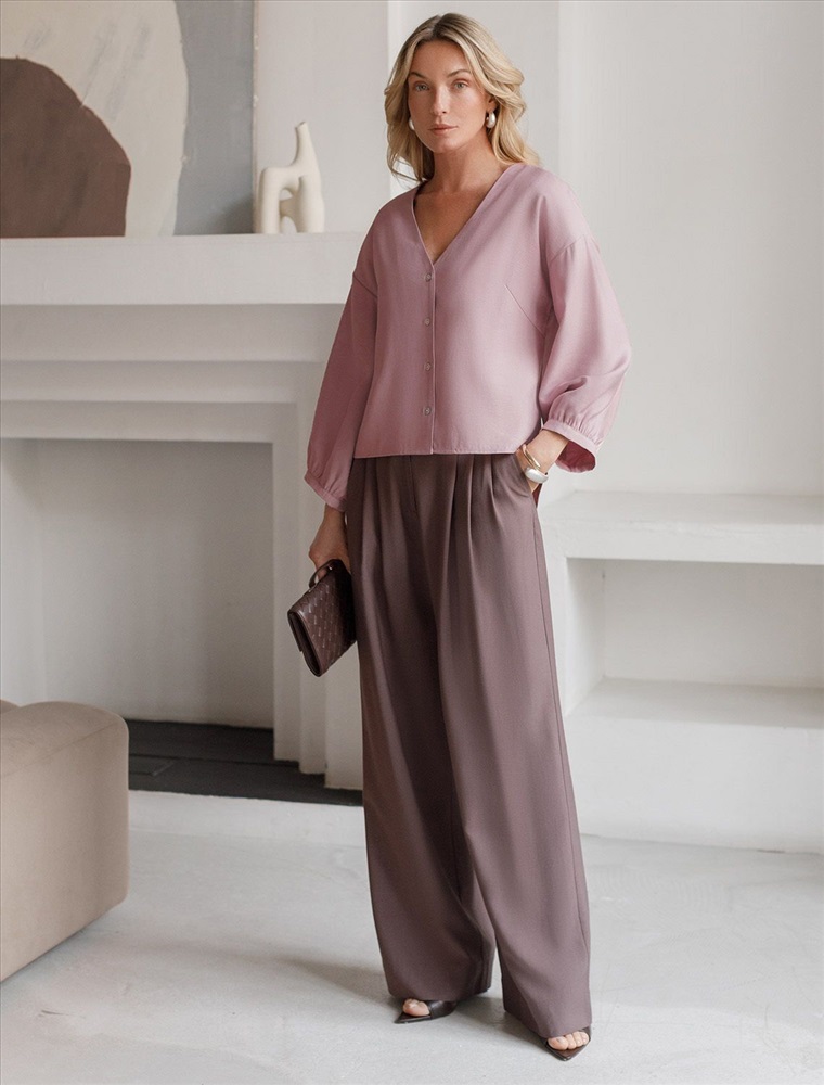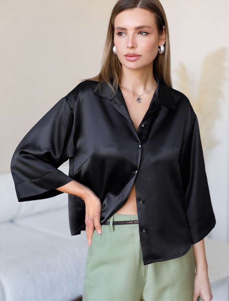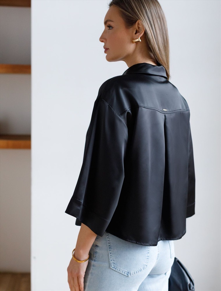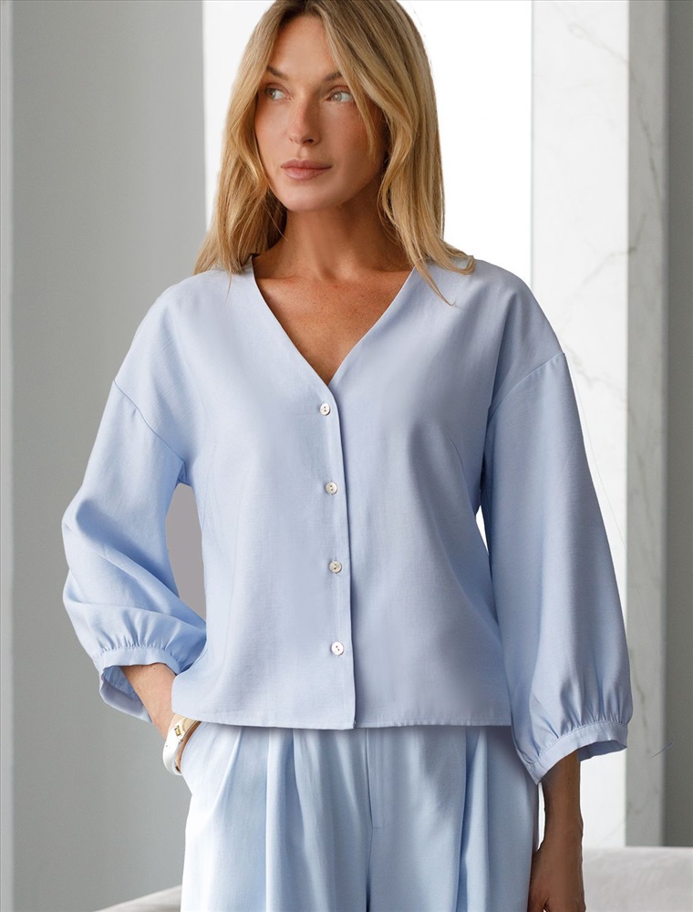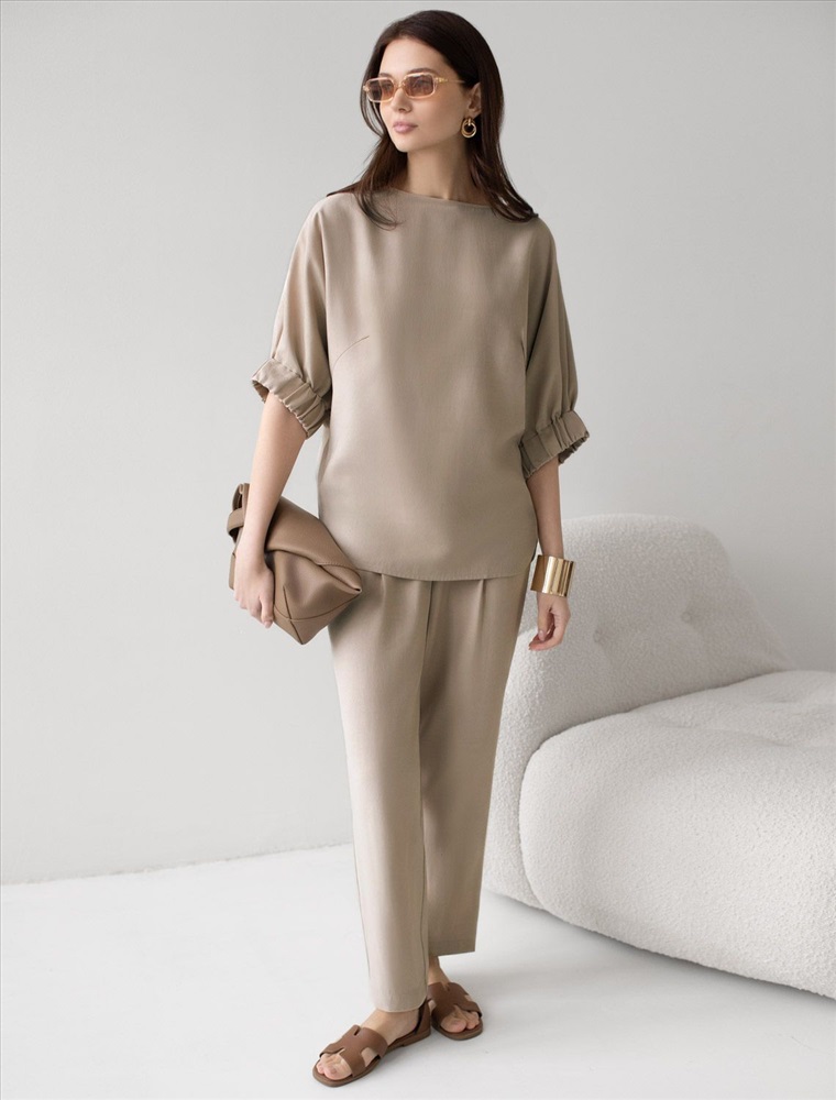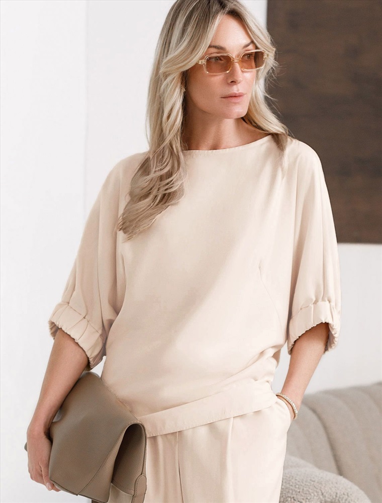 Блузка с широкими рукавами 3/4 из плотного лиоцелла 7 фото