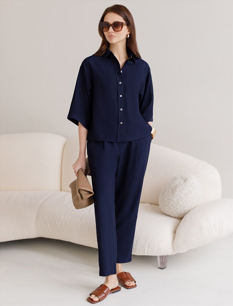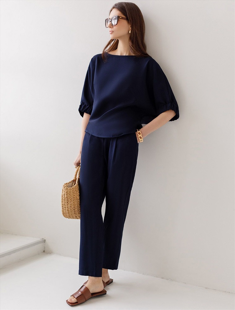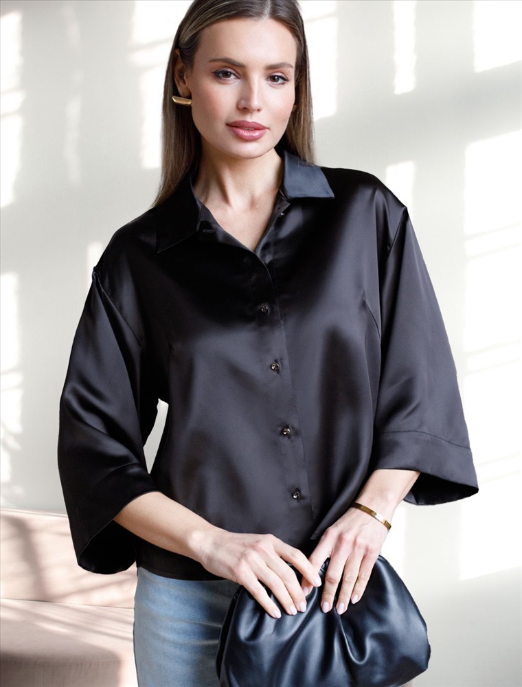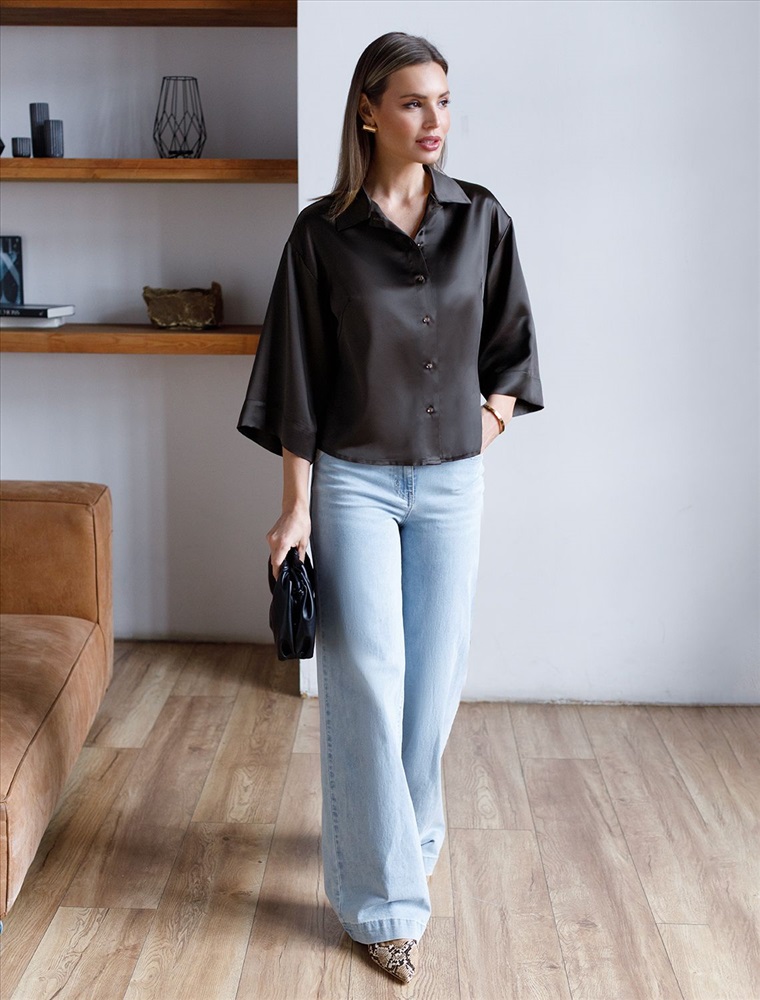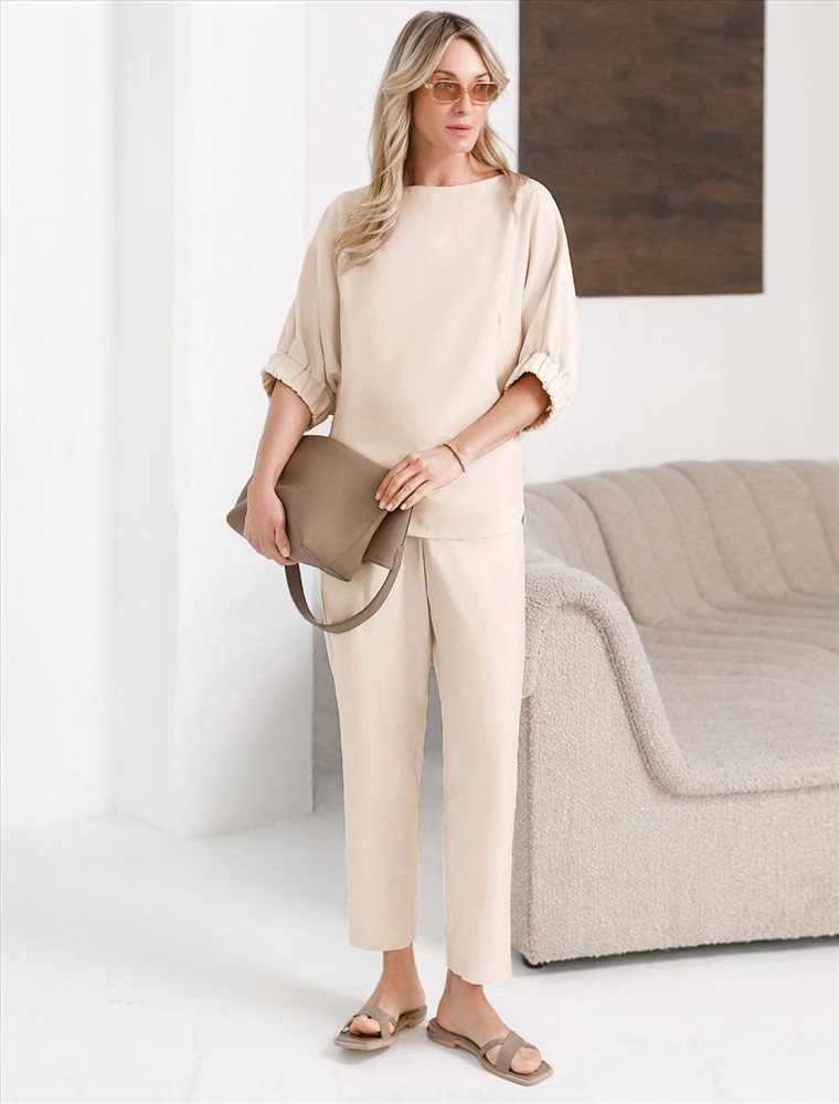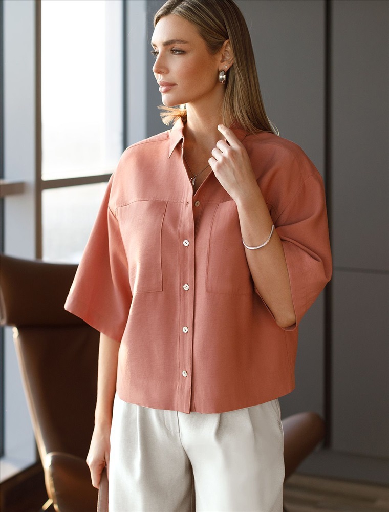 Блузка с широкими рукавами 3/4 из плотного лиоцелла 7 фото