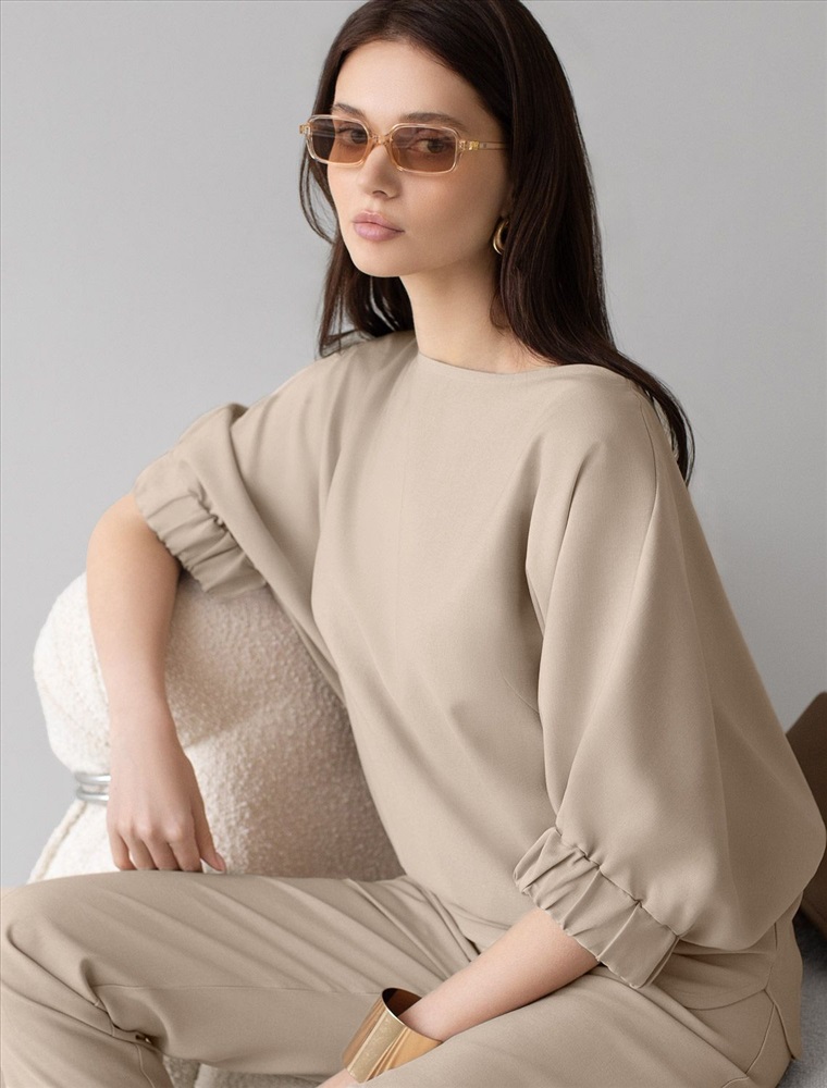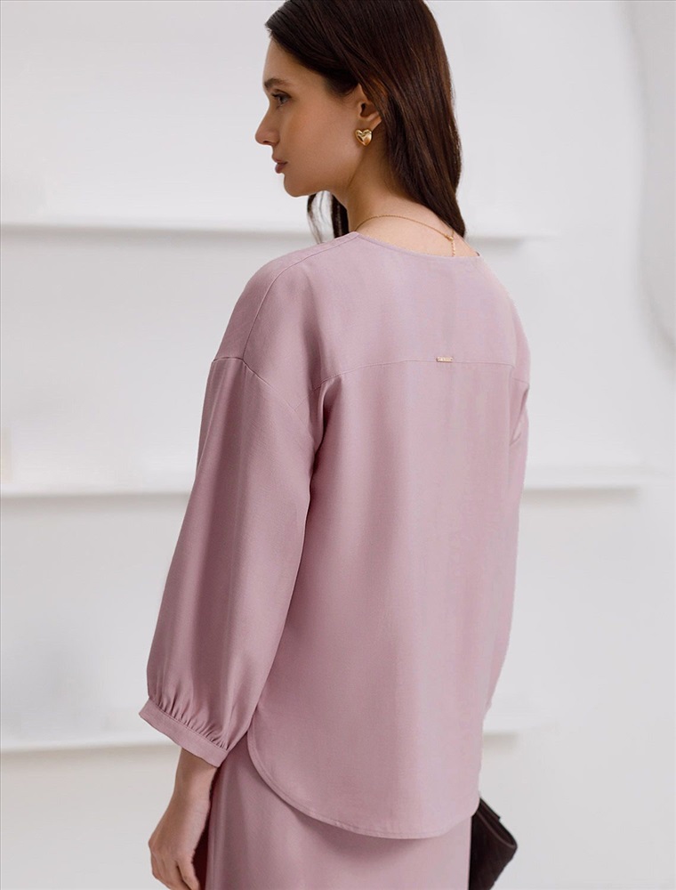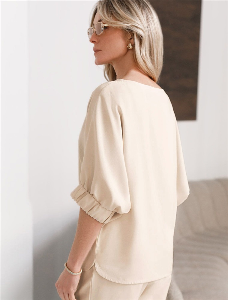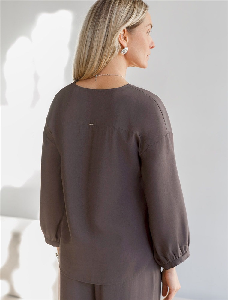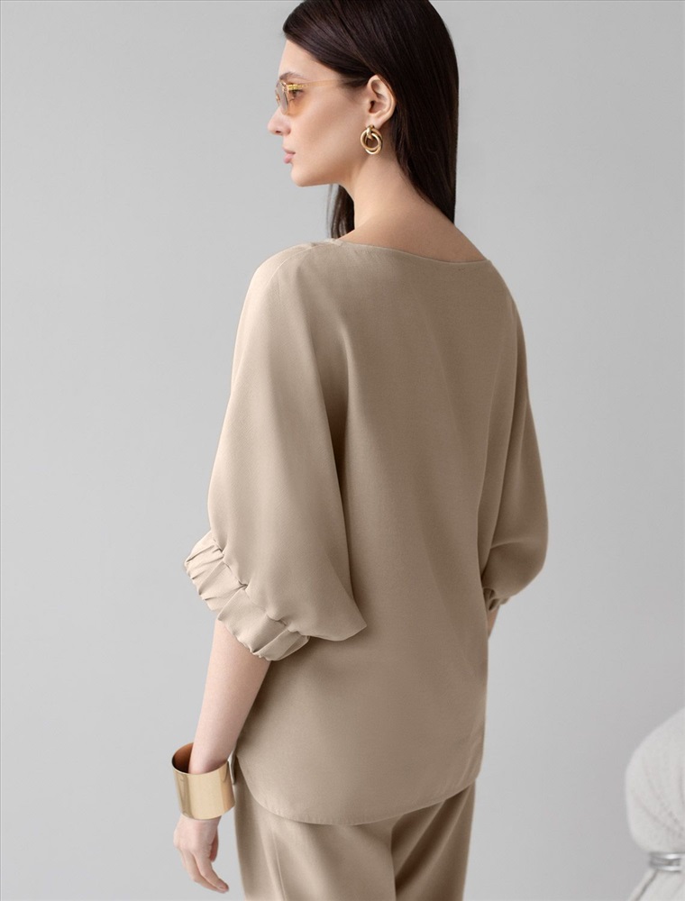 Блузка с широкими рукавами 3/4 из плотного лиоцелла 6 фото