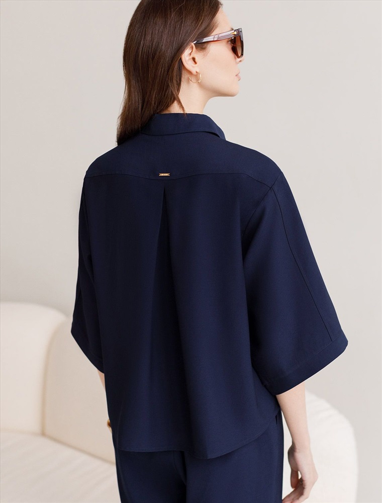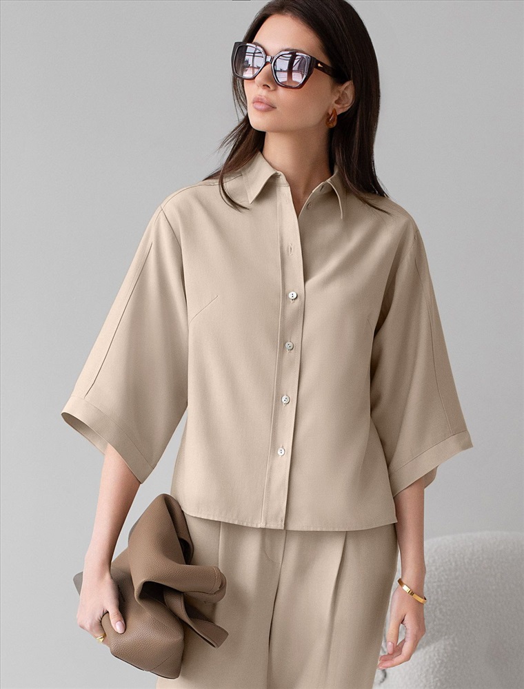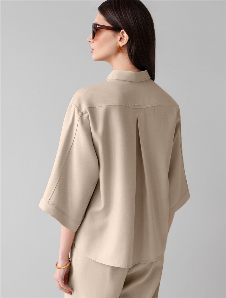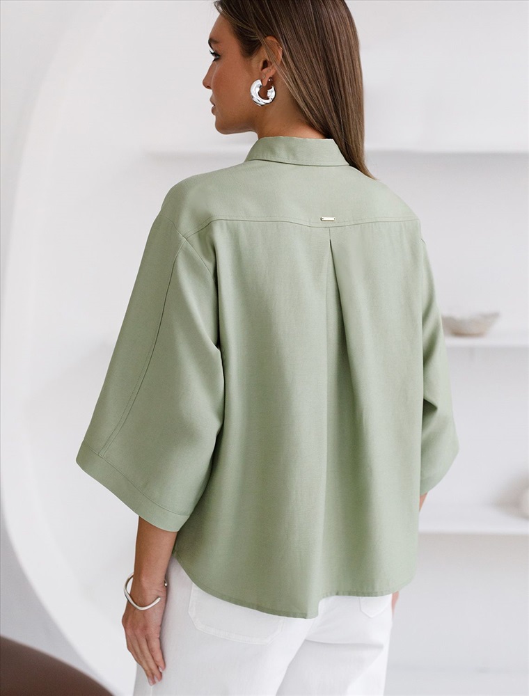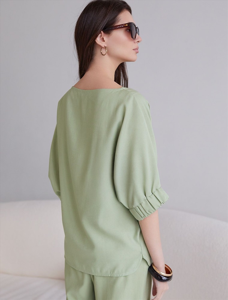 Блузка с широкими рукавами 3/4 из плотного лиоцелла 6 фото