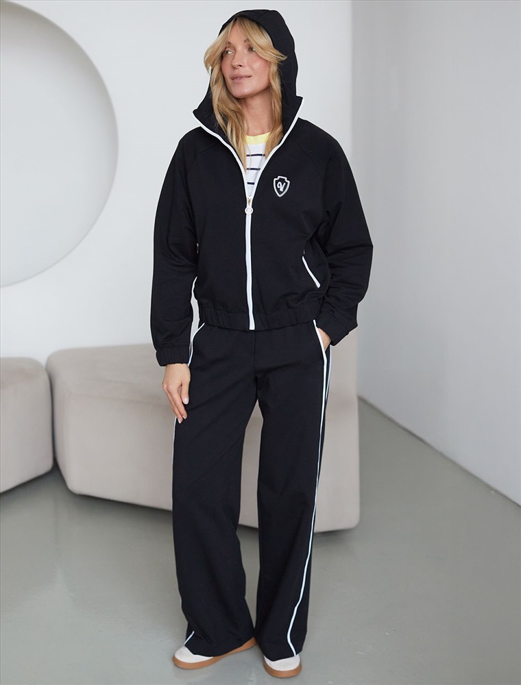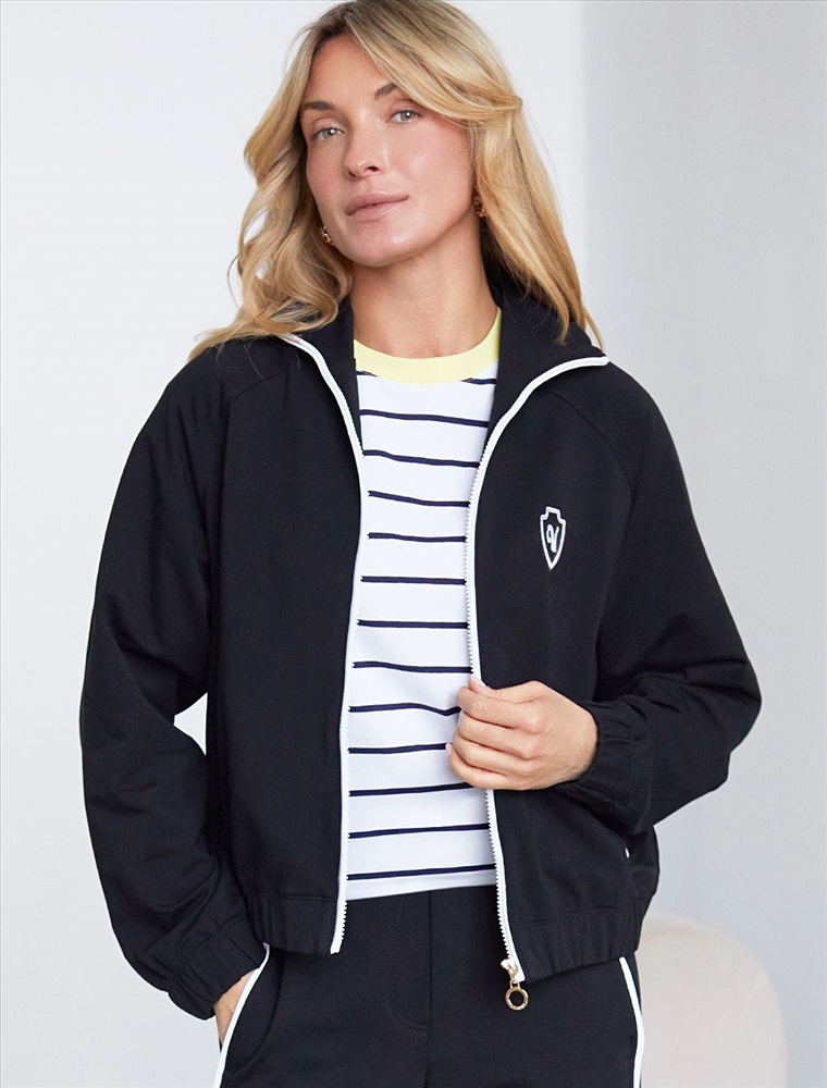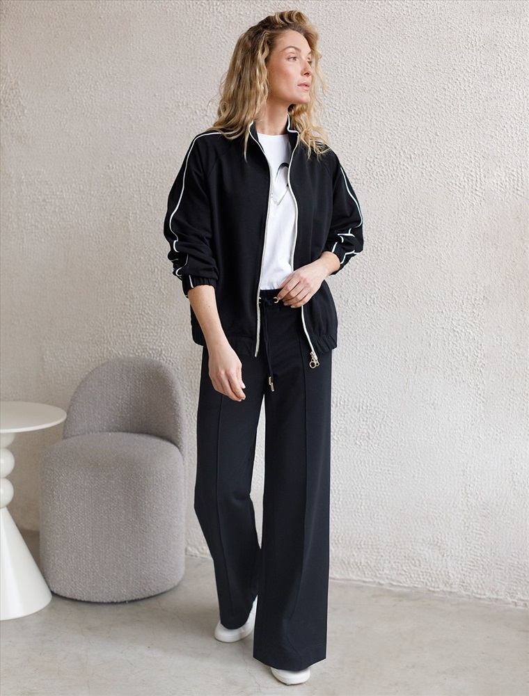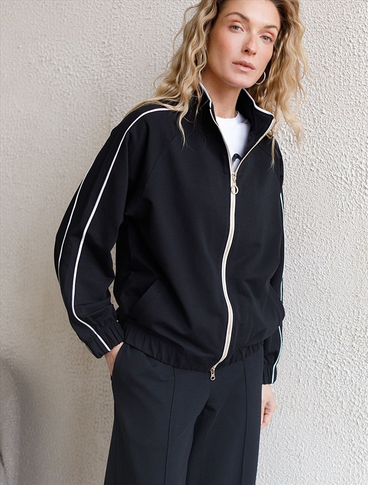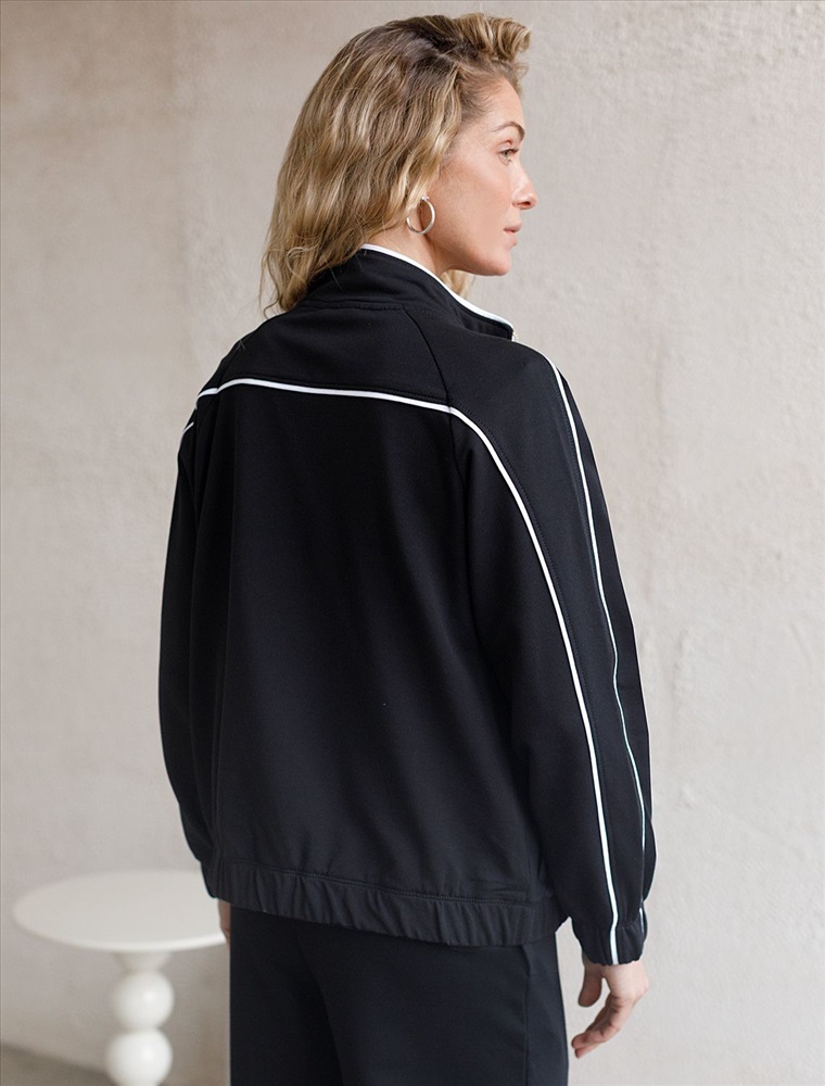 Свободный бомбер с лампасами на молнии из петельчатого футера двухнитки с эластаном 9 фото