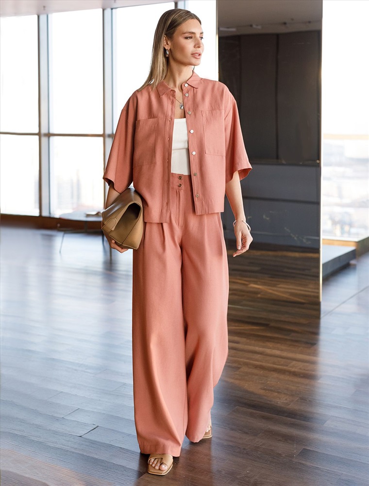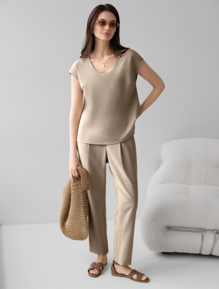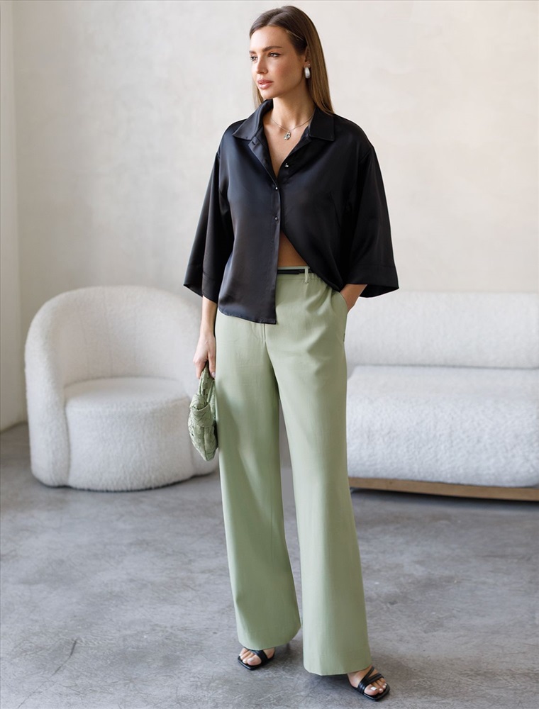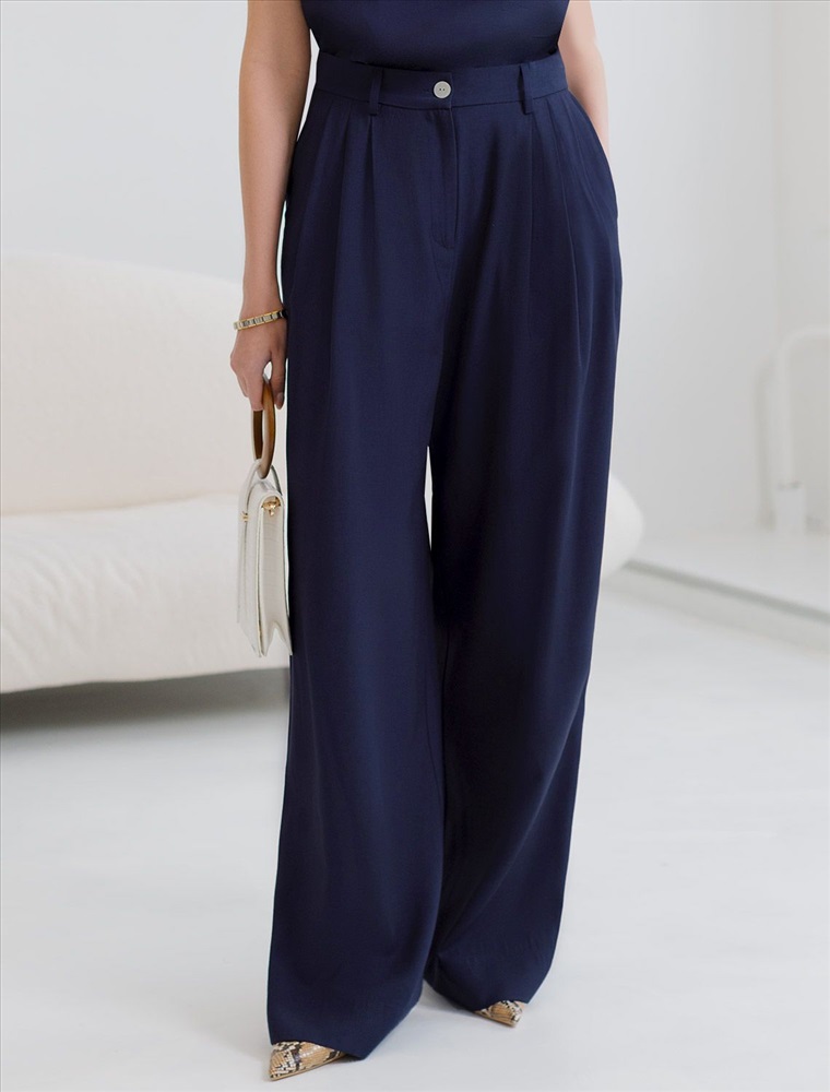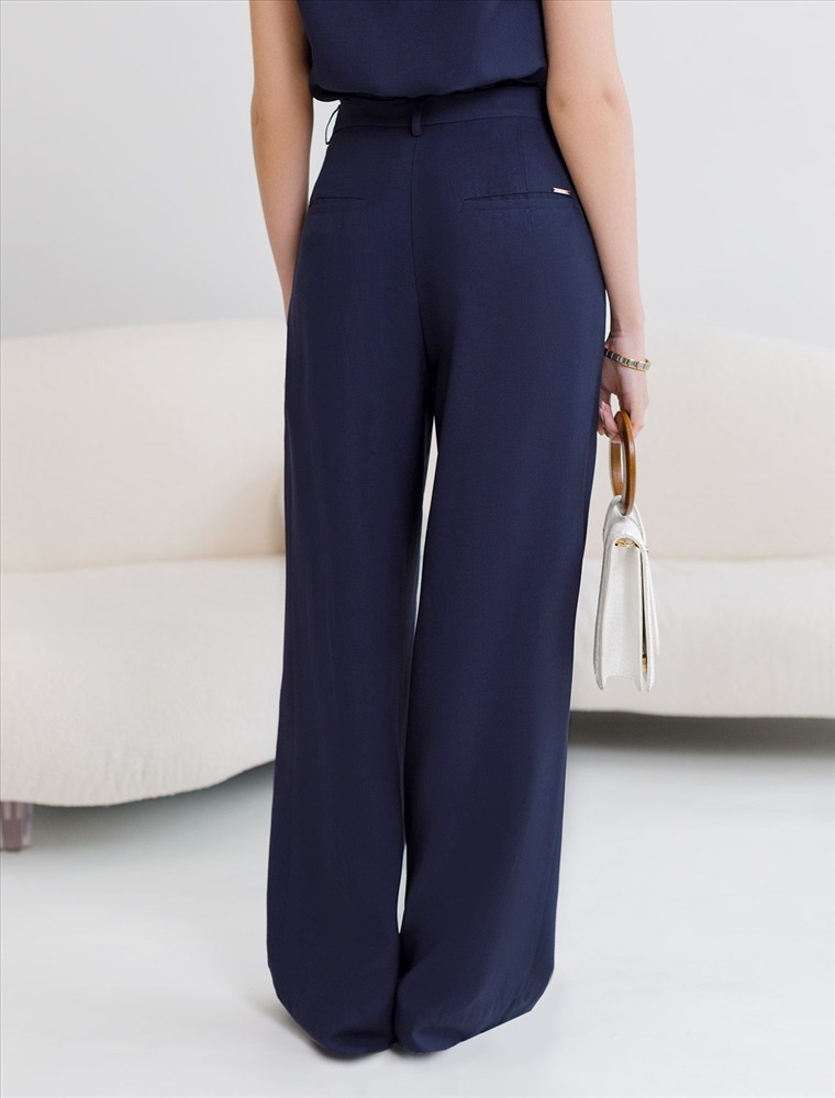 Брюки палаццо с защипами из плотного лиоцелла 8 фото