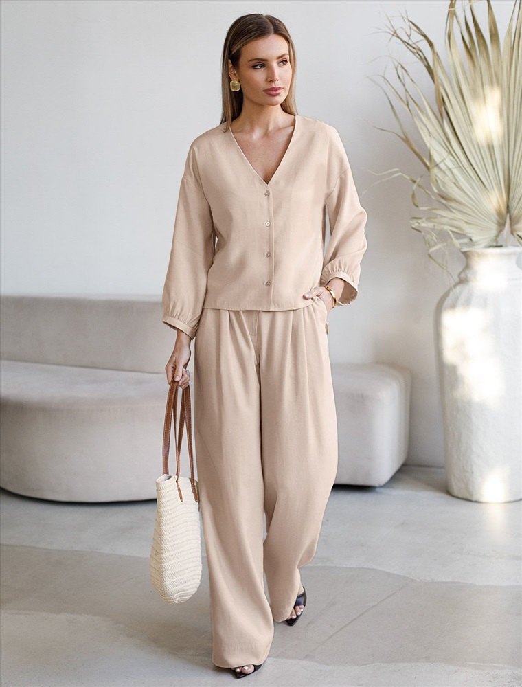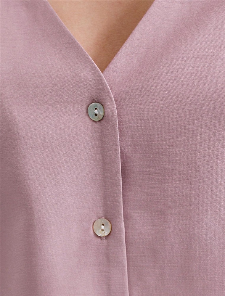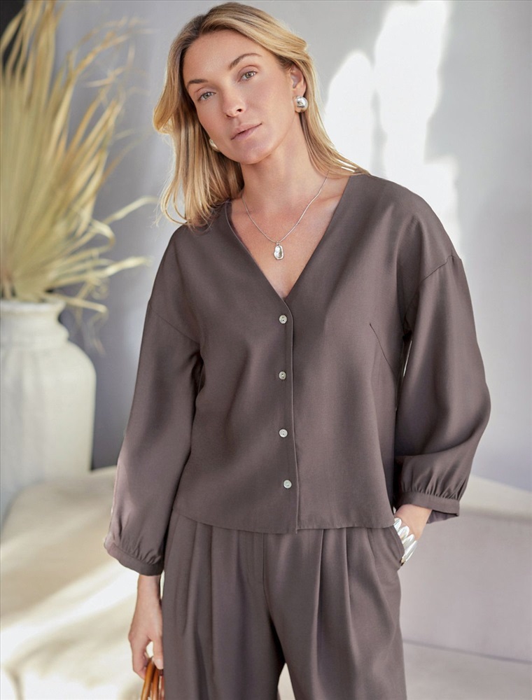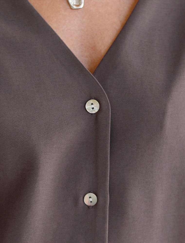 Укороченная блузка с V вырезом из плотного лиоцелла 8 фото