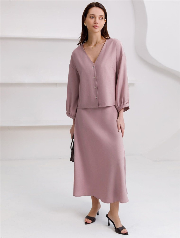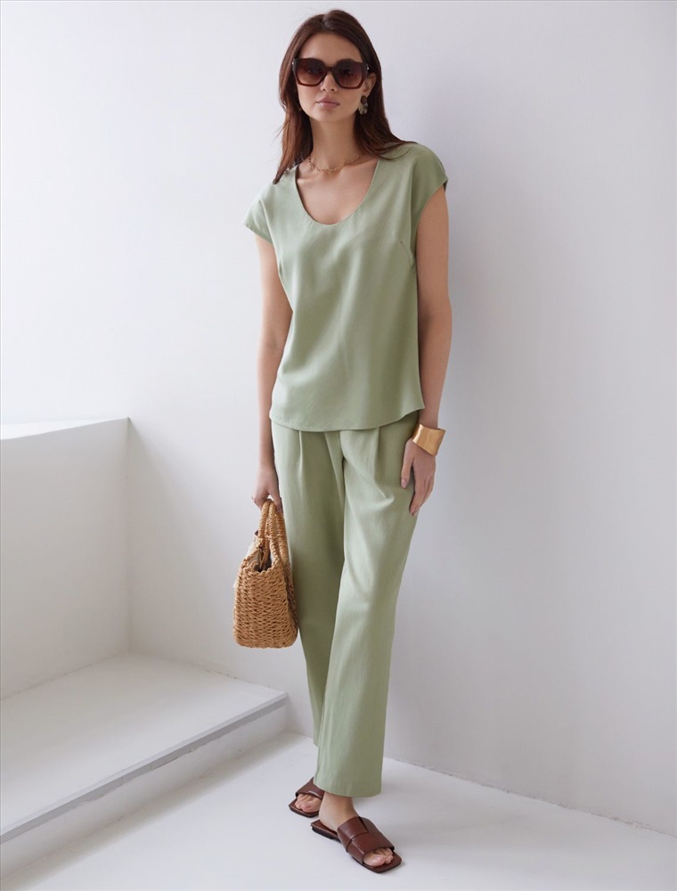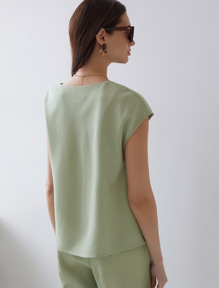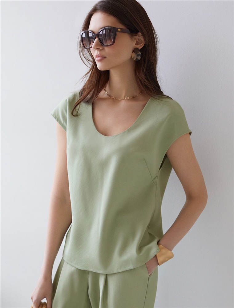 Блузка с U вырезом скроенная по косой из плотного лиоцелла 5 фото