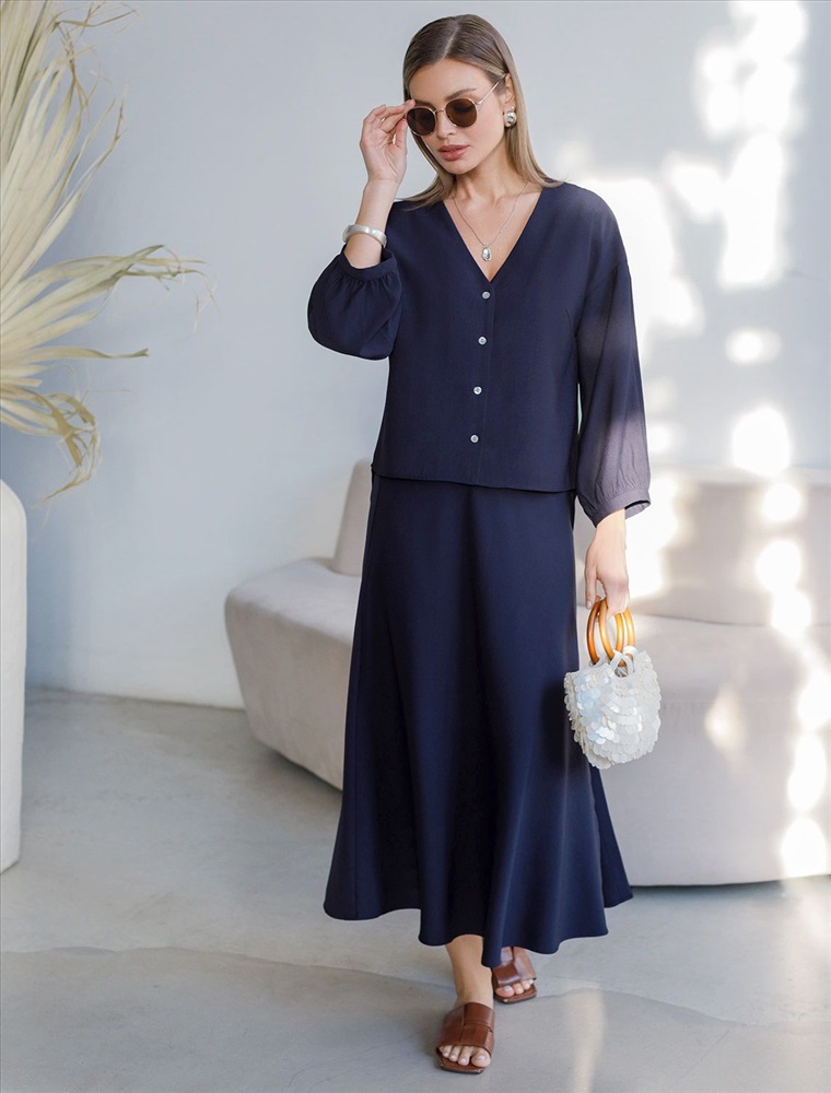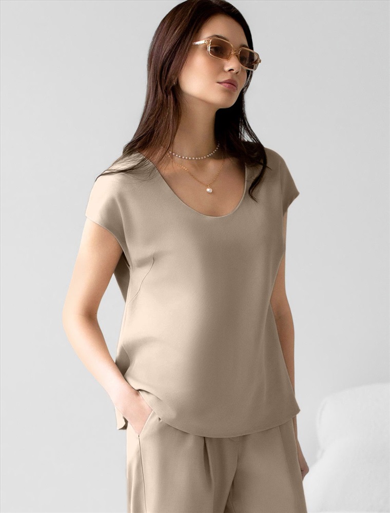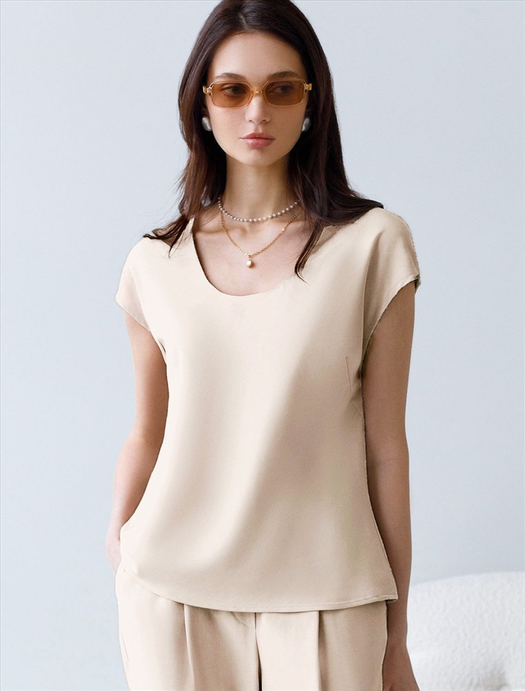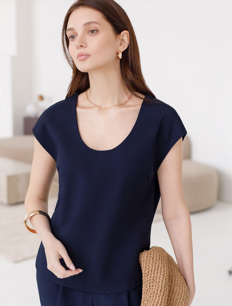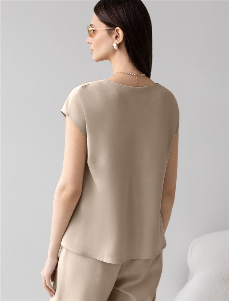 Блузка с U вырезом скроенная по косой из плотного лиоцелла 3 фото