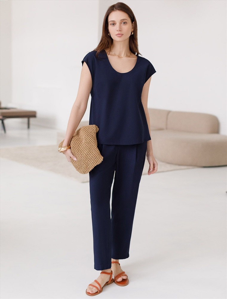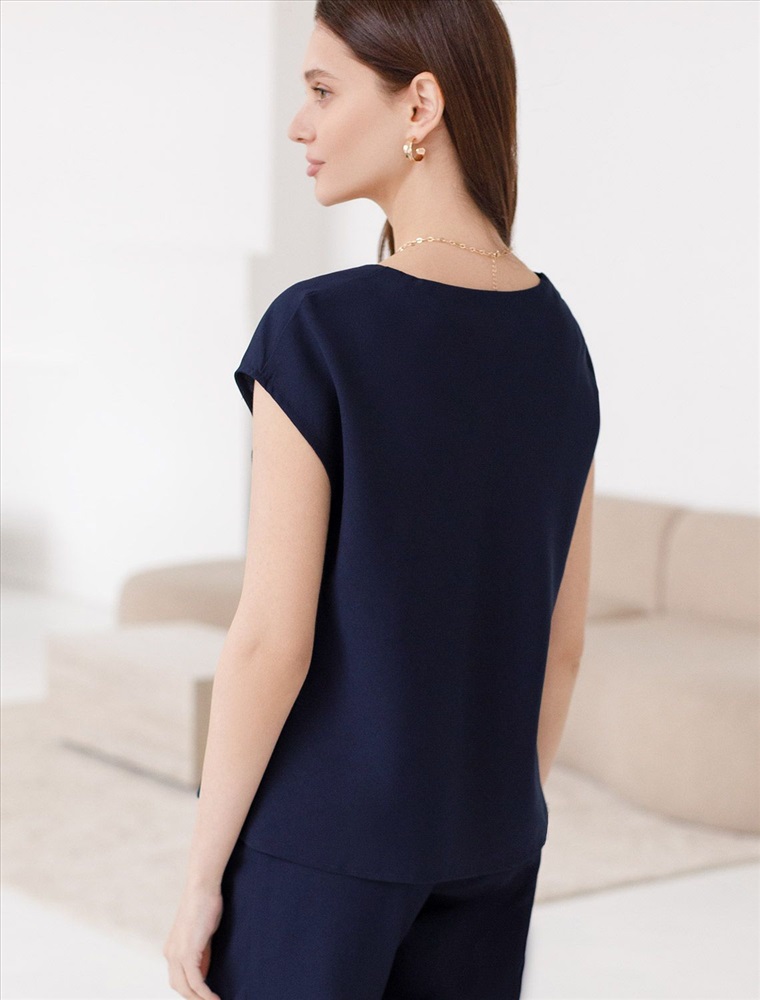 Свободная блузка с вырезом лодочка из плотного лиоцелла 7 фото