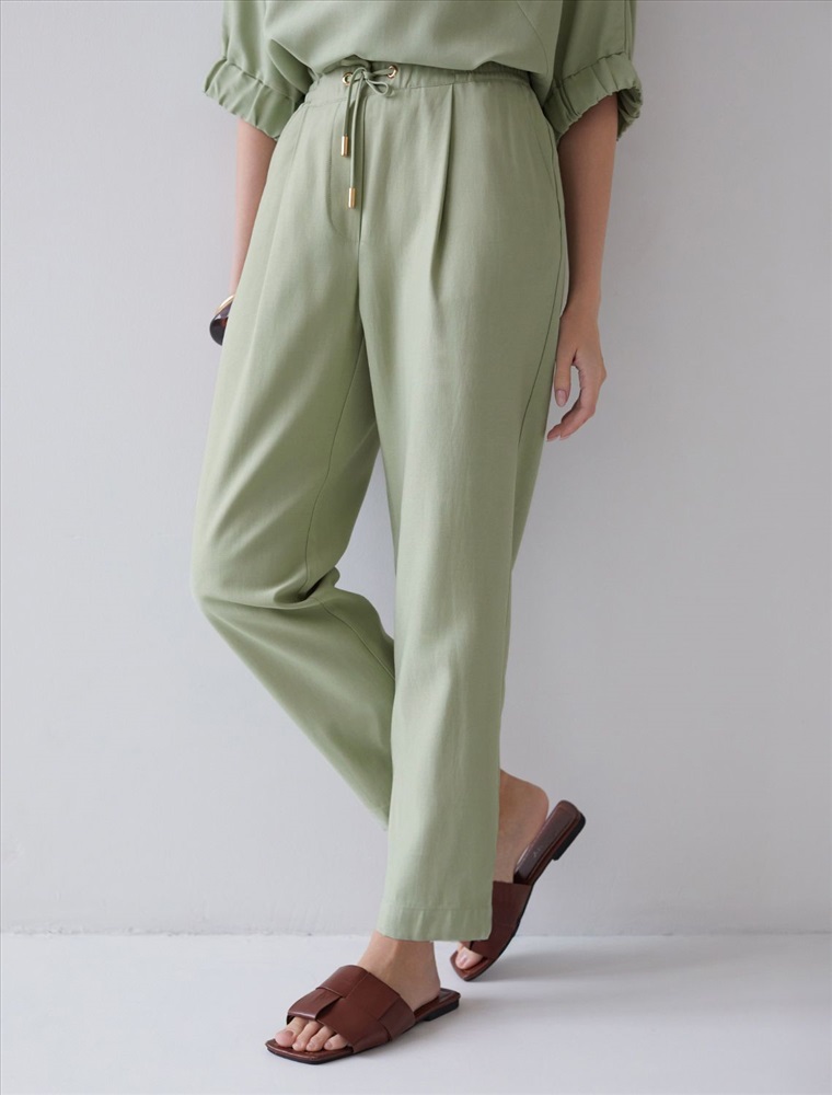 Брюки бананы с поясом на резинке из плотного лиоцелла 6 фото