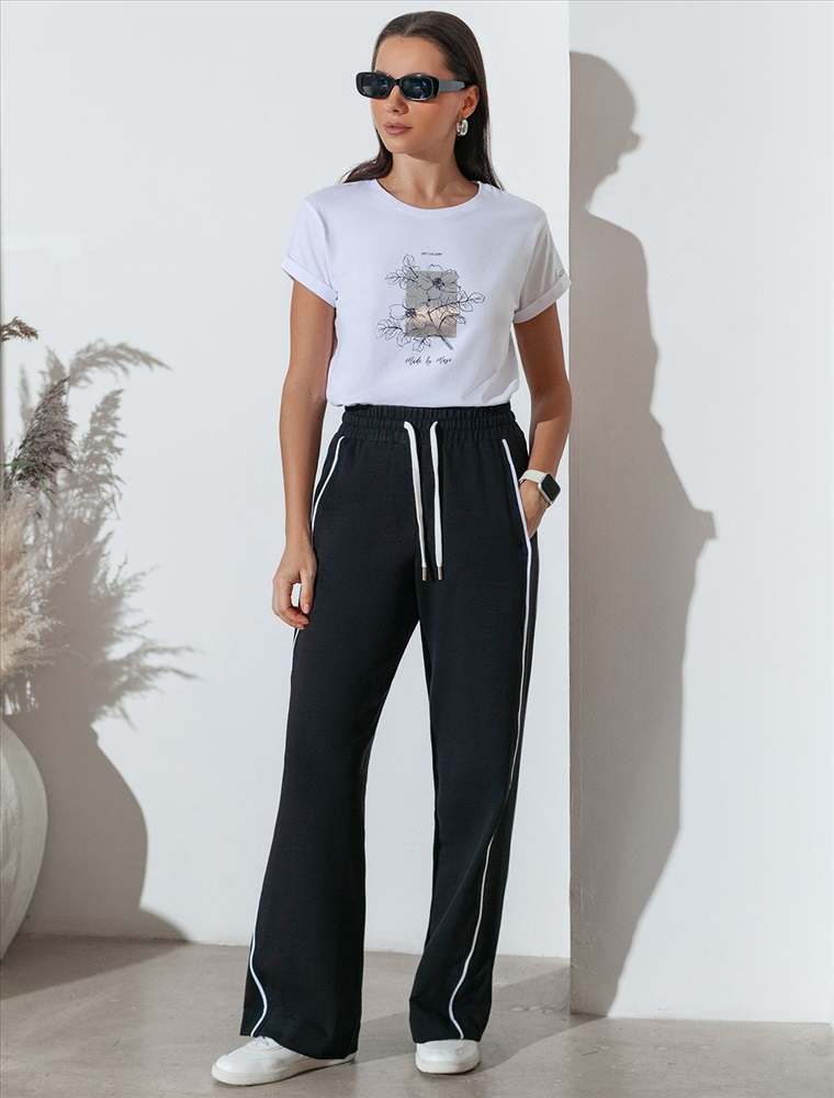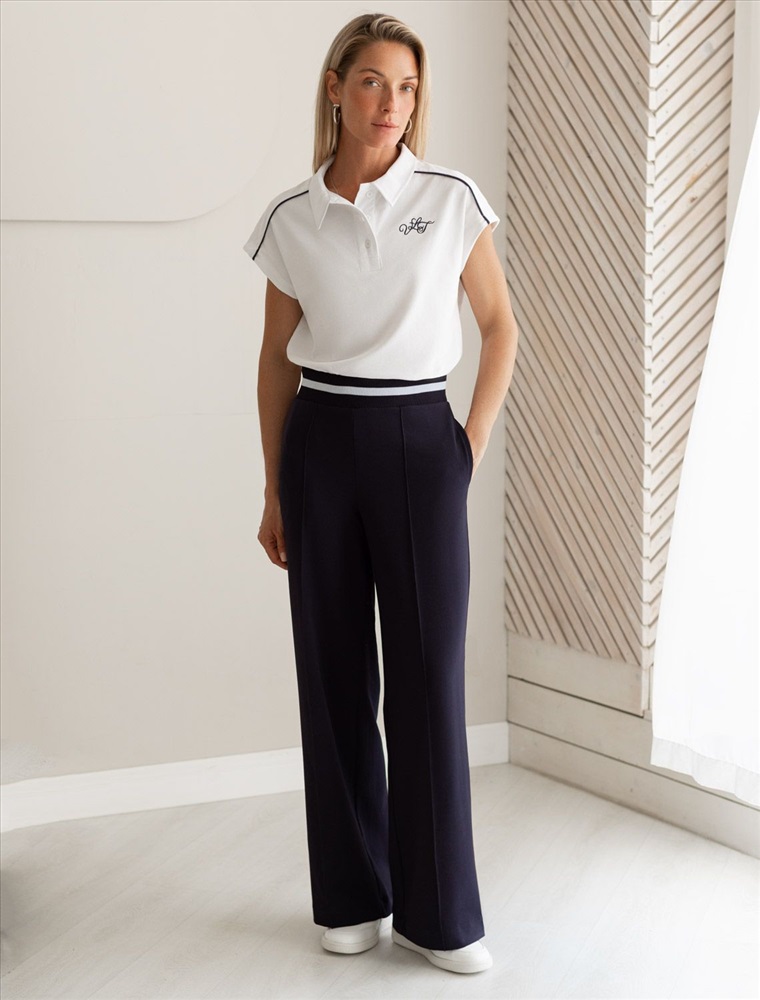 Прямые брюки с лампасами из эластичного футера двухнитки без начеса 7 фото