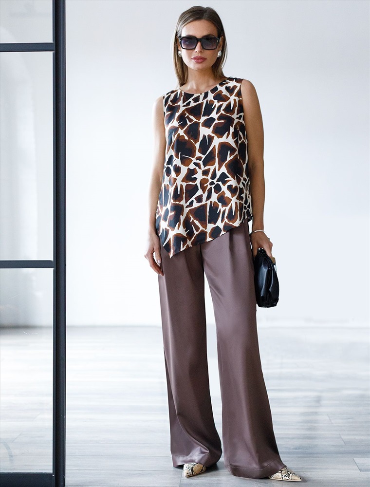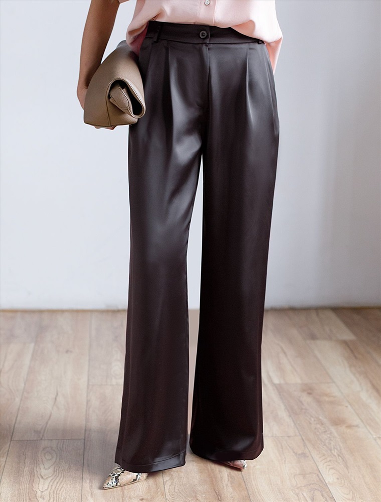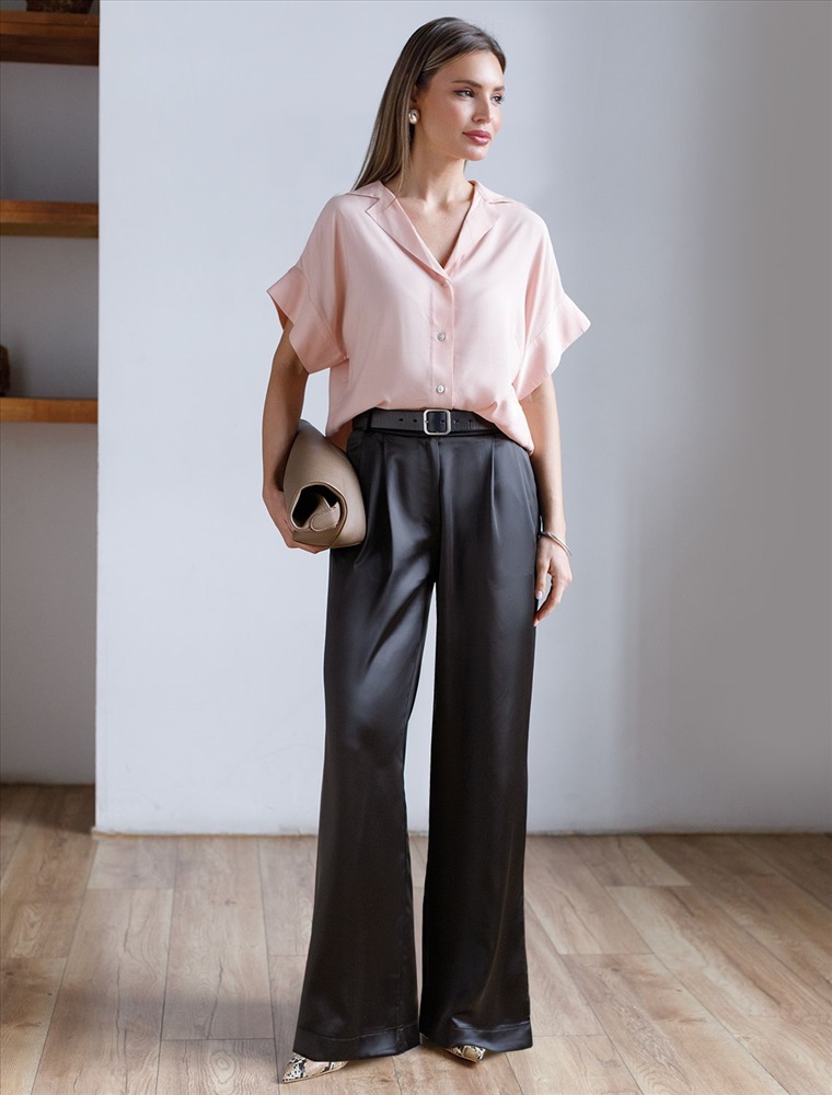 Брюки палаццо широкие из струящегося сатина 7 фото