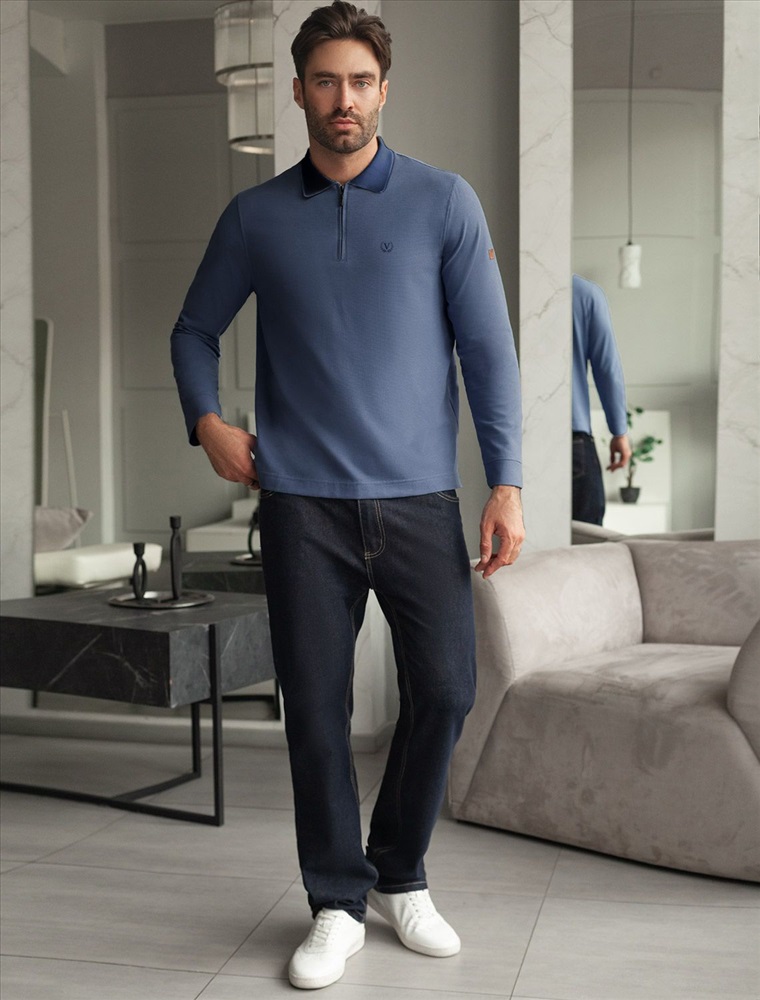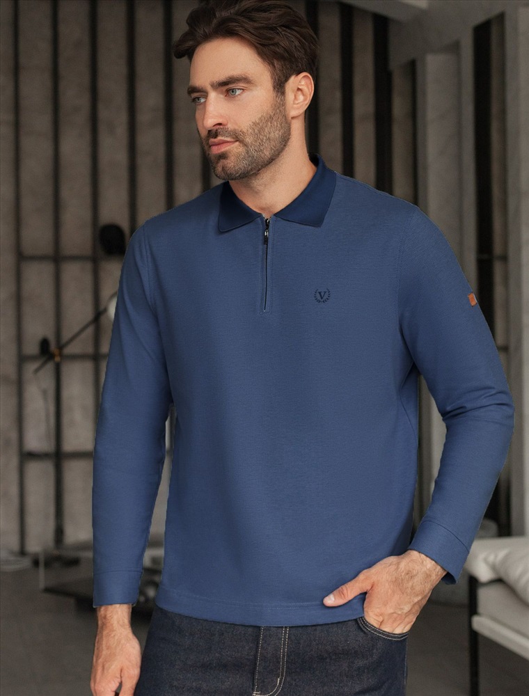 Лонгслив из мягкого фактурного трикотажа с плетеным воротником поло на молнии