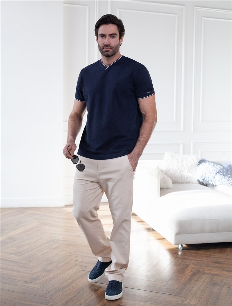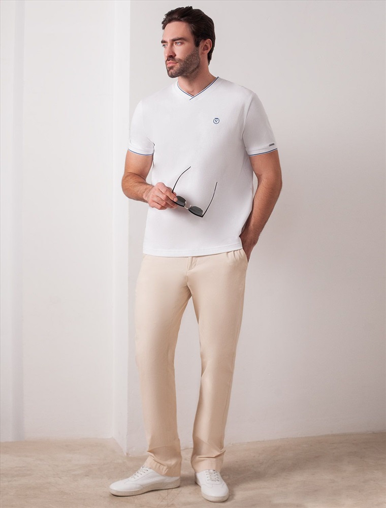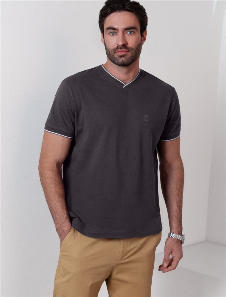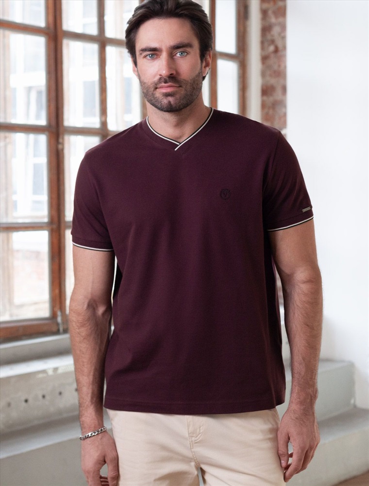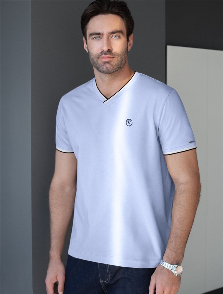Футболка с V-вырезом из премиального хлопка с эластаном