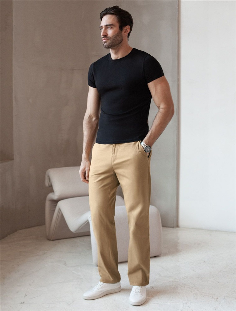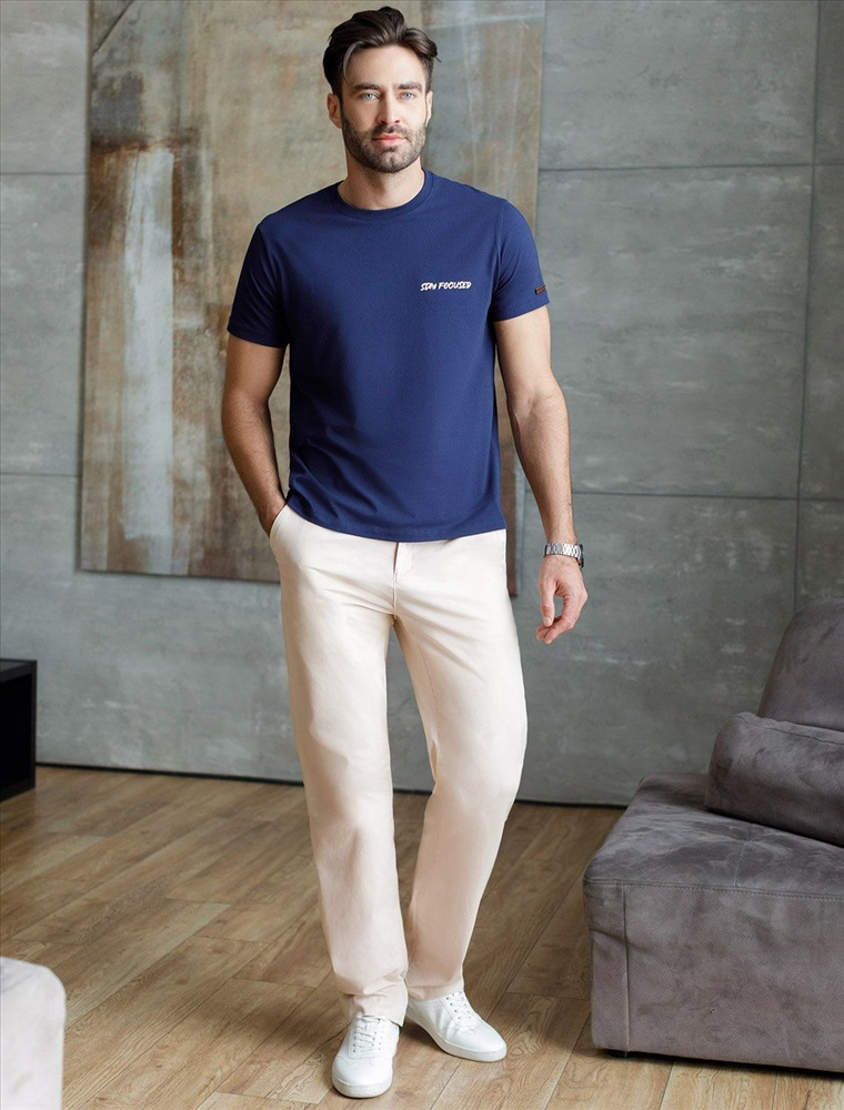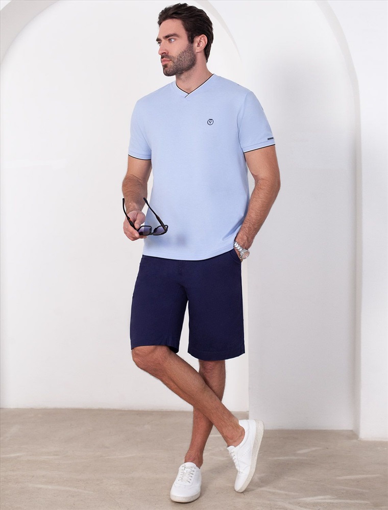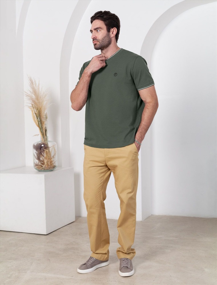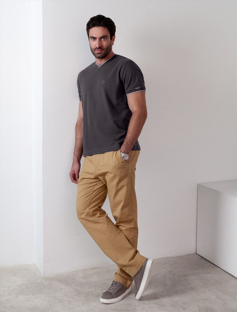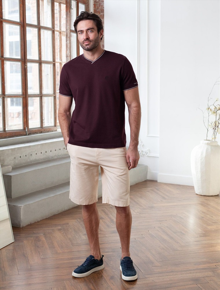 Футболка с V-вырезом из премиального хлопка с эластаном