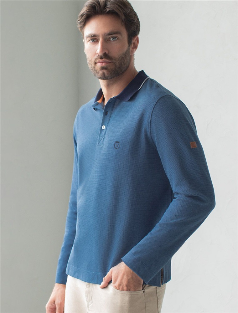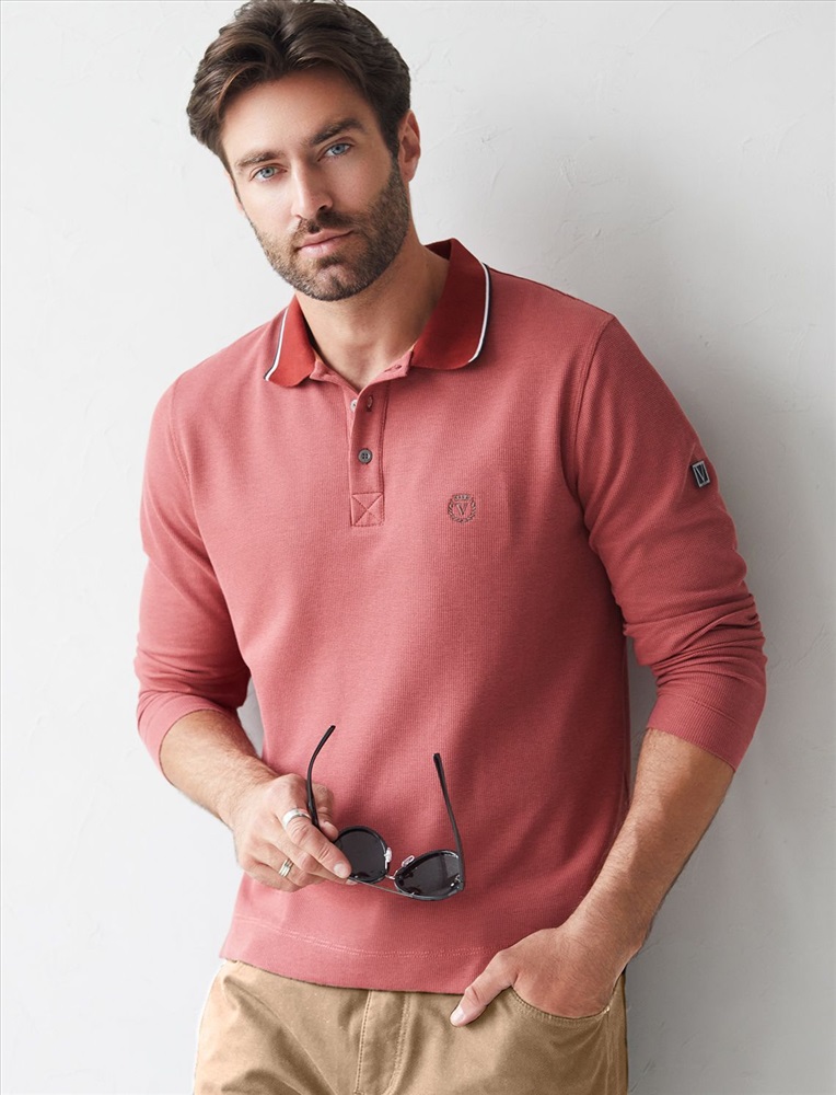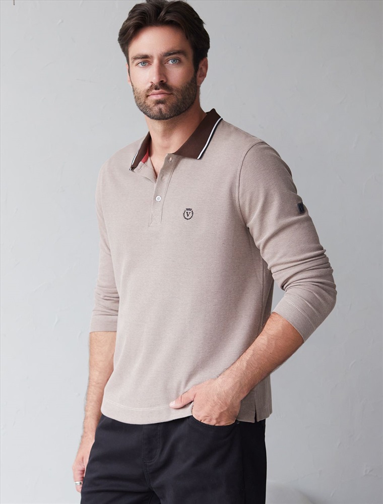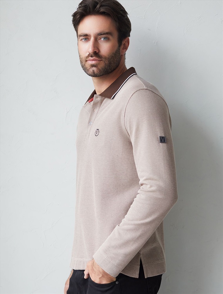 Лонгслив из фактурного трикотажа с плетеным воротником поло с застежкой на пуговицы