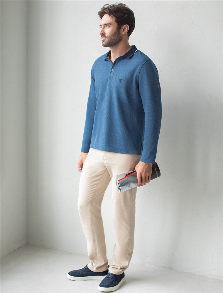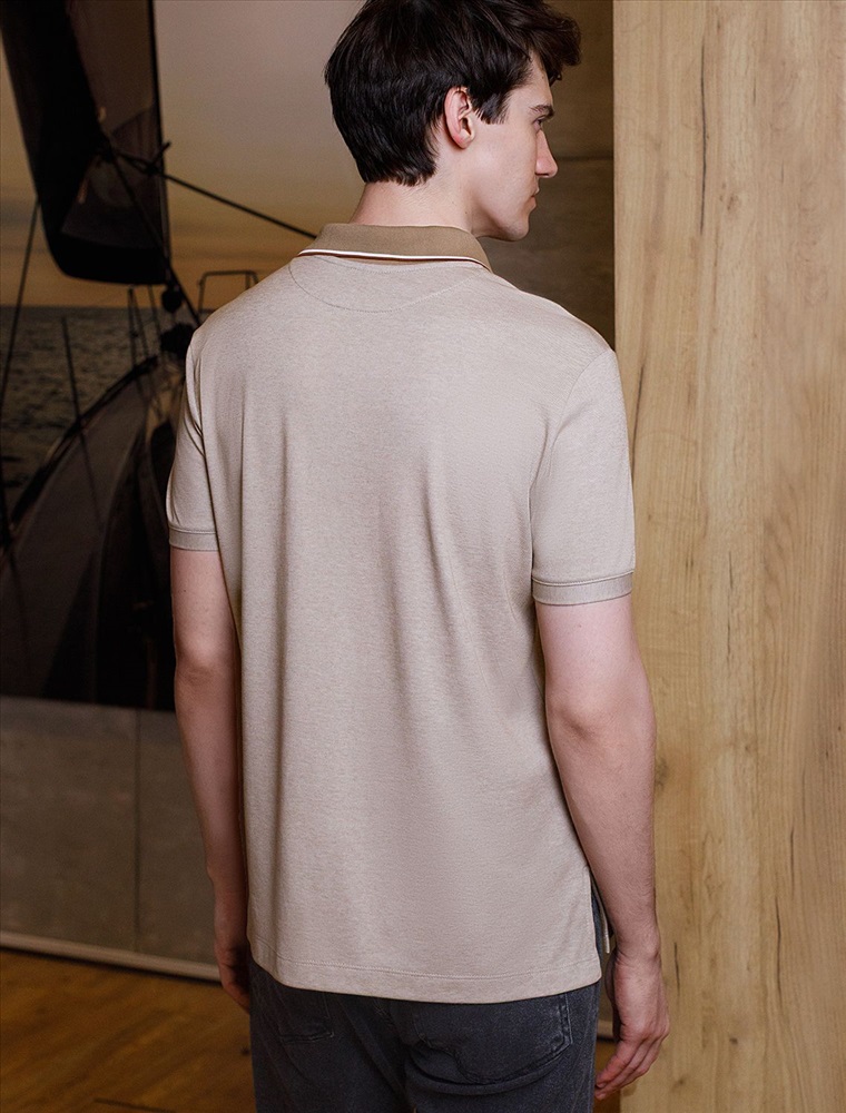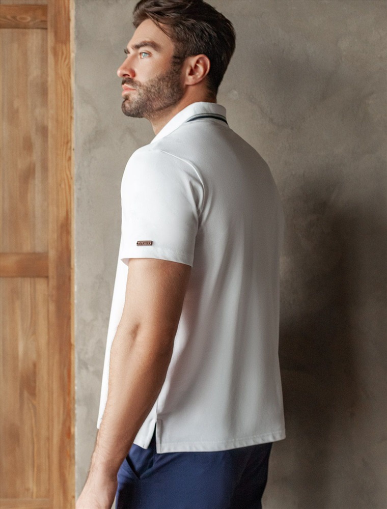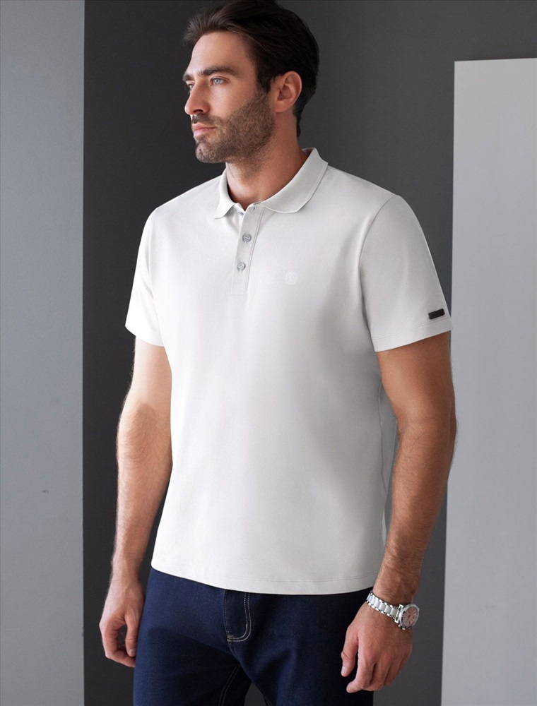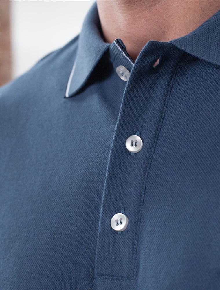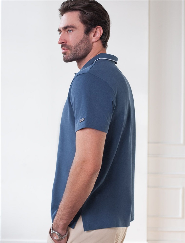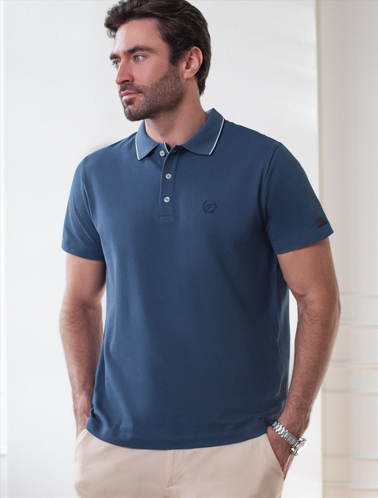 Футболка поло с плетеным воротником на пуговицах из эластичного хлопка