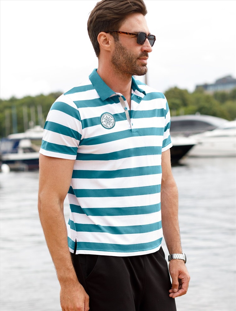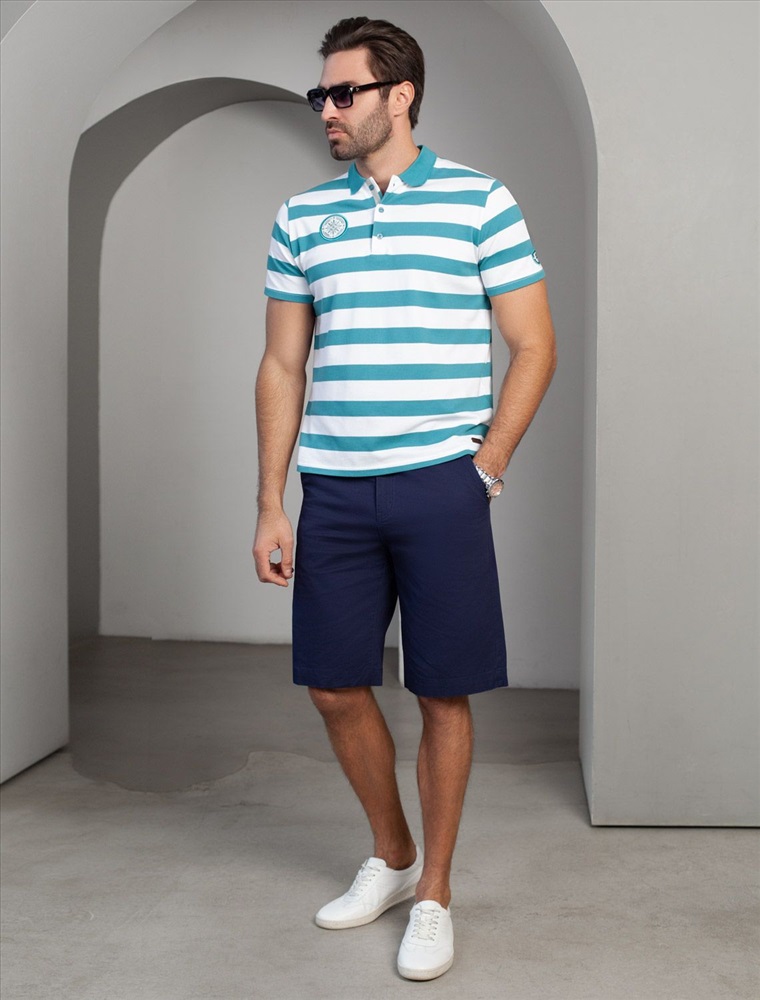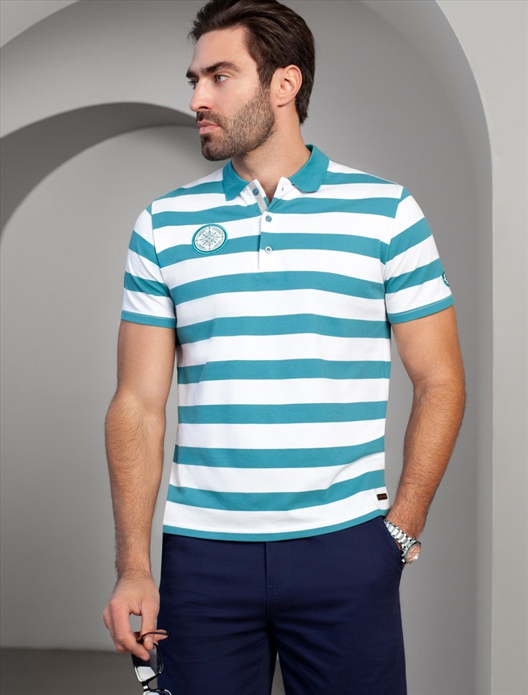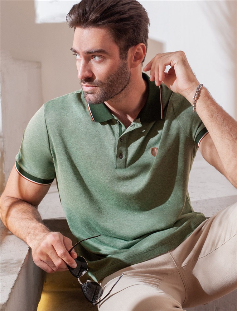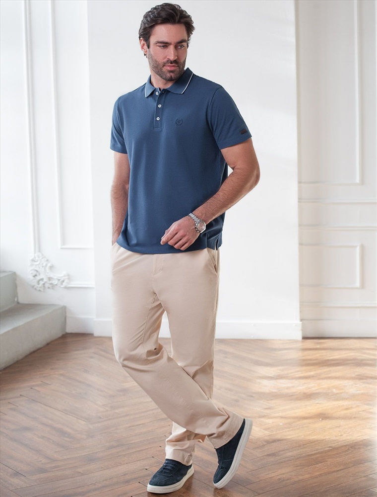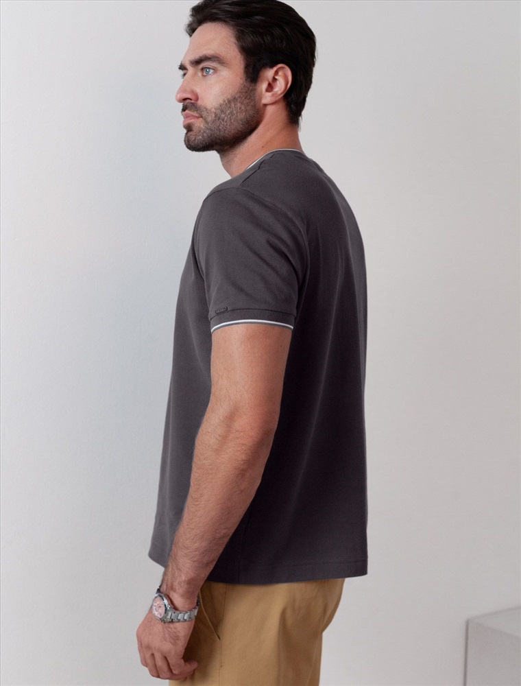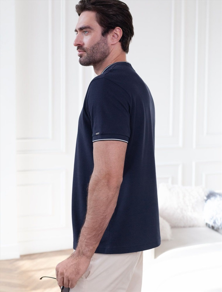 Футболка поло с плетеным воротником на пуговицах из эластичного хлопка