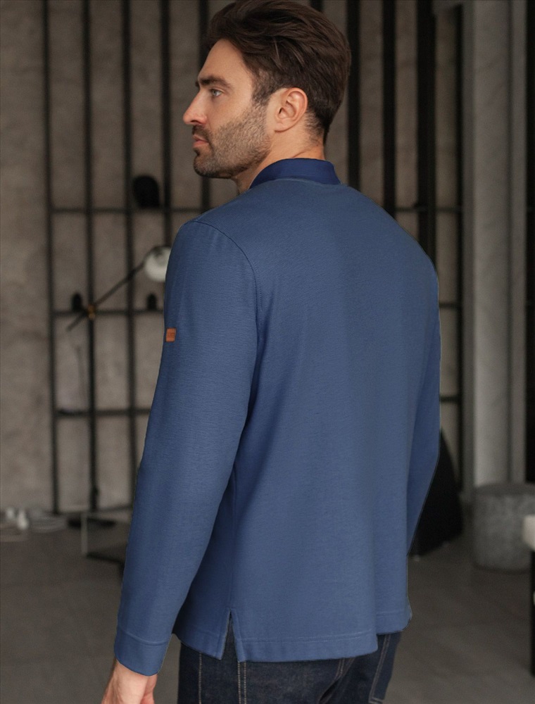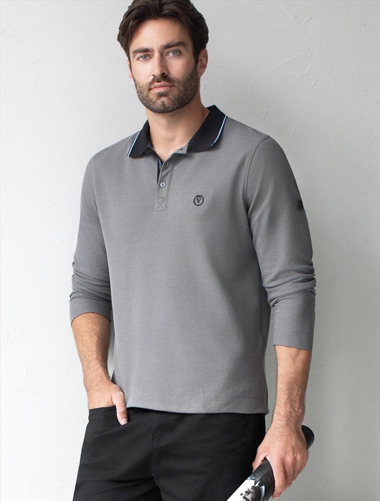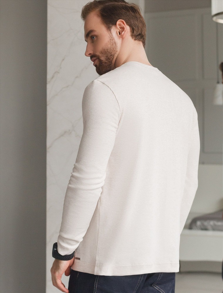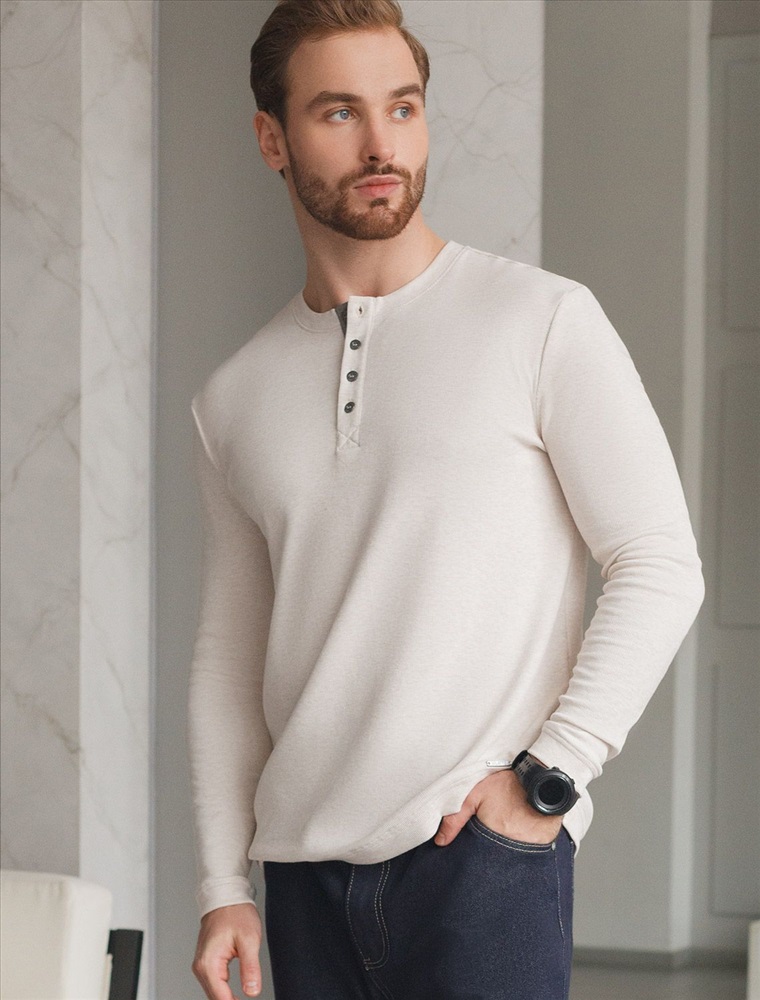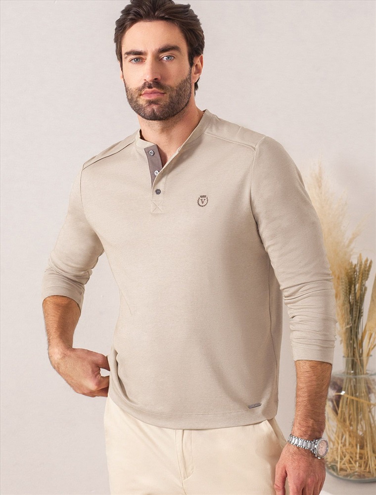 Лонгслив с воротником на пуговицах и декоративными швами из премиального хлопка с эластаном