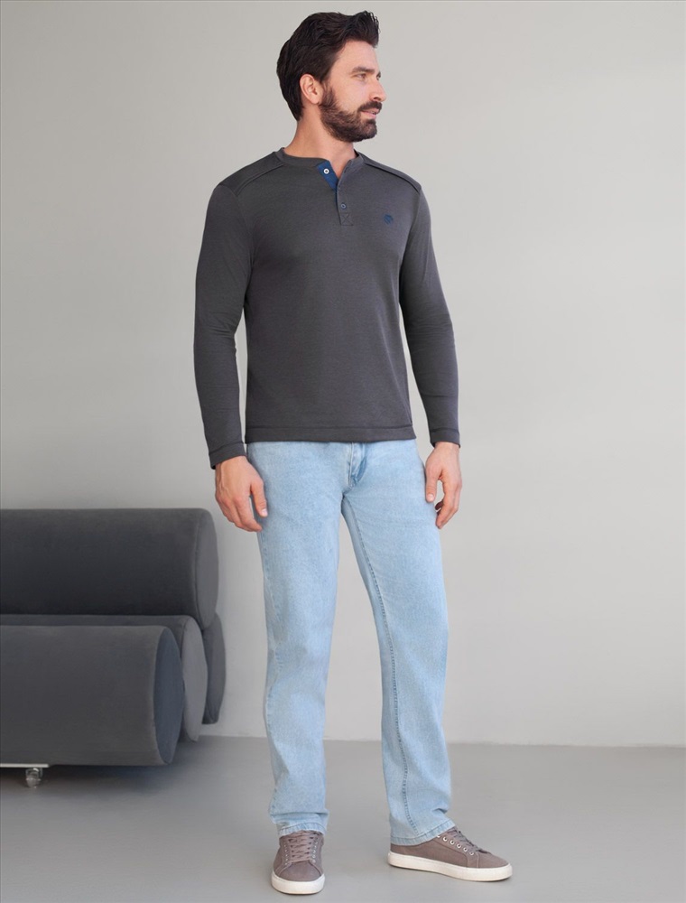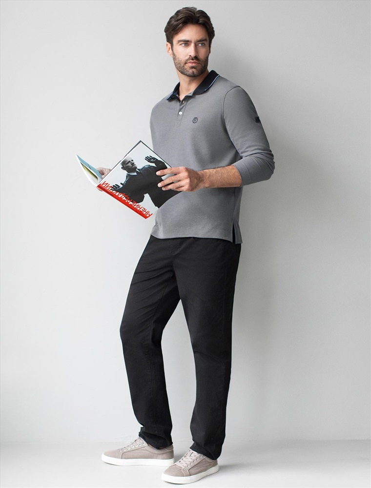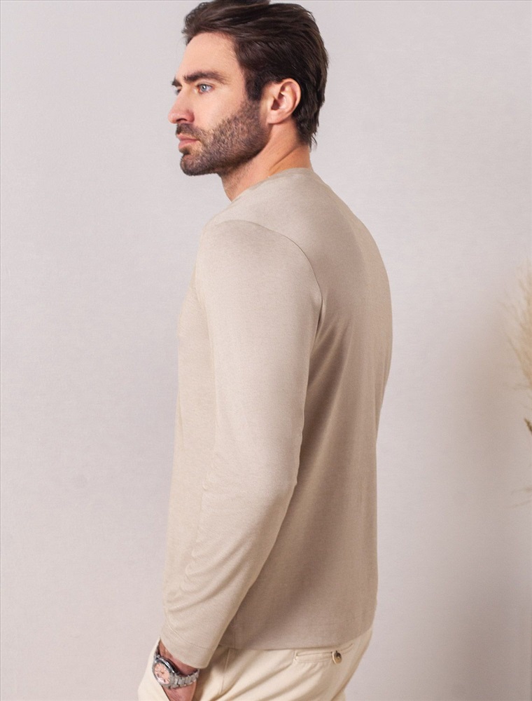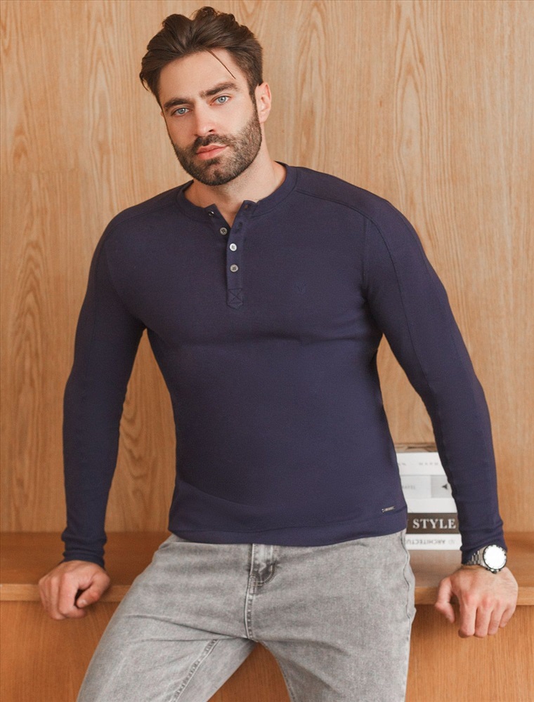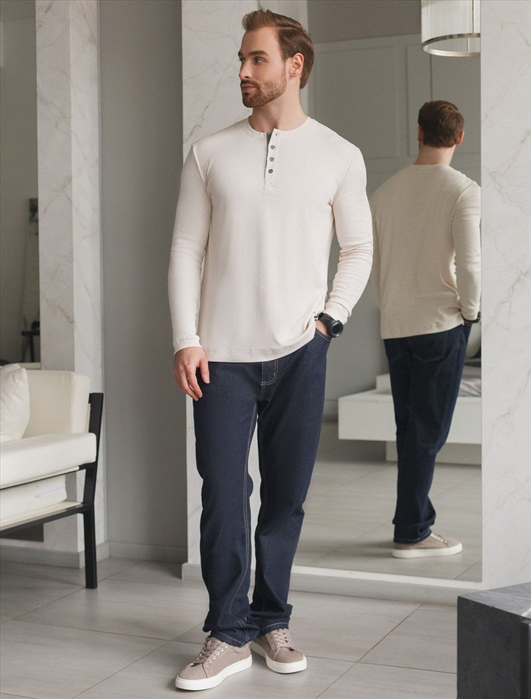 Лонгслив с воротником на пуговицах и декоративными швами из премиального хлопка с эластаном