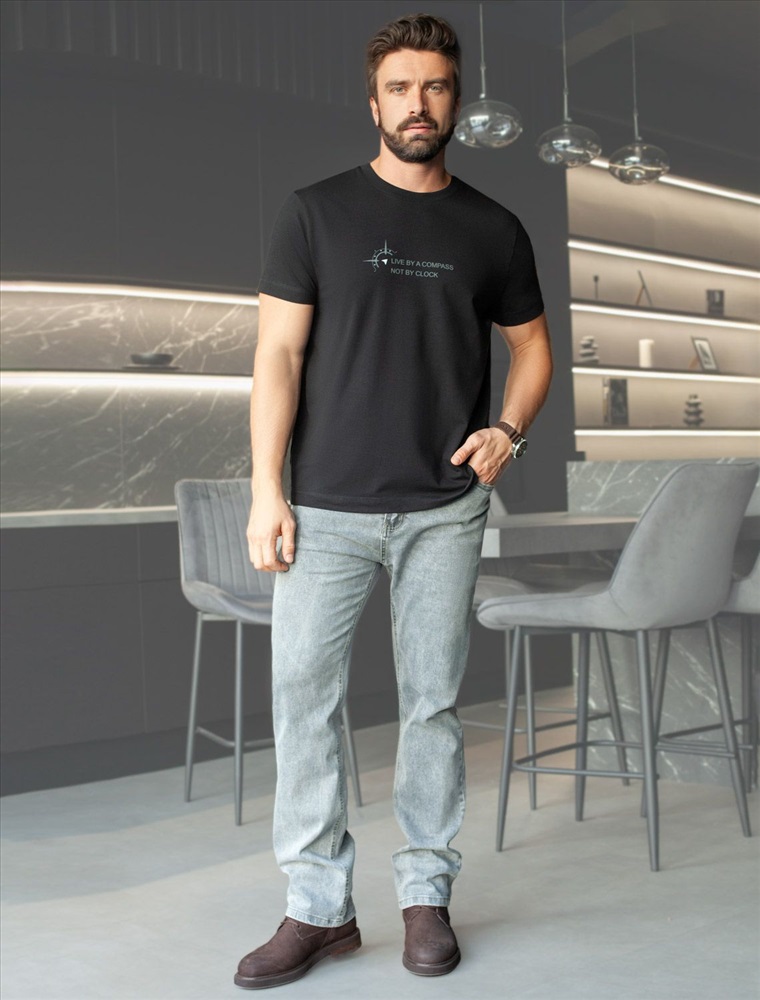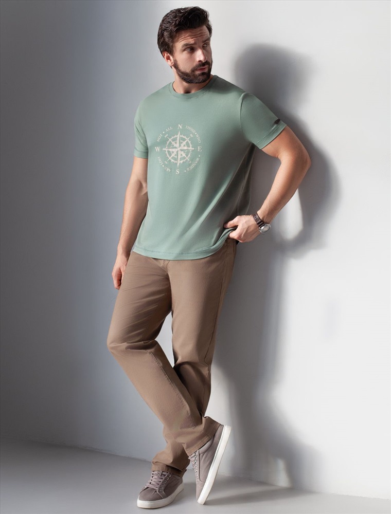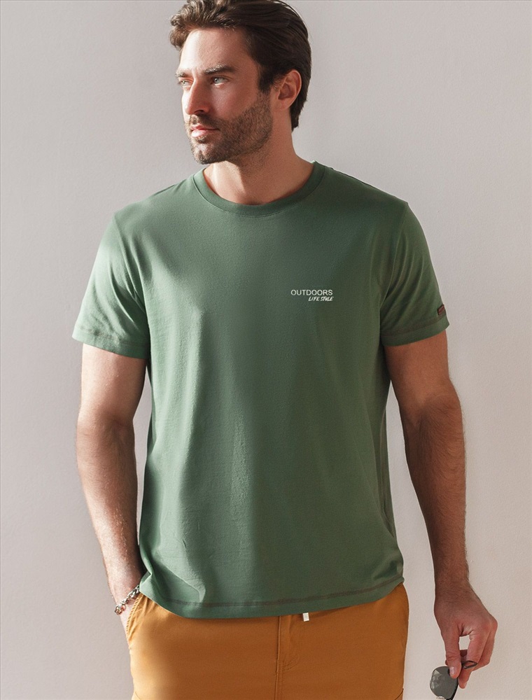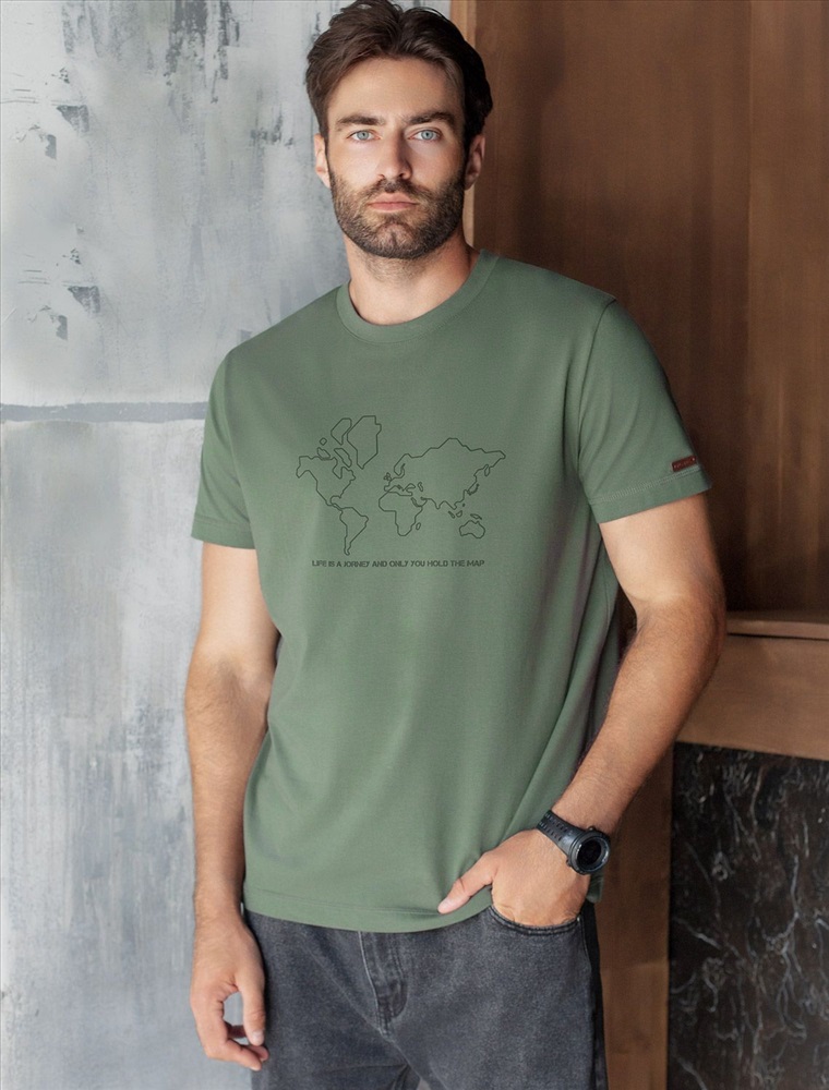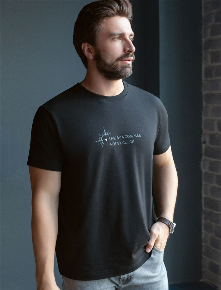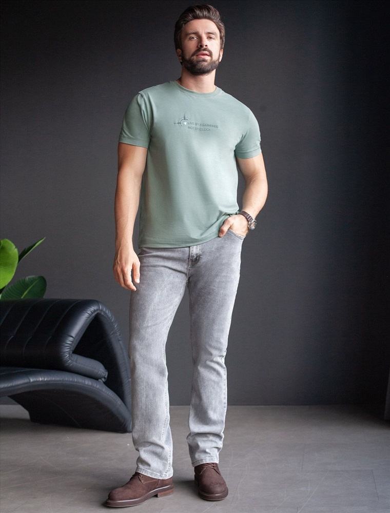 Футболка полуприлегающего кроя с принтом из премиального хлопка