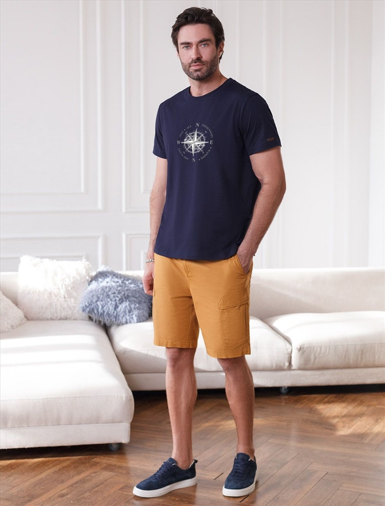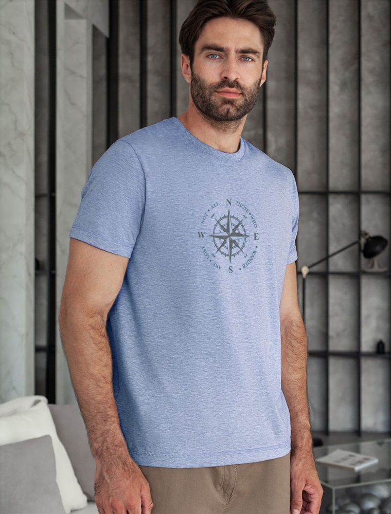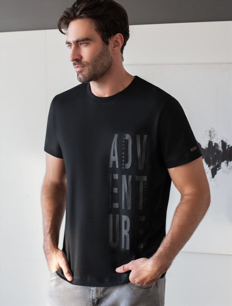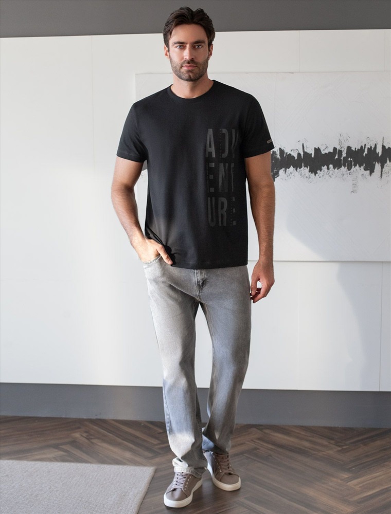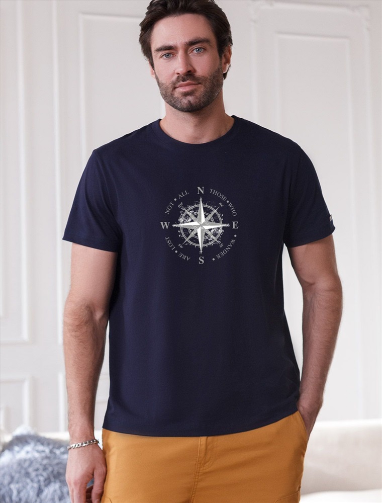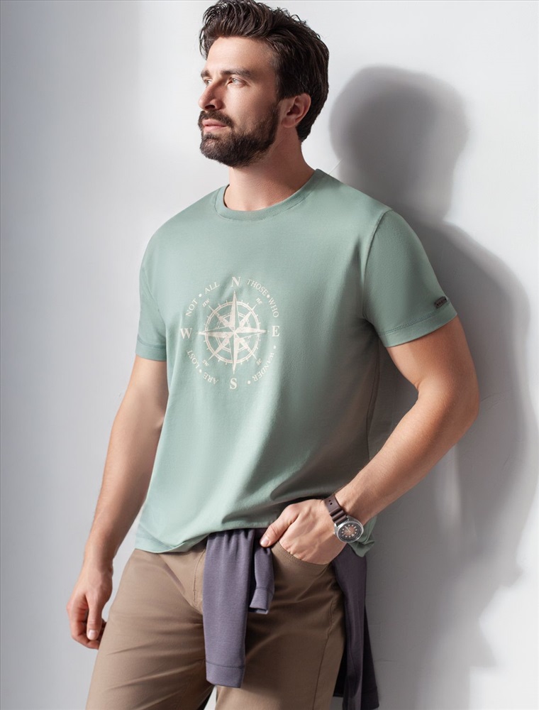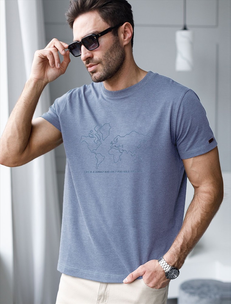 Футболка полуприлегающего кроя с принтом из премиального хлопка