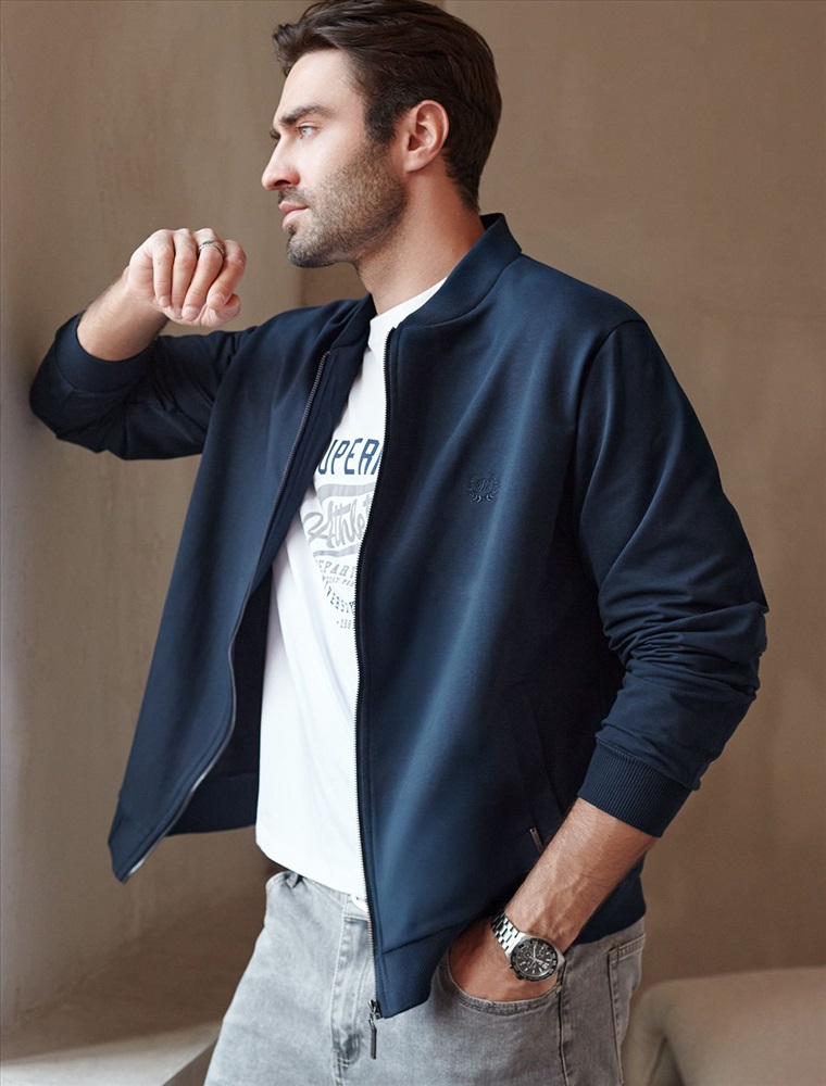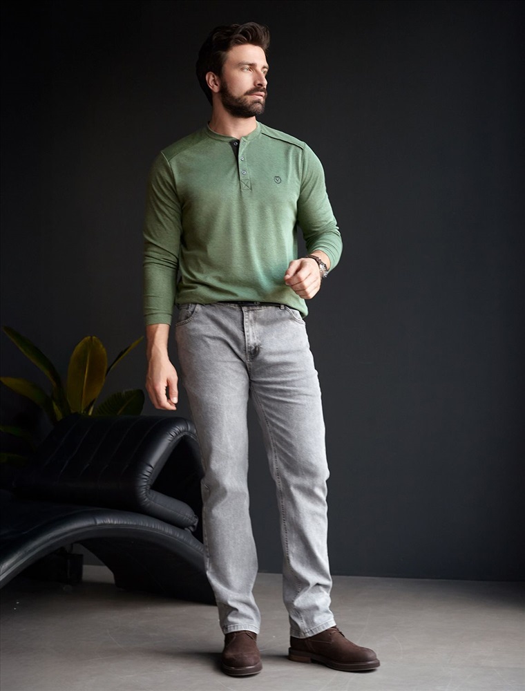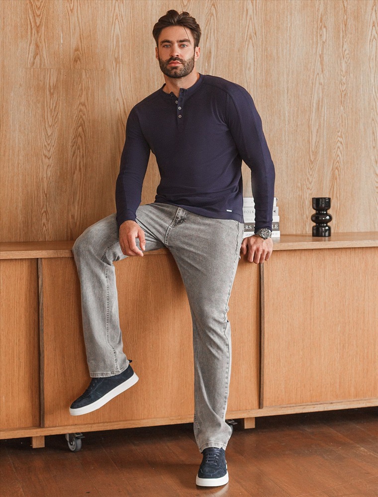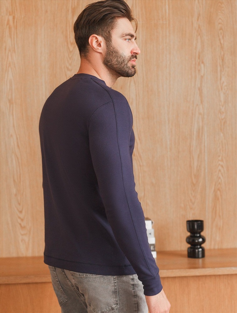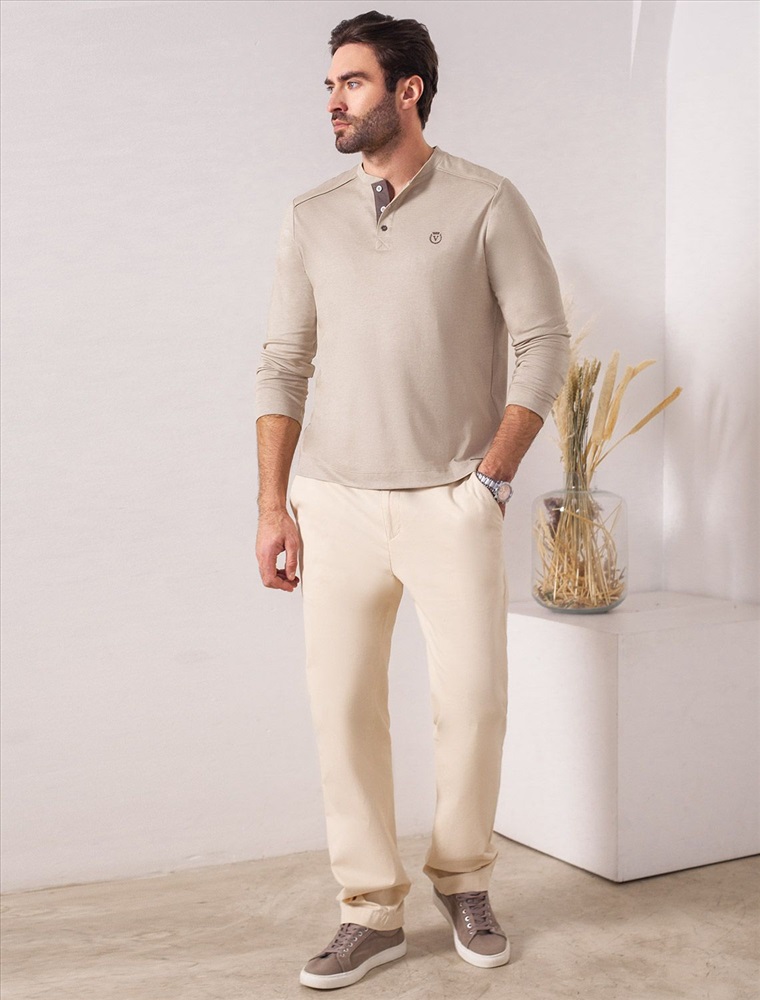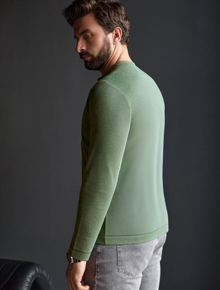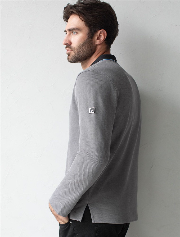 Джемпер хенли из полотна пике с меланжевым плетением с эластаном