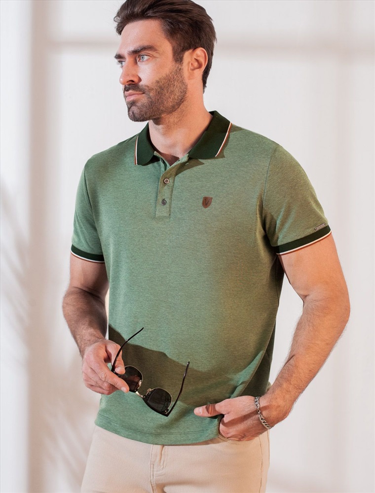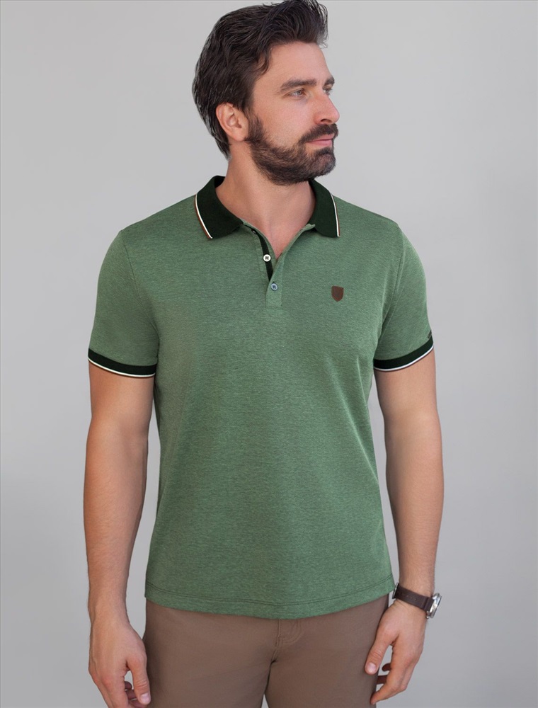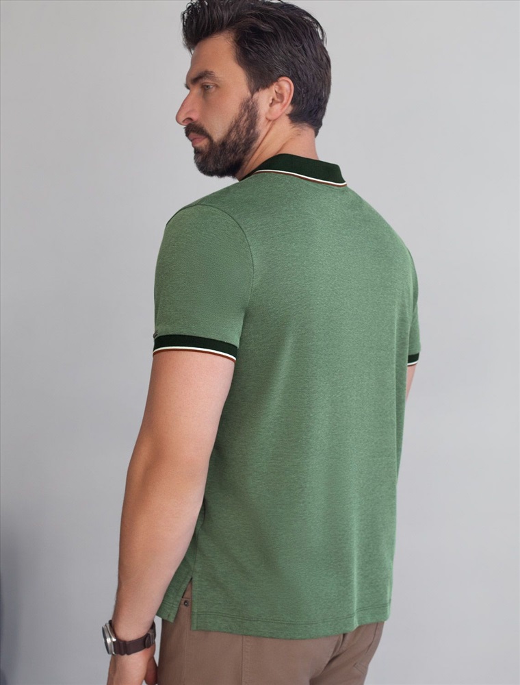 Футболка поло с воротником на пуговицах из полотна пике с меланжевым плетением с эластаном