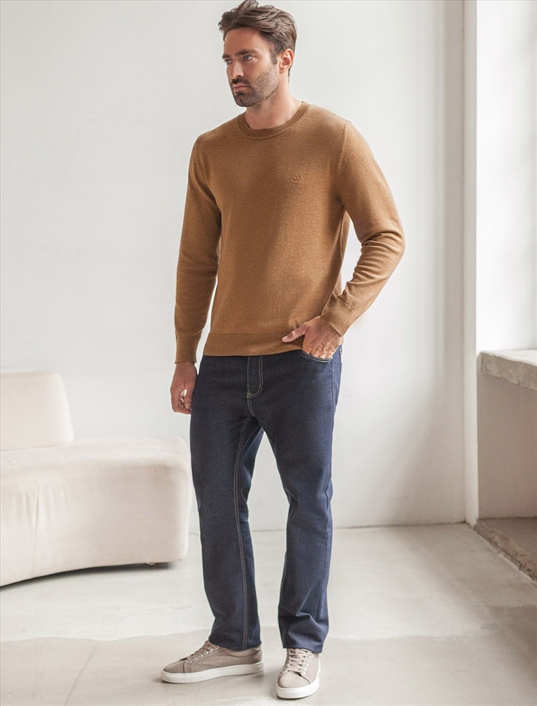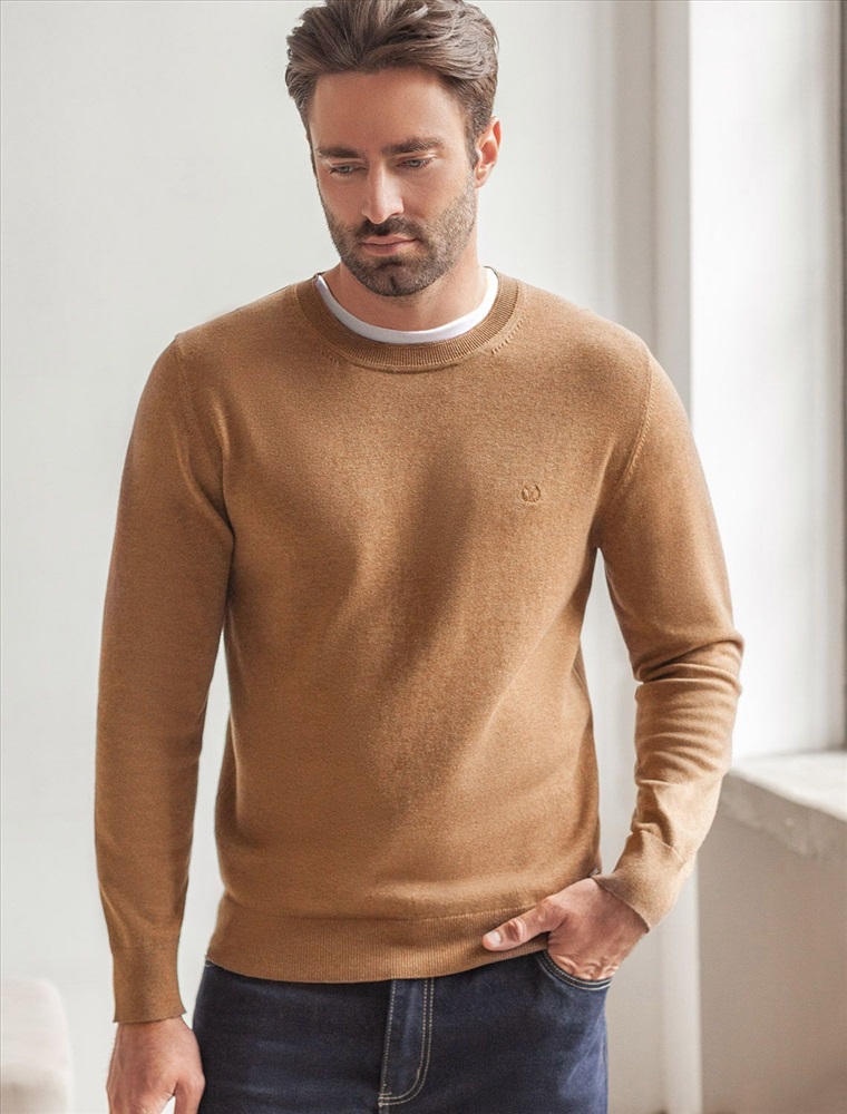 Джемпер базовый из мягкого фактурного трикотажа с круглым воротом 7 фото