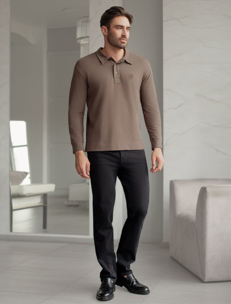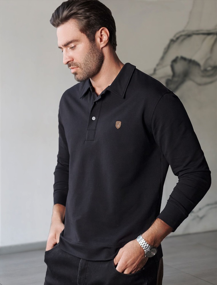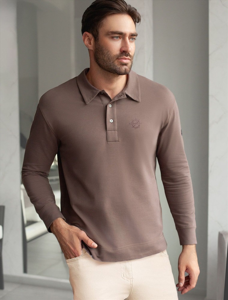 Лонгслив с воротником поло на пуговицах из премиального хлопка с эластаном 5 фото