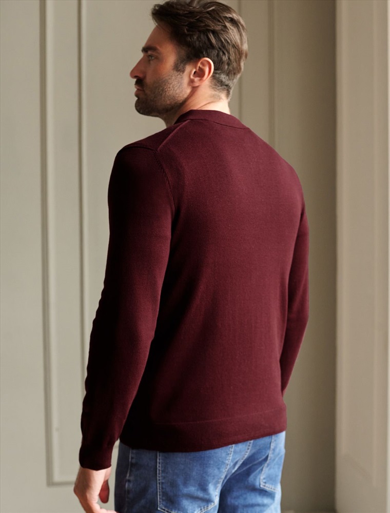Лонгслив из мягкого фактурного трикотажа с плетеным воротником поло на пуговицах 7 фото