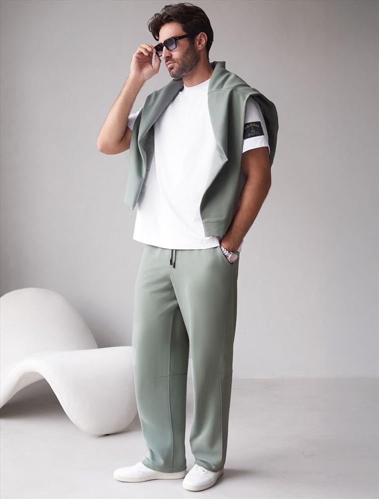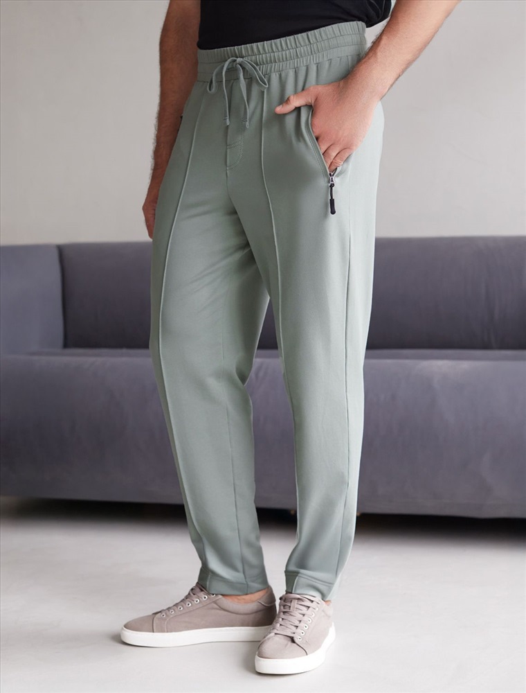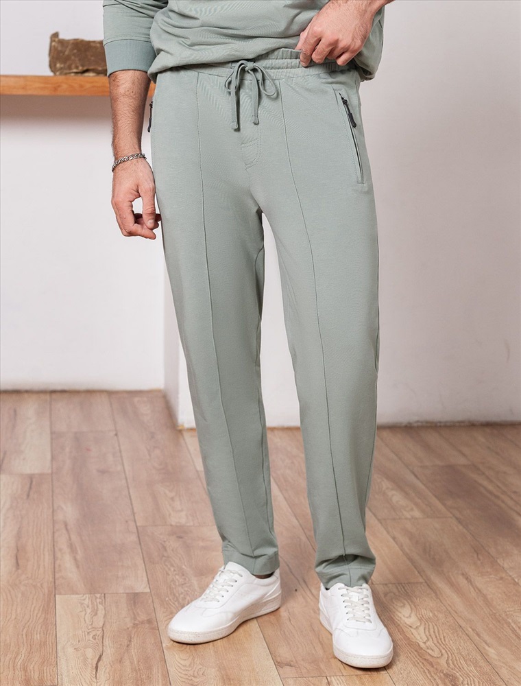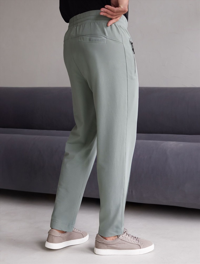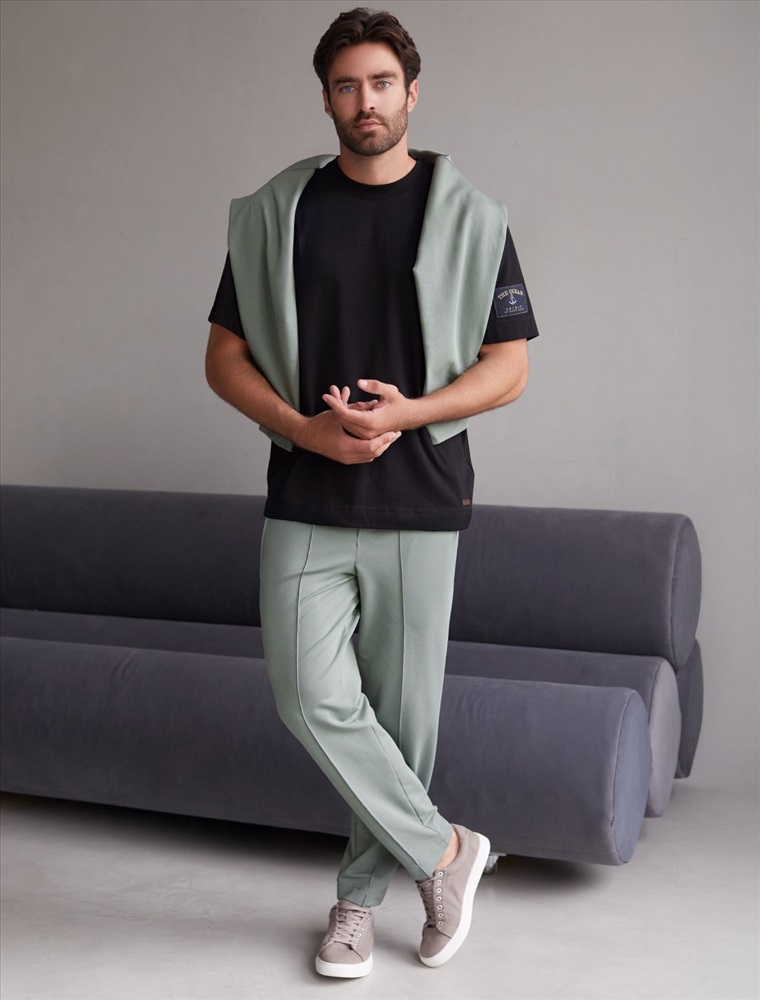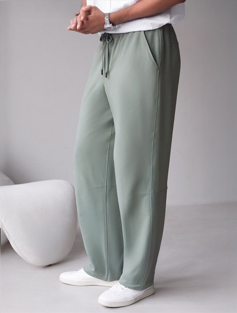 Брюки прямые на резинке из футера двухнитки с эластаном с затяжкой по низу 7 фото