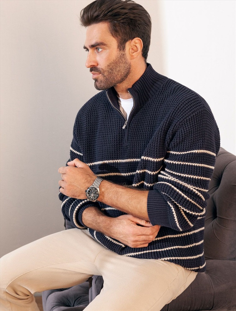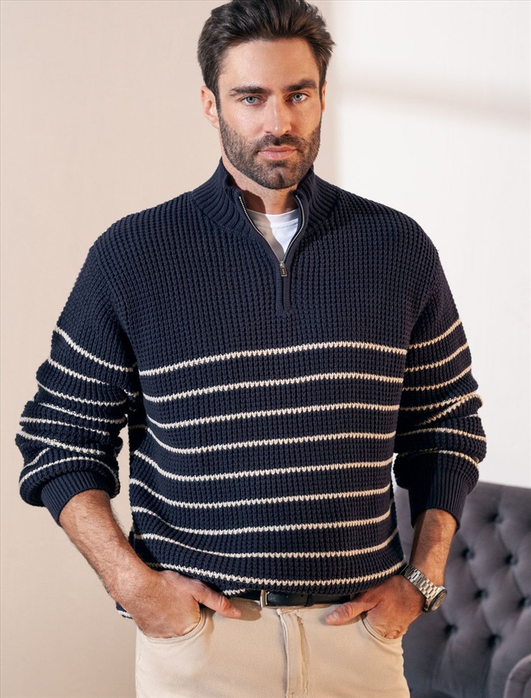 Свитер фактурной крупной вязки с металлической молнией 8 фото