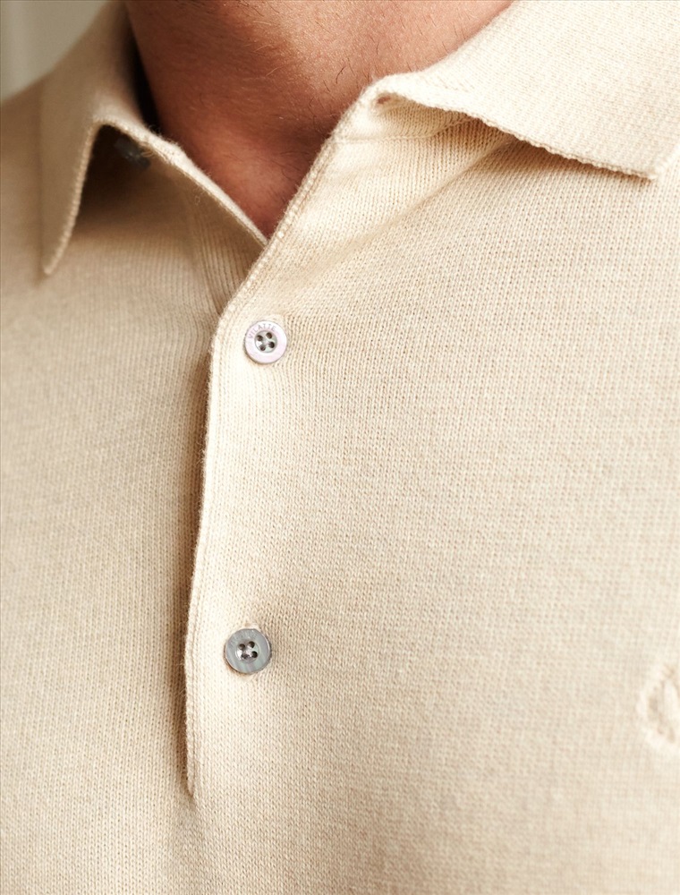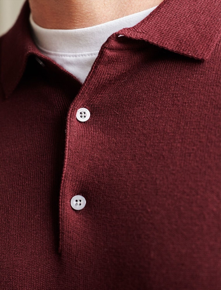 Лонгслив из мягкого фактурного трикотажа с плетеным воротником поло на пуговицах 8 фото