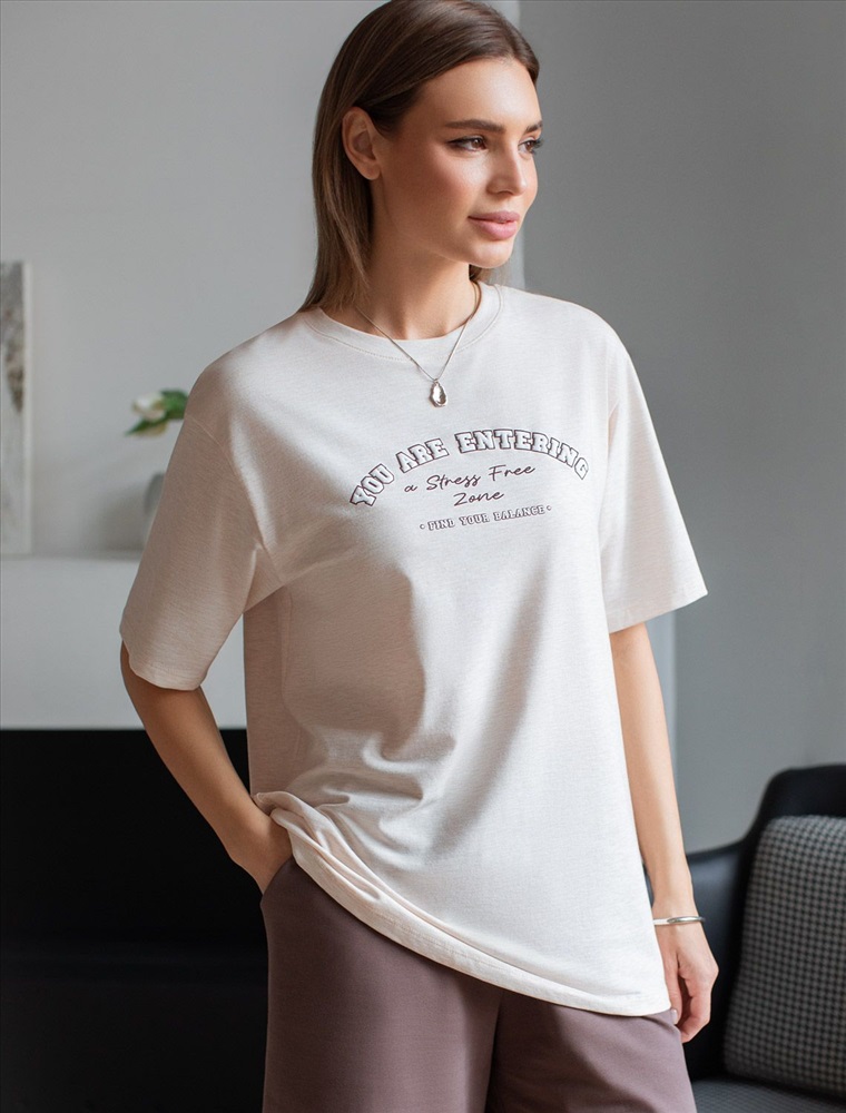 Футболка с принтом свободная эластичная из премиального хлопка 7 фото