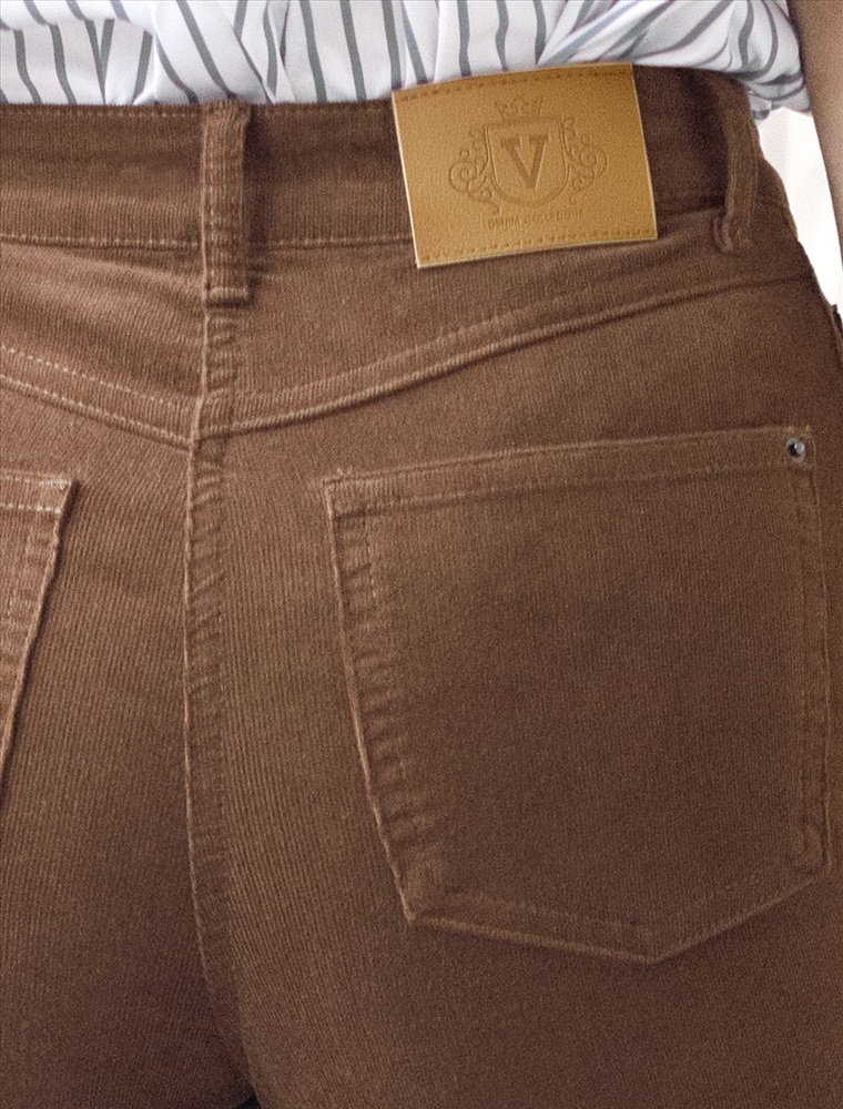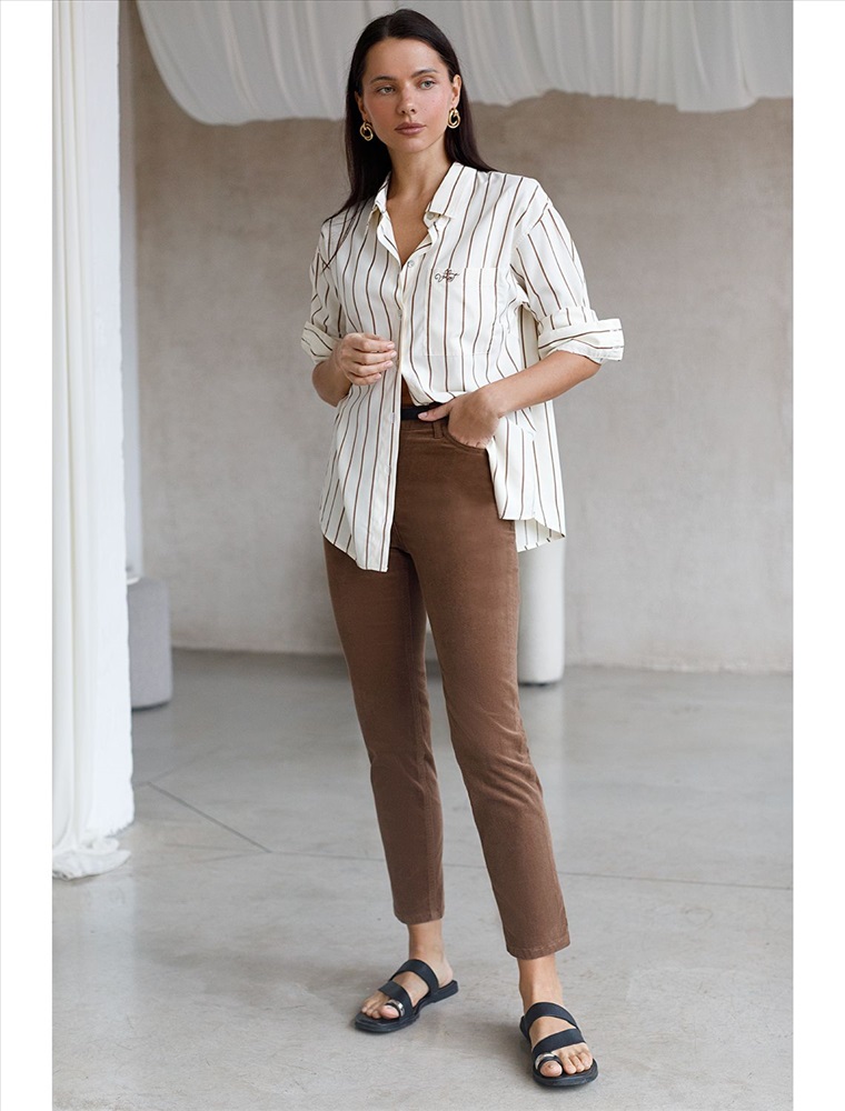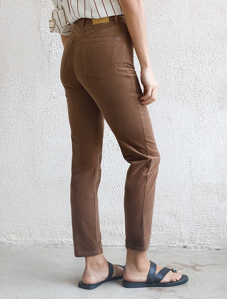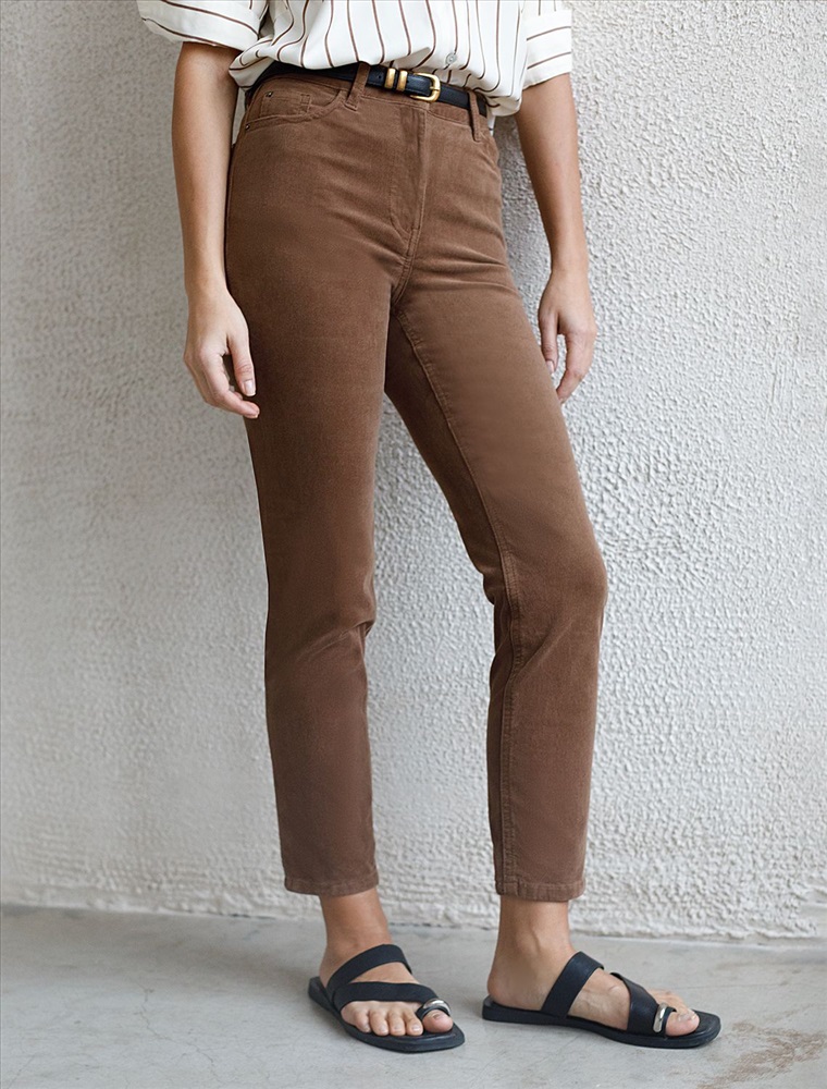Укороченные эластичные брюки слим из микро вельвета 7 фото