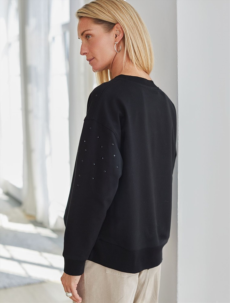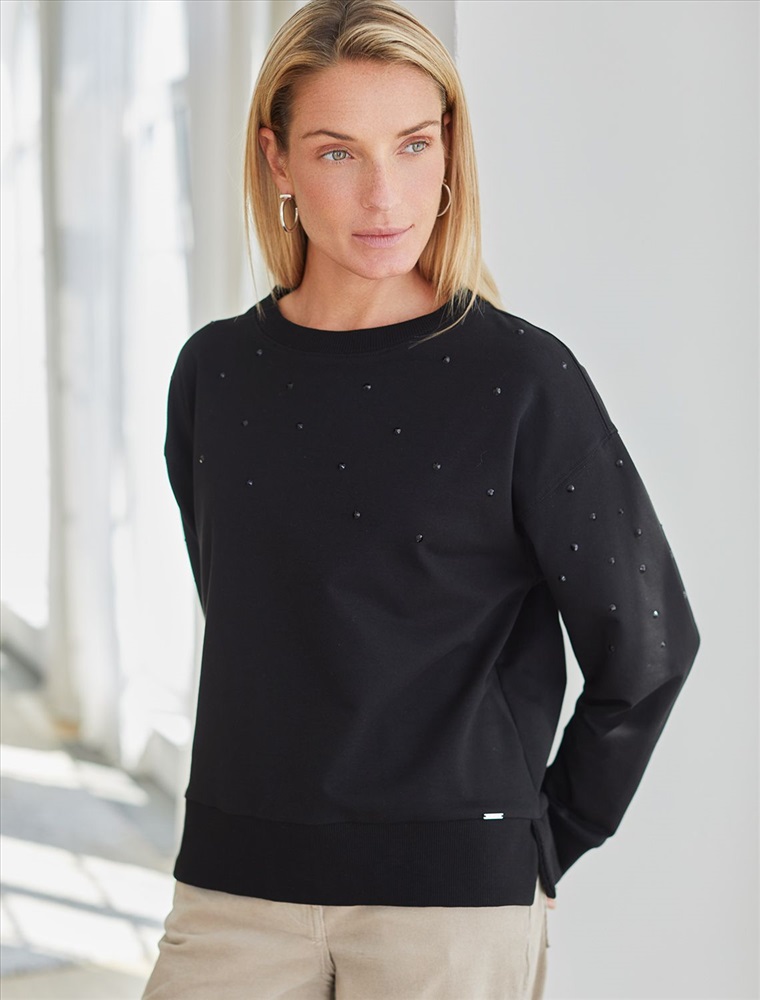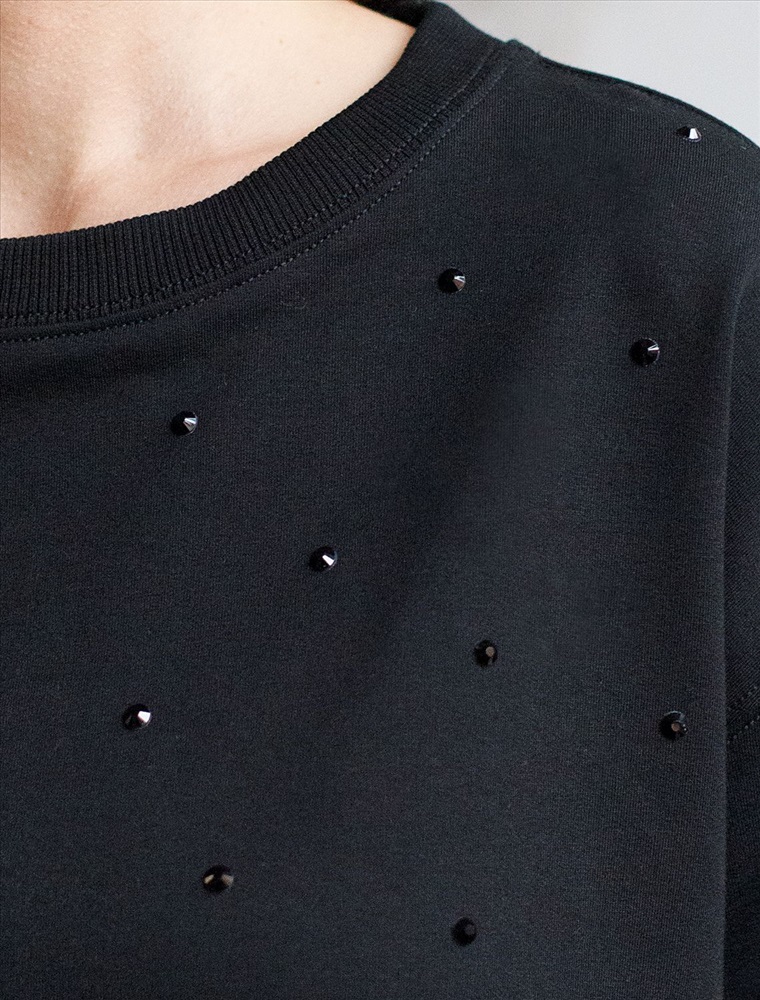 Свитшот из эластичного футера с принтом стразами 7 фото