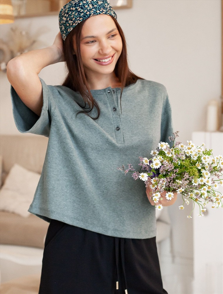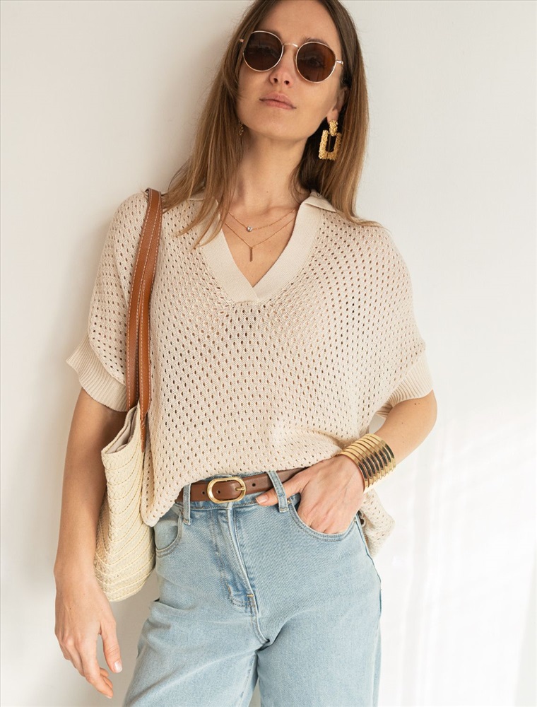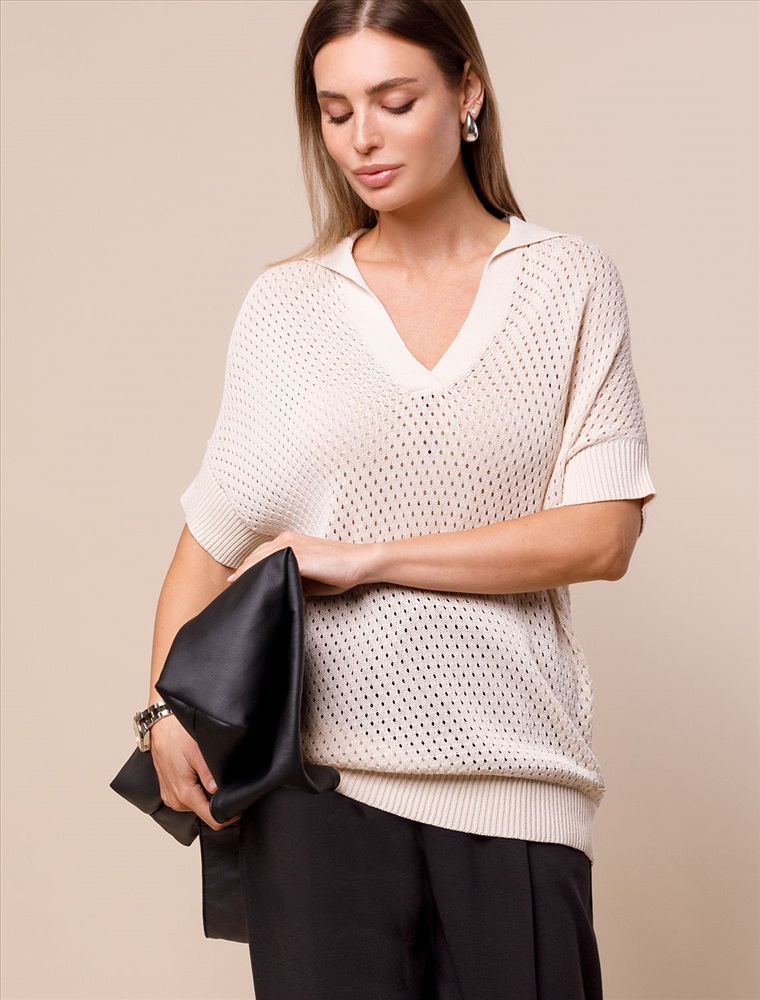 Джемпер-поло из гладкой вискозы с лиоцеллом 8 фото