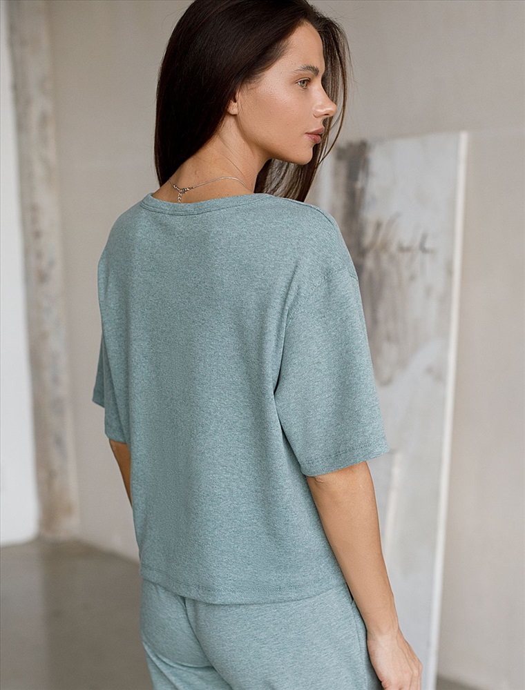 Футболка из фактурного трикотажа в рубчик 6 фото