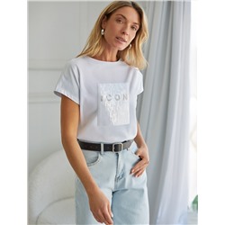 Футболка оверсайз с принтом пайетками из премиального хлопка с эластаном