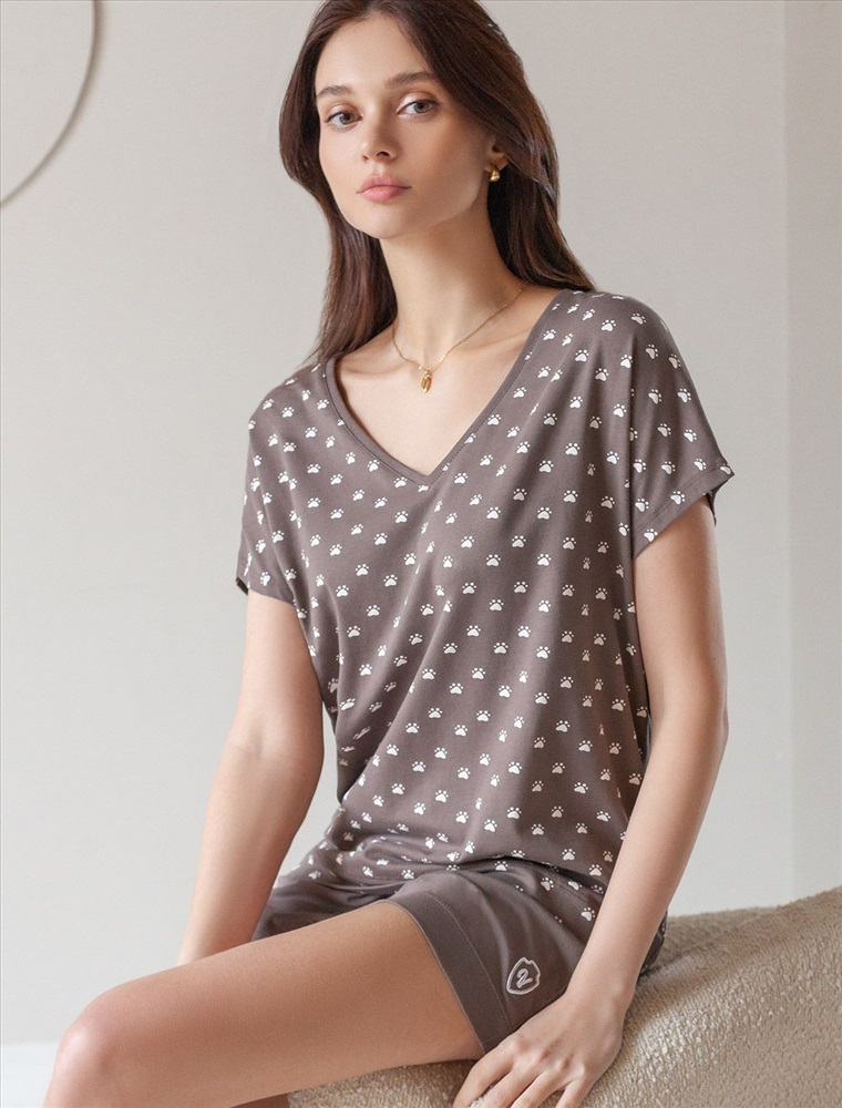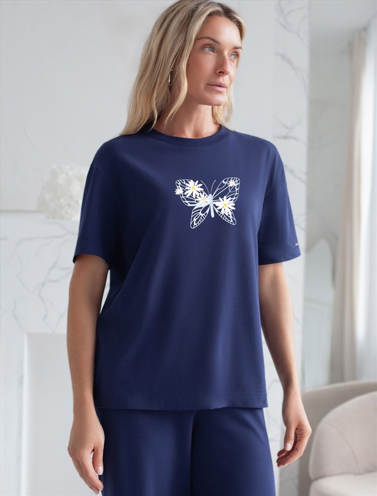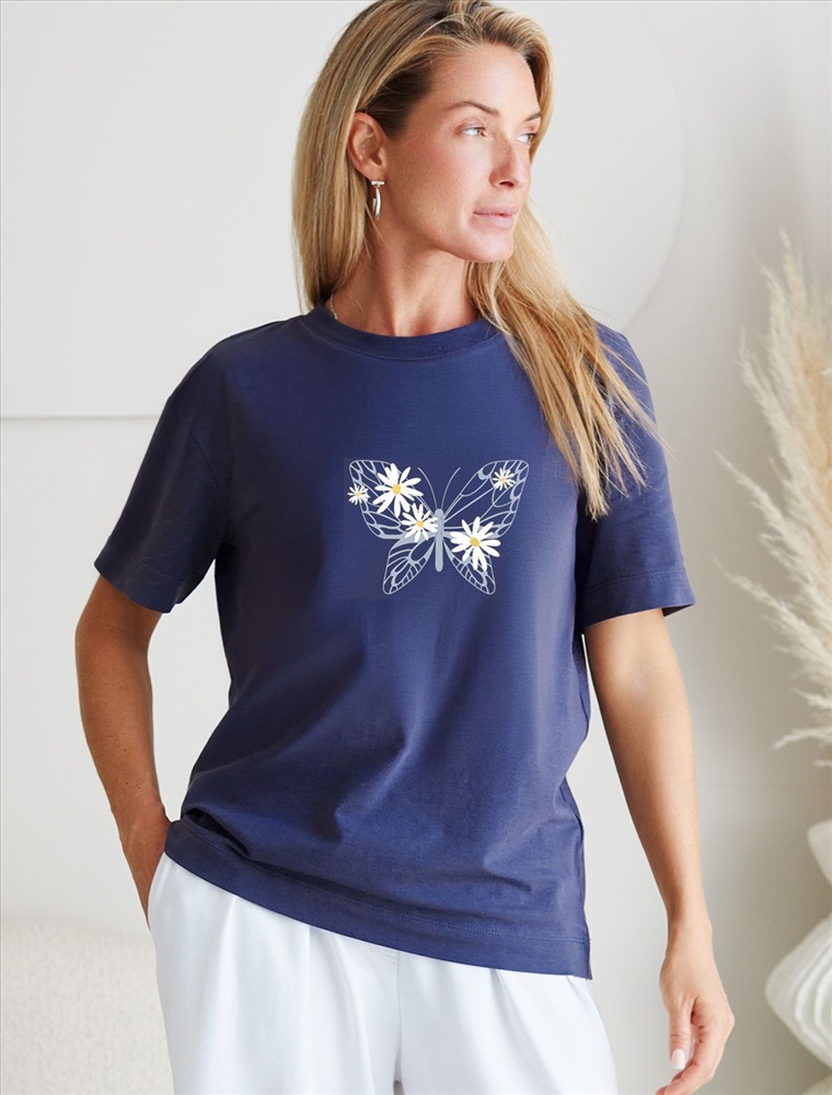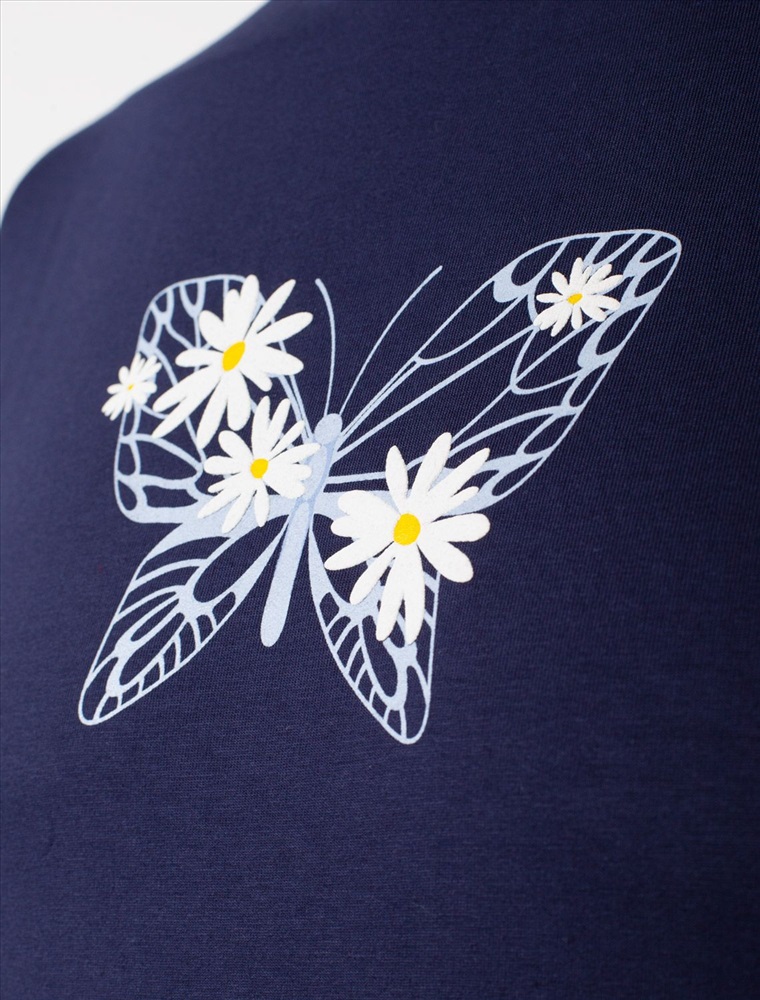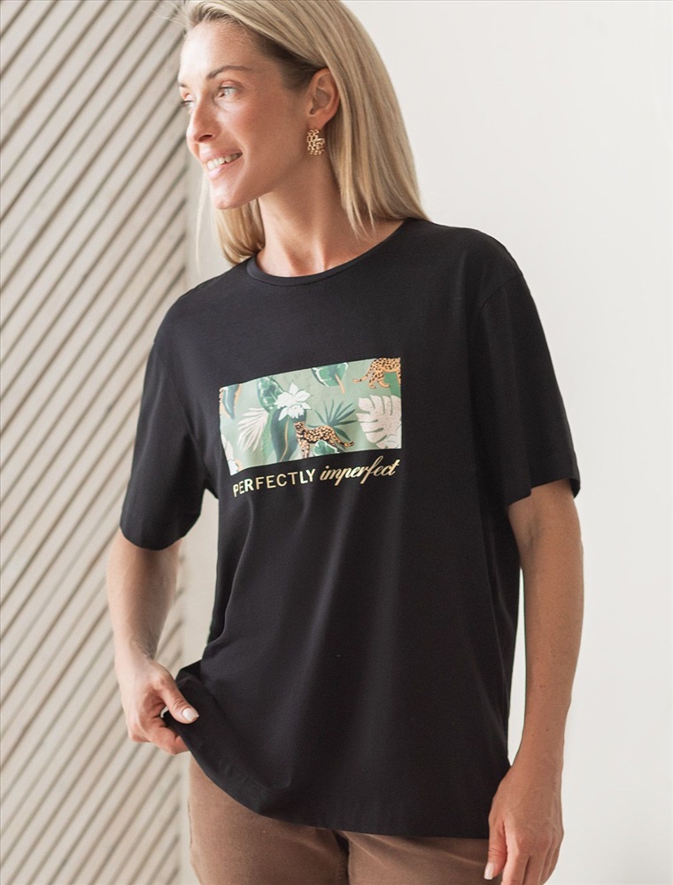 Свободная футболка с V-вырезом и цельнокроеным рукавом из 100% хлопка с принтом 9 фото