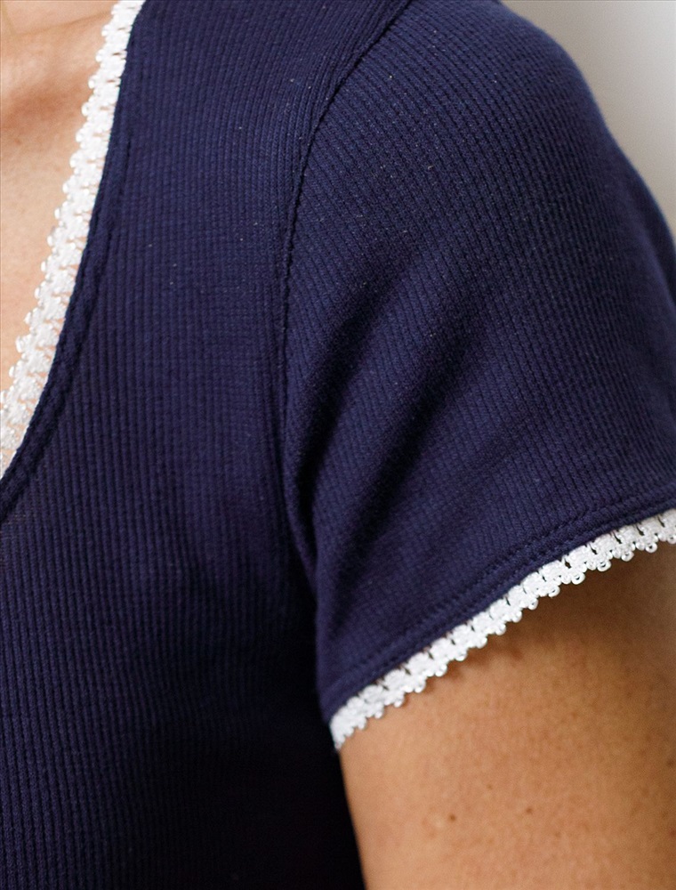 Футболка с фигурным вырезом каре из эластичного трикотажа кашкорсе 7 фото