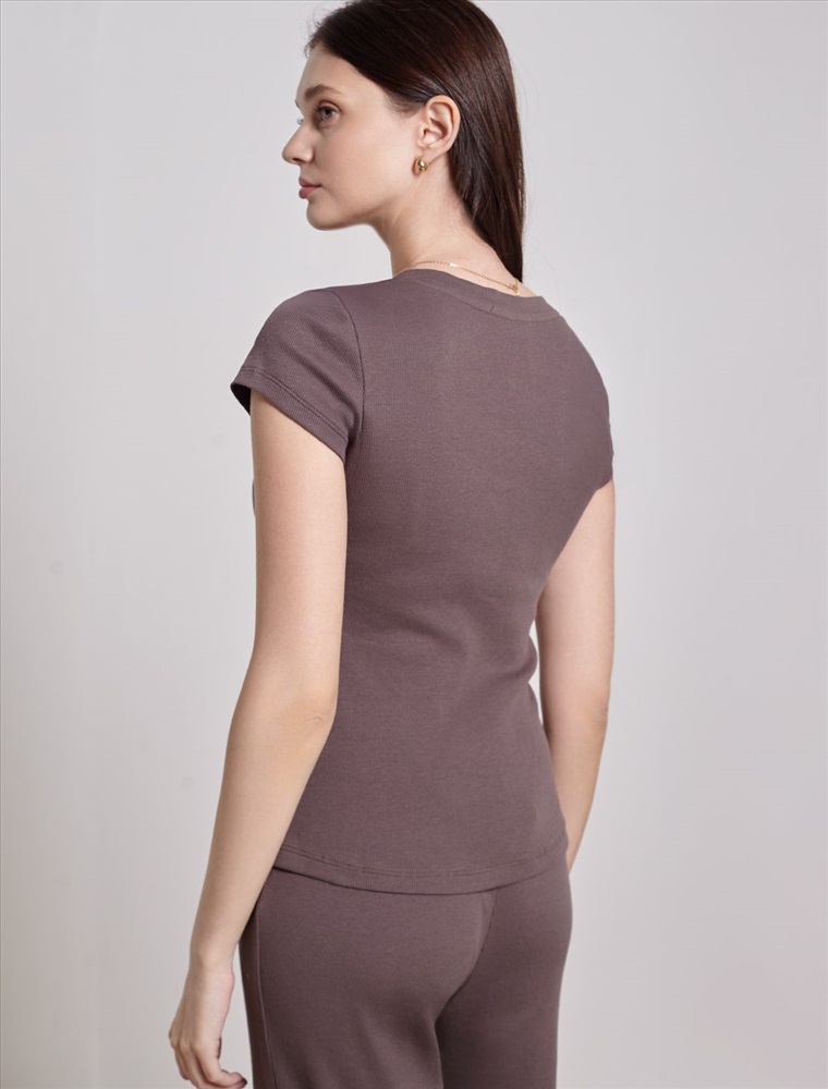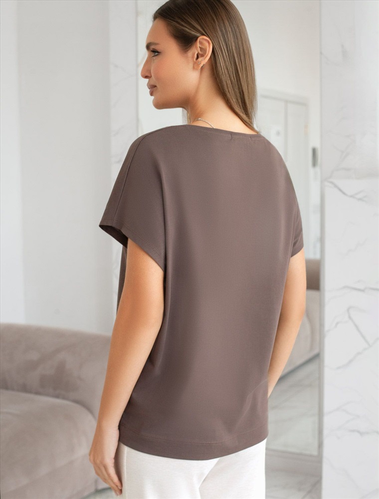 Футболка с фигурным вырезом каре из эластичного трикотажа кашкорсе 5 фото