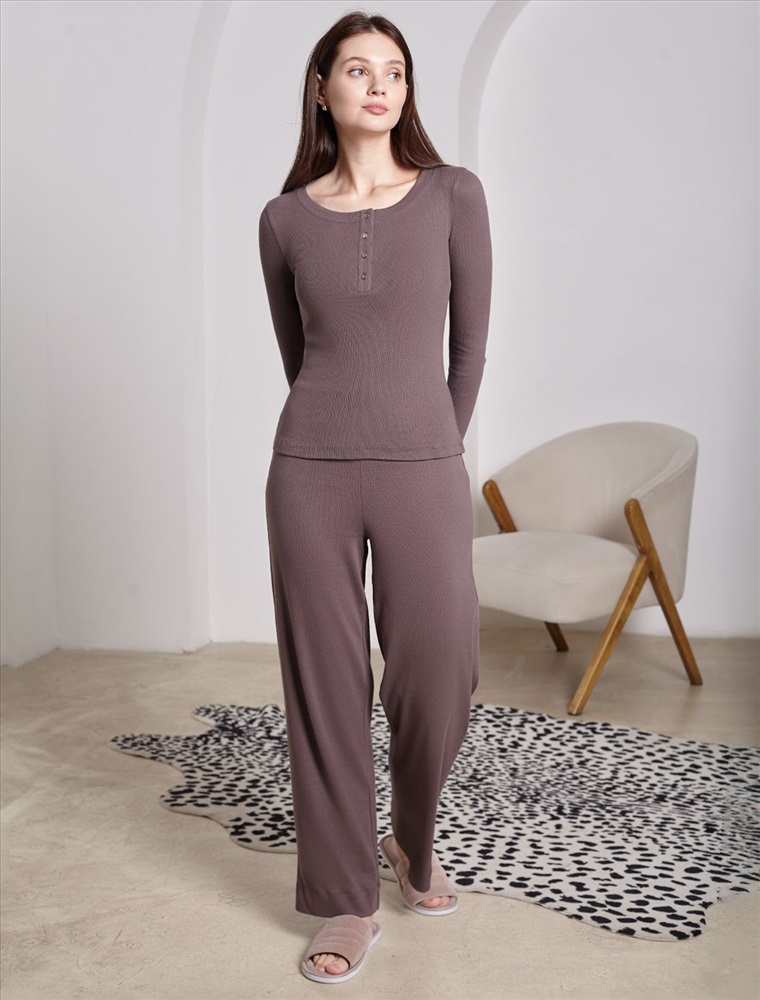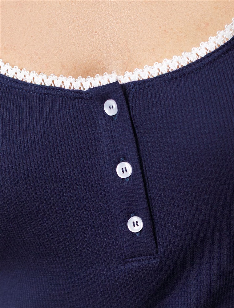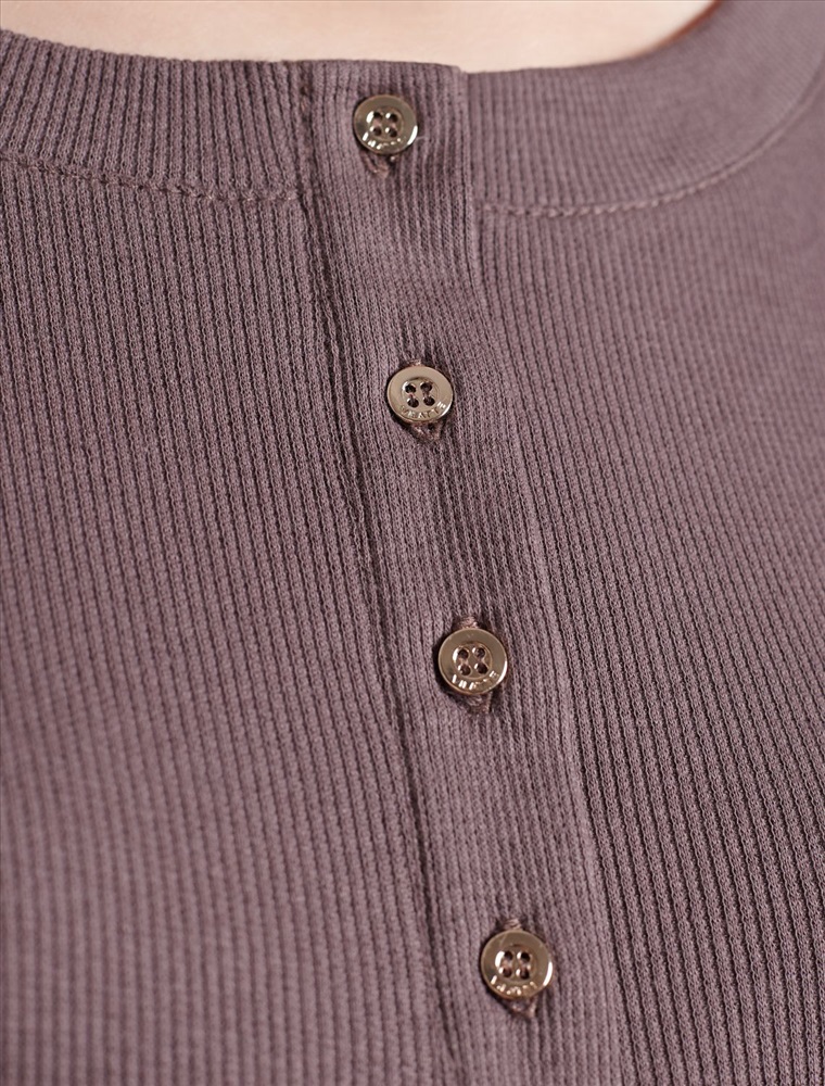 Лонгслив облегающий из фактурного трикотажа в рубчик с круглым вырезом на пуговицах 7 фото