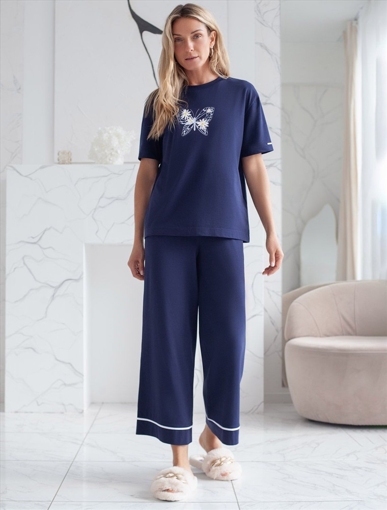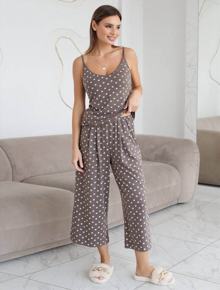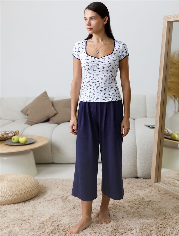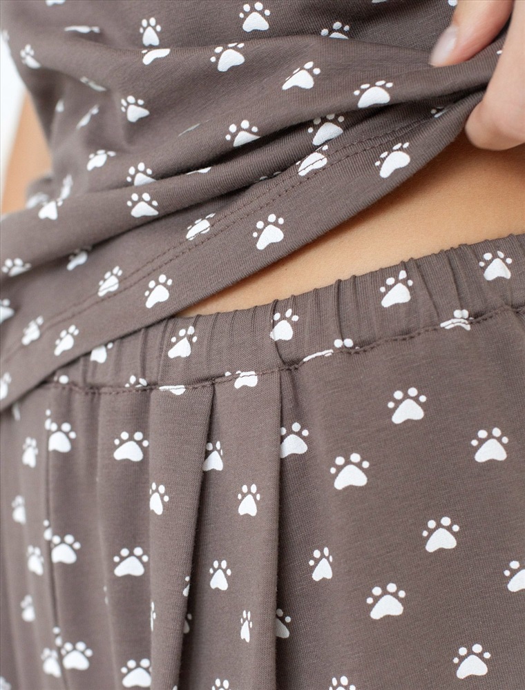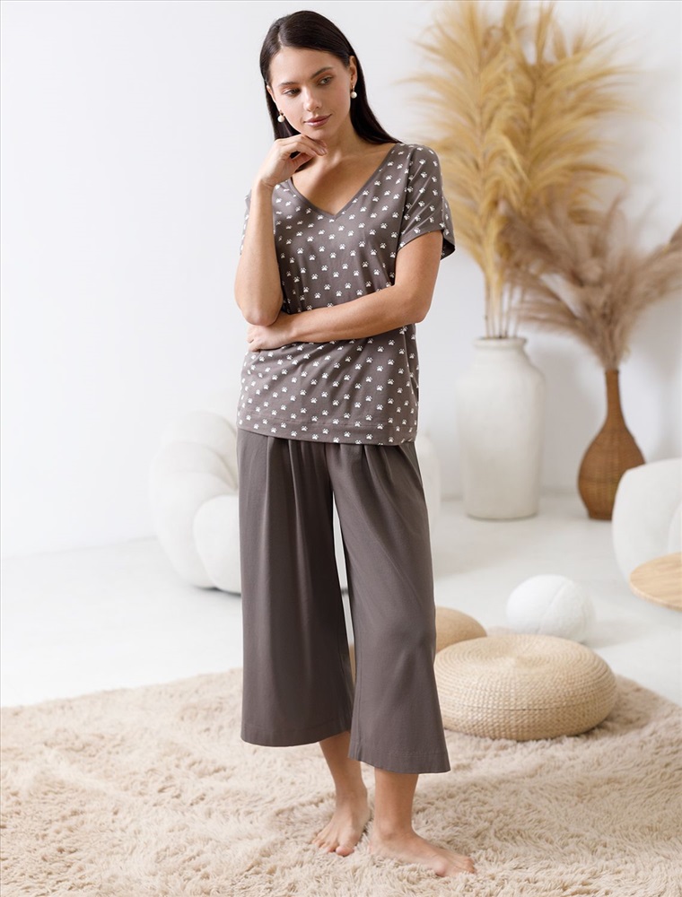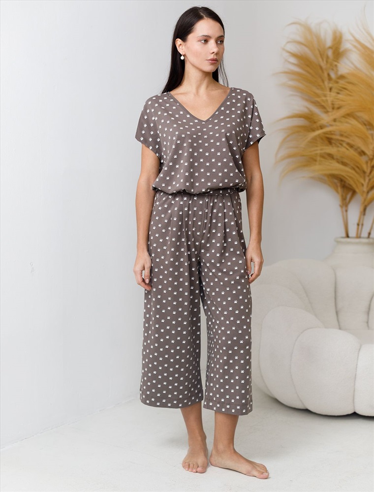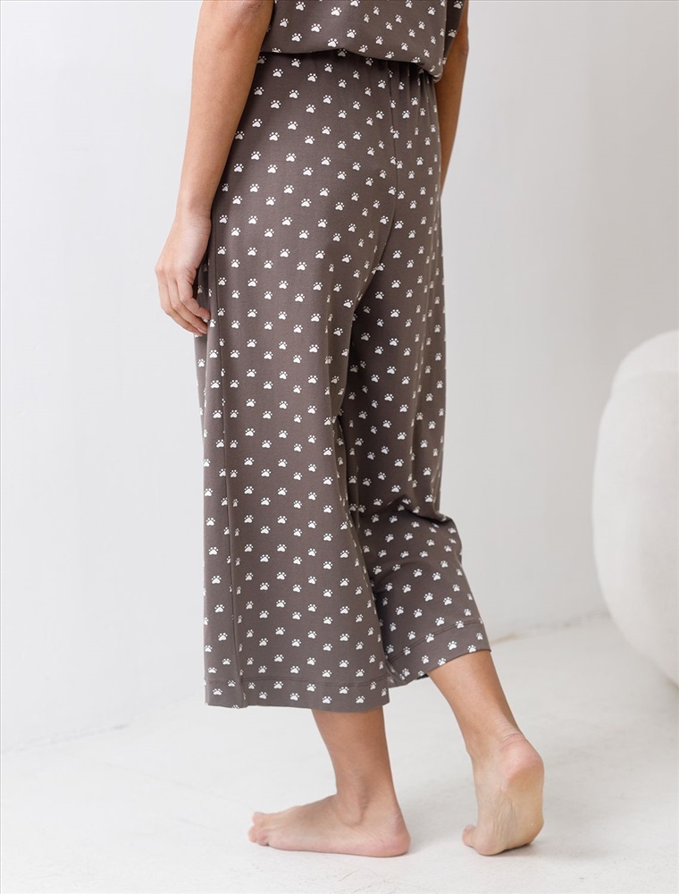 Укороченные широкие брюки кюлоты c принтом на резинке из 100% хлопка 8 фото