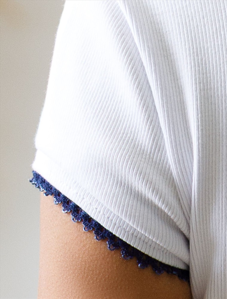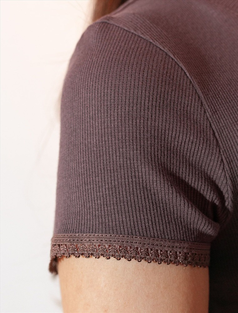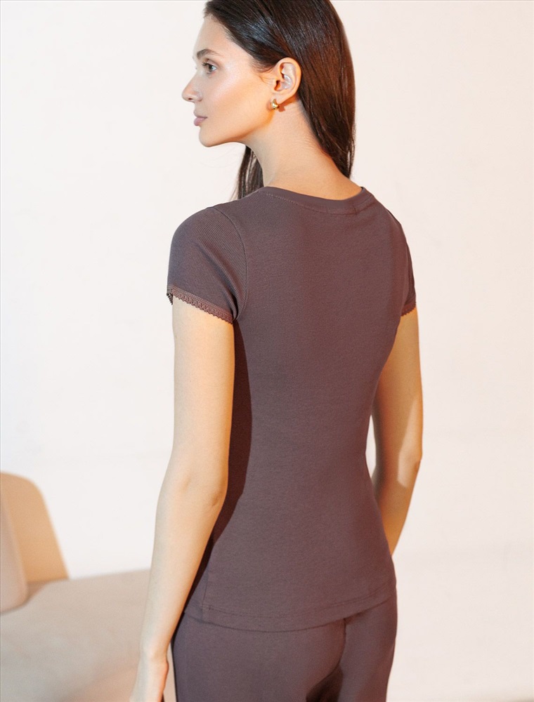 Футболка с круглым вырезом из фактурного трикотажа в рубчик 5 фото
