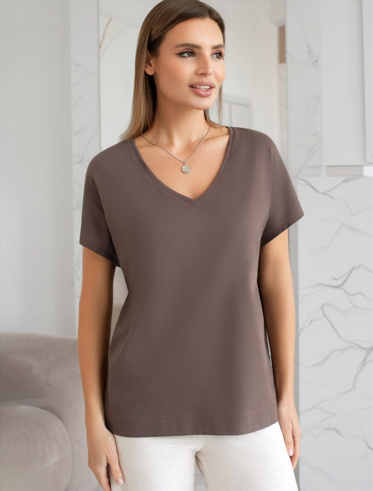 Футболка с V вырезом из эластичного трикотажа кашкорсе 6 фото