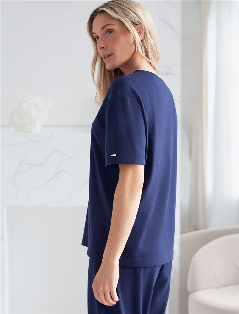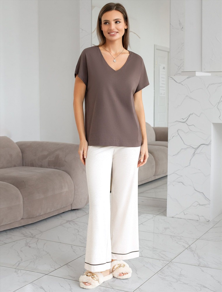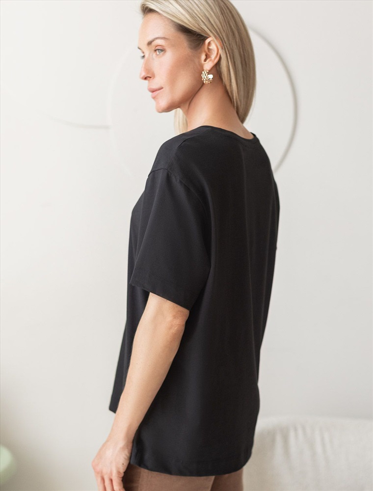 Свободная футболка с V-вырезом и цельнокроеным рукавом из 100% хлопка 7 фото