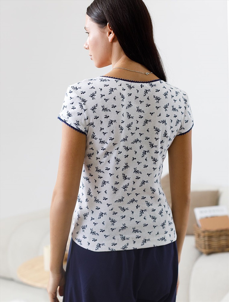 Топ на регулируемых бретелях с V вырезом из 100% хлопка с принтом 7 фото