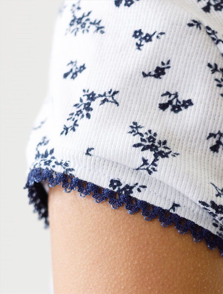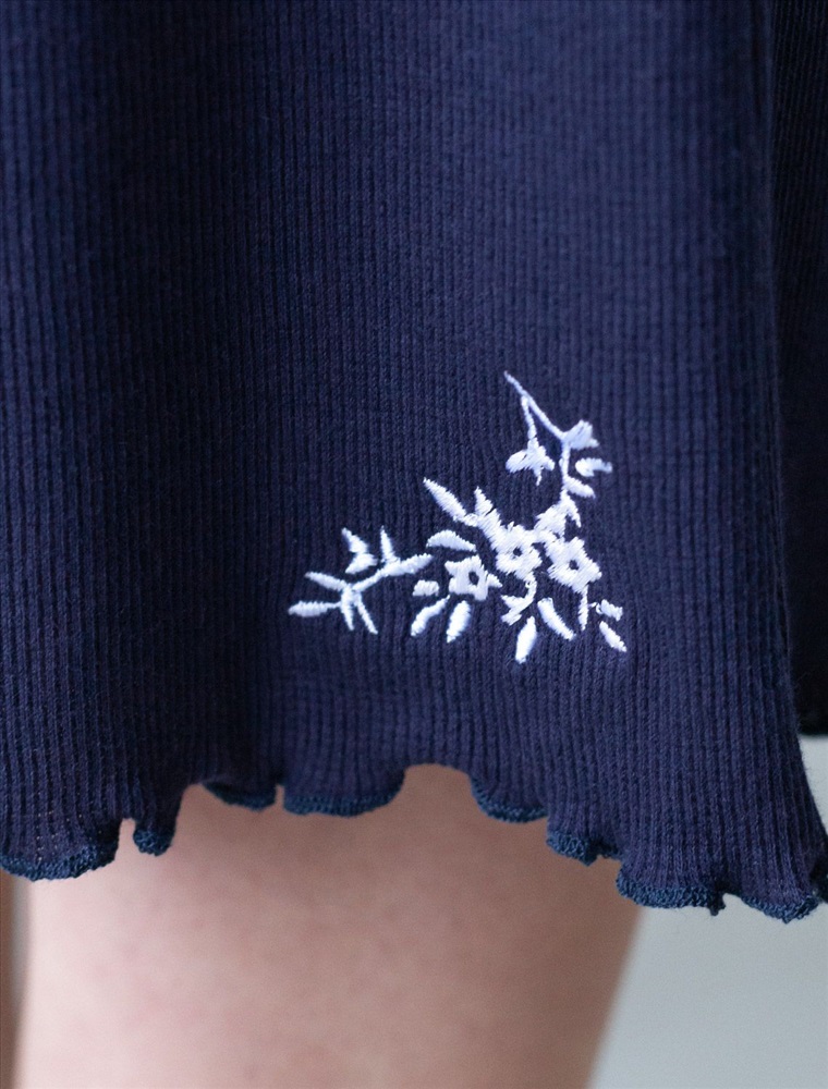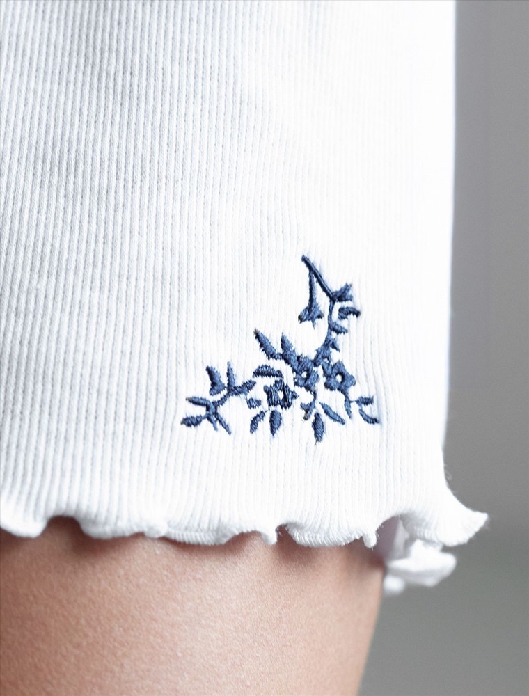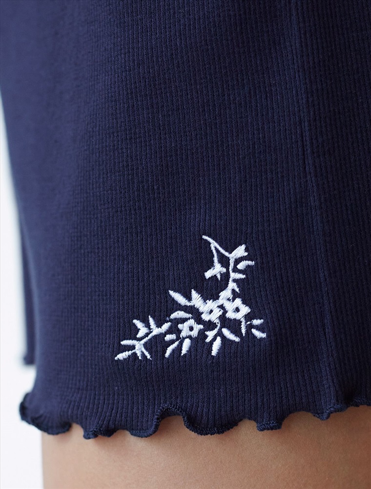 Короткие шорты на резинке с вышивкой из фактурного трикотажа в мелкий рубчик 6 фото